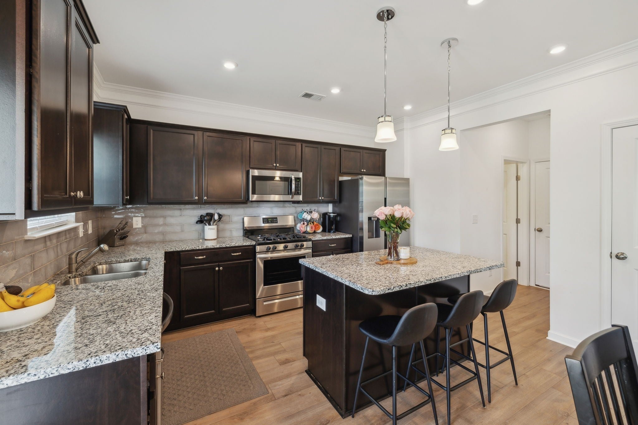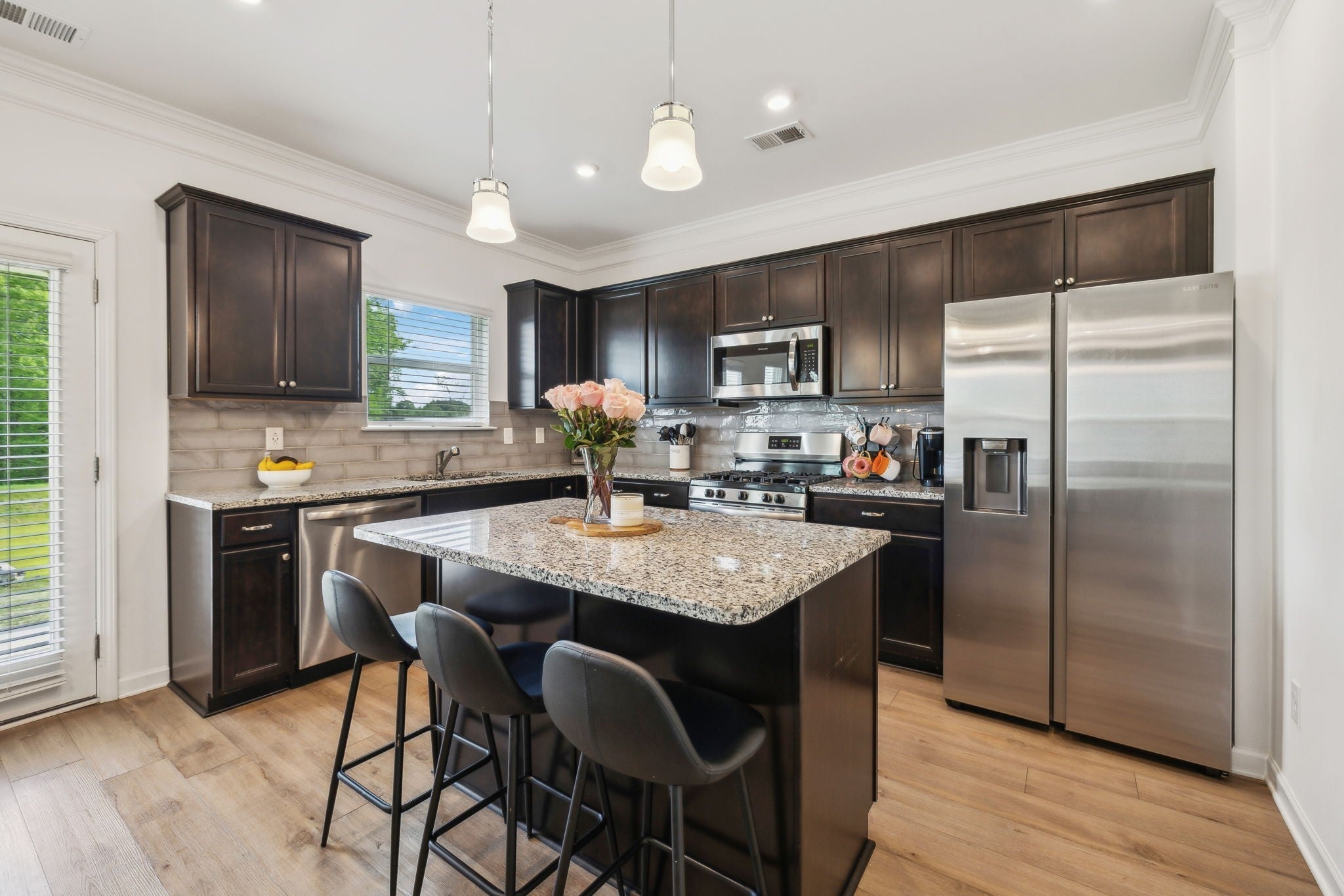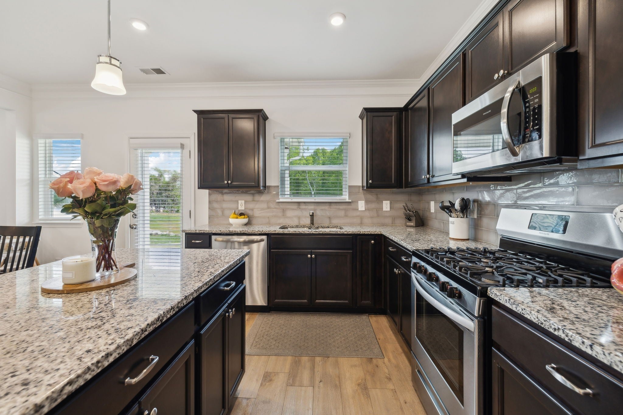 - Gas Oven, Gas Range, Dishwasher, Disposal, Microwave, Stainless Steel Appliance(s)