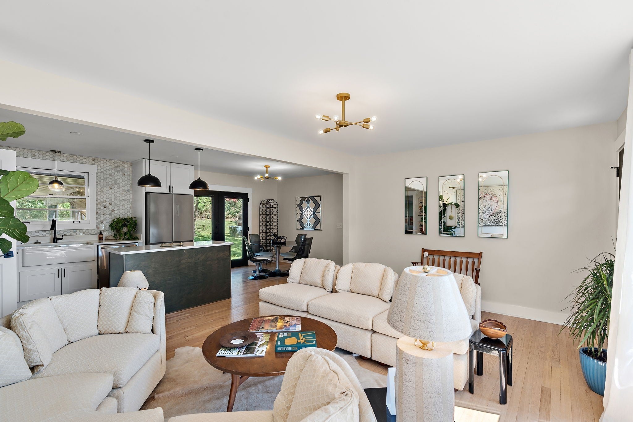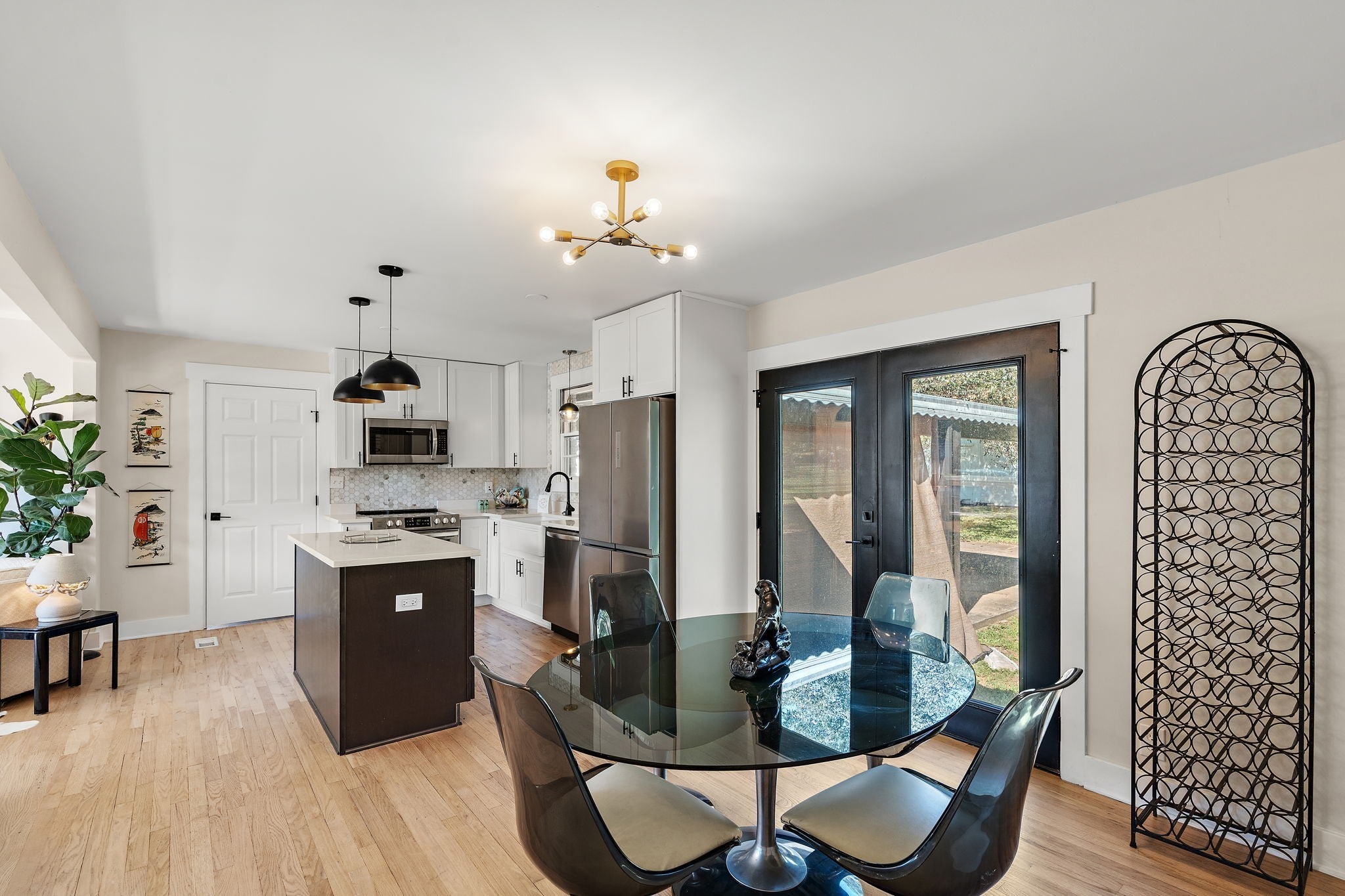 Beautifully Renovated East Nashville Ranch on Nearly Half an Acre! Located just steps from Cornelia Fort Airpark and Shelby Bottoms, this fully updated home blends charm, space, and Eastside style. The open-concept living and kitchen area features stunning quartz countertops, newer appliances, and refinished original white oak hardwoods. Three bedrooms include a spacious primary ensuite, plus a versatile bonus room that can serve as a fourth bedroom, office, or studio. French doors off the dining room open to a massive carport and a lush backyard oasis with two connected workshops/sheds and a tranquil bamboo forest offering privacy and shade. A truly one-of-a-kind retreat—minutes from downtown and everything East Nashville has to offer!
