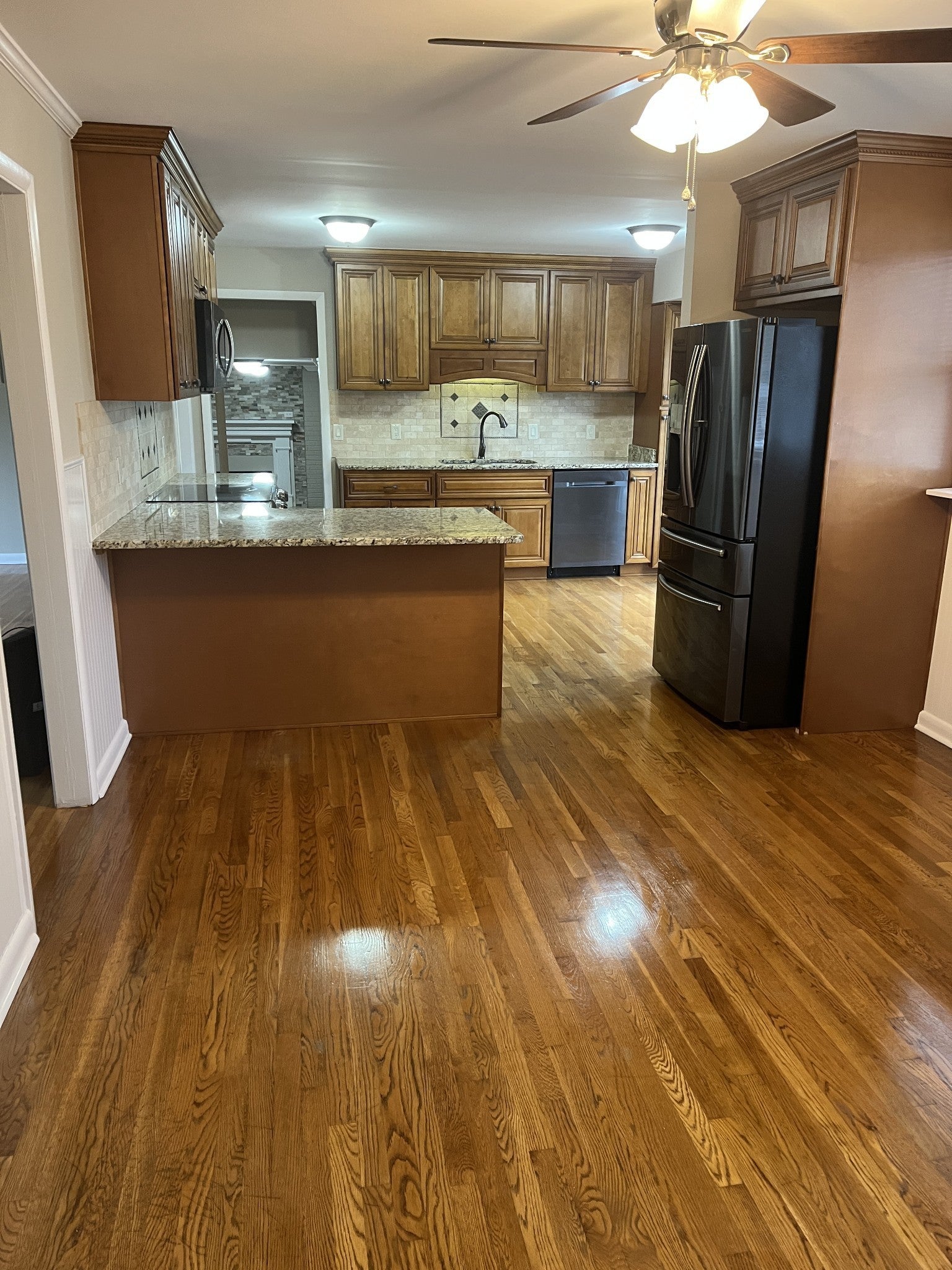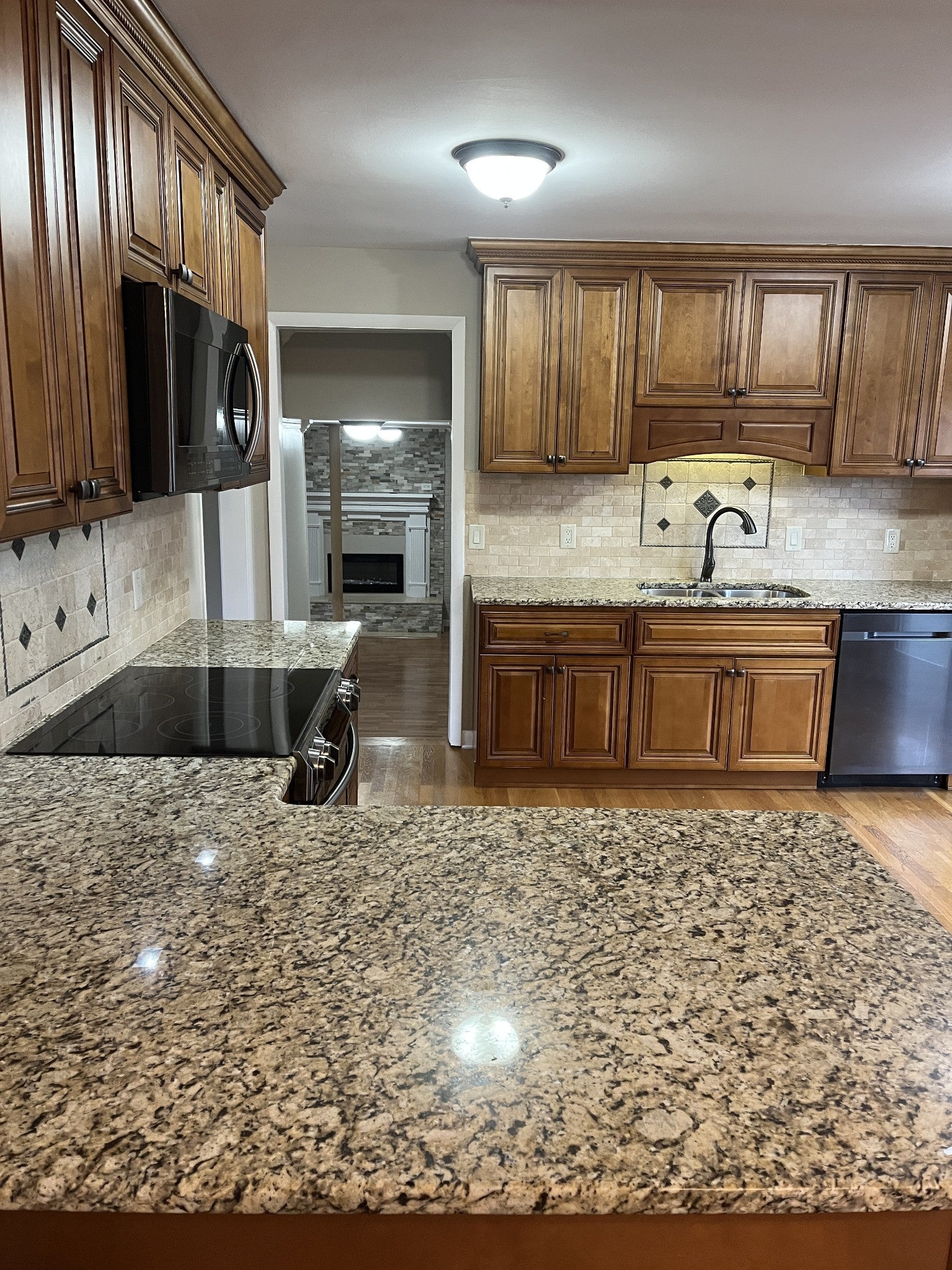 - Built-In Electric Range, Dishwasher, Microwave, Refrigerator, Stainless Steel Appliance(s)