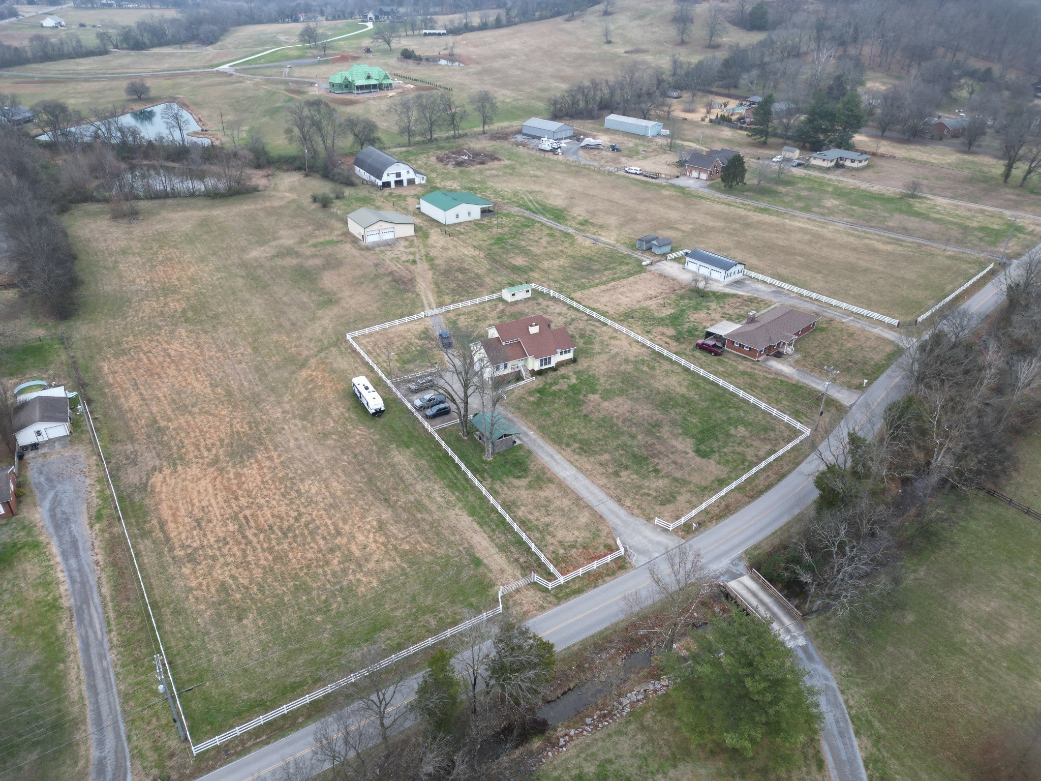 Gorgeous Horse Farm Estate on 6.2 Acres! Beautifully maintained horse farm offering 2,514 sq ft situated on 6.2 scenic acres with a big pond. Property is an equestrian's dream featuring a 40x20 two-stall barn with hay room and tack room, plus an attached 40x30 shop ideal for workshop space, equipment storage, events, or hobby use. Barn includes a water spigot. Large riding arena also on site along with a 10x20 storage building and gazebo. Home offers 3 bedrooms and 2.5 baths with beautiful hardwood flooring and custom wood trim throughout. Brand new HVAC with warranty. Huge country kitchen with pantry and closet has large breakfast area and a separate formal dining room. Kitchen appliances remain. Main-level primary suite includes walk-in closet plus two additional closets and an oversized tiled shower. Upstairs features an oversized bedroom with built-in desk, bookcases, walk-in closet, and additional closet space. Abundant walk-in attic storage available. Great room showcases soaring ceilings with exposed wood beams, wood-burning fireplace, and hardwood flooring. Oversized garage accommodates 4+ vehicles with additional storage space. 25x12 Florida room (not included in square footage) providing additional space to relax and enjoy the peaceful farm setting. Ideal property for horse enthusiasts or those seeking private country living with multi-use outbuildings and event potential all within minutes of the city of Hendersonville.