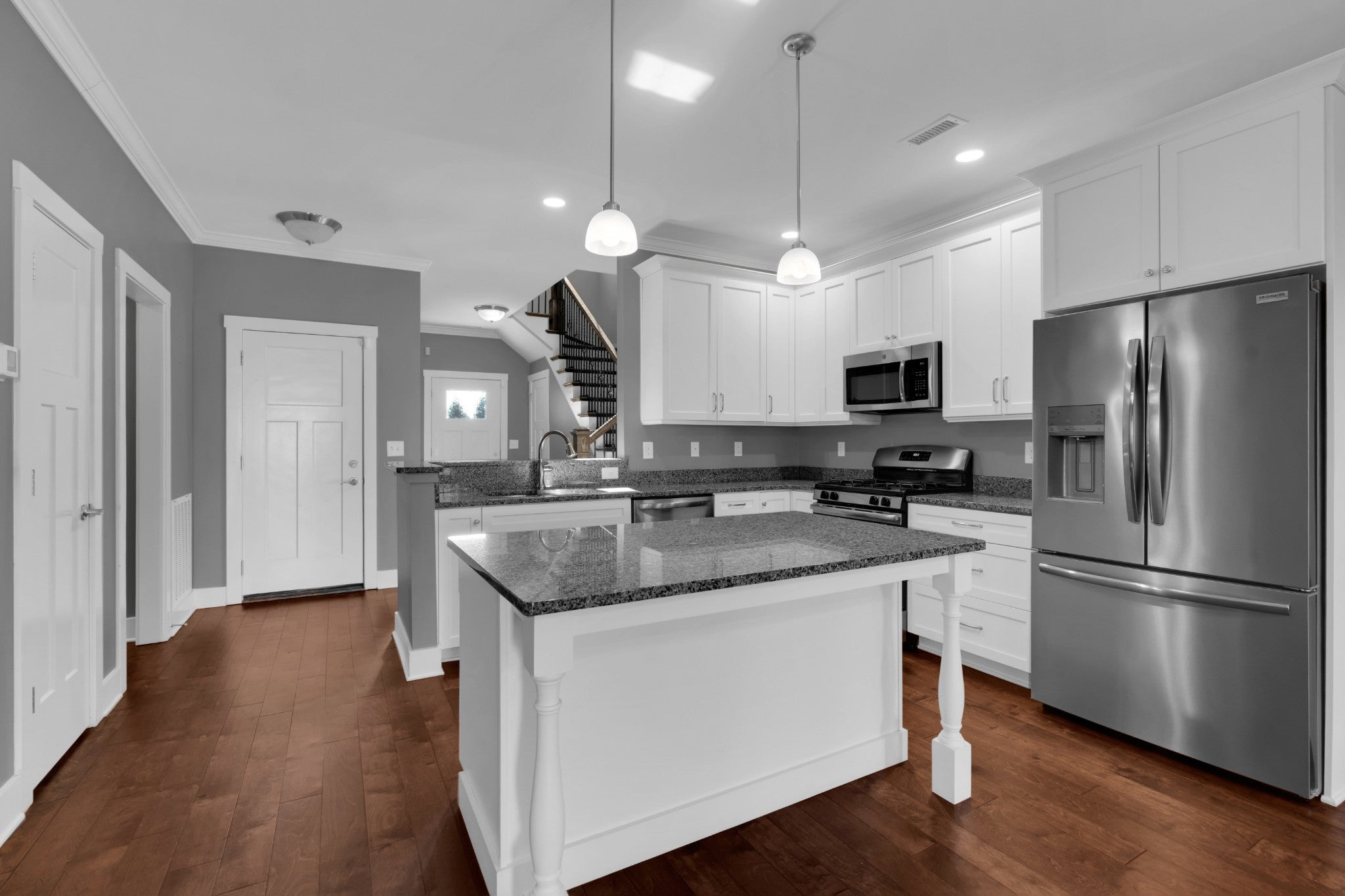 - Gas Oven, Gas Range, Dishwasher, Disposal, Dryer, Microwave, Refrigerator, Stainless Steel Appliance(s), Washer