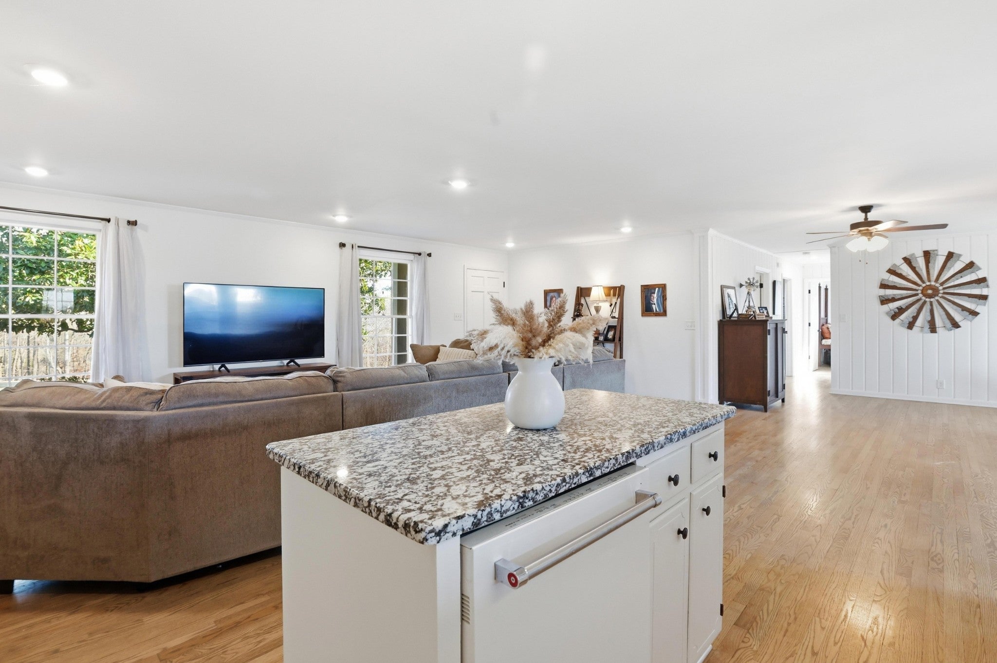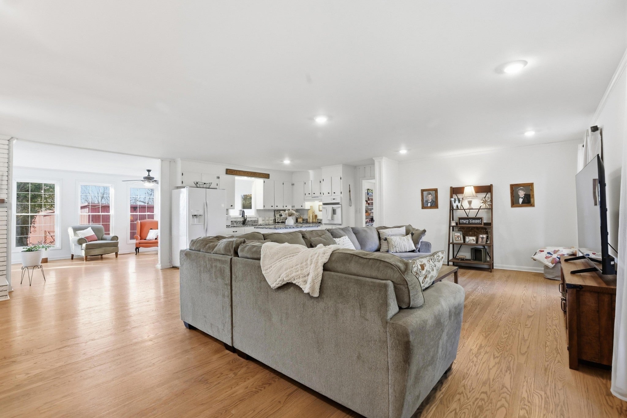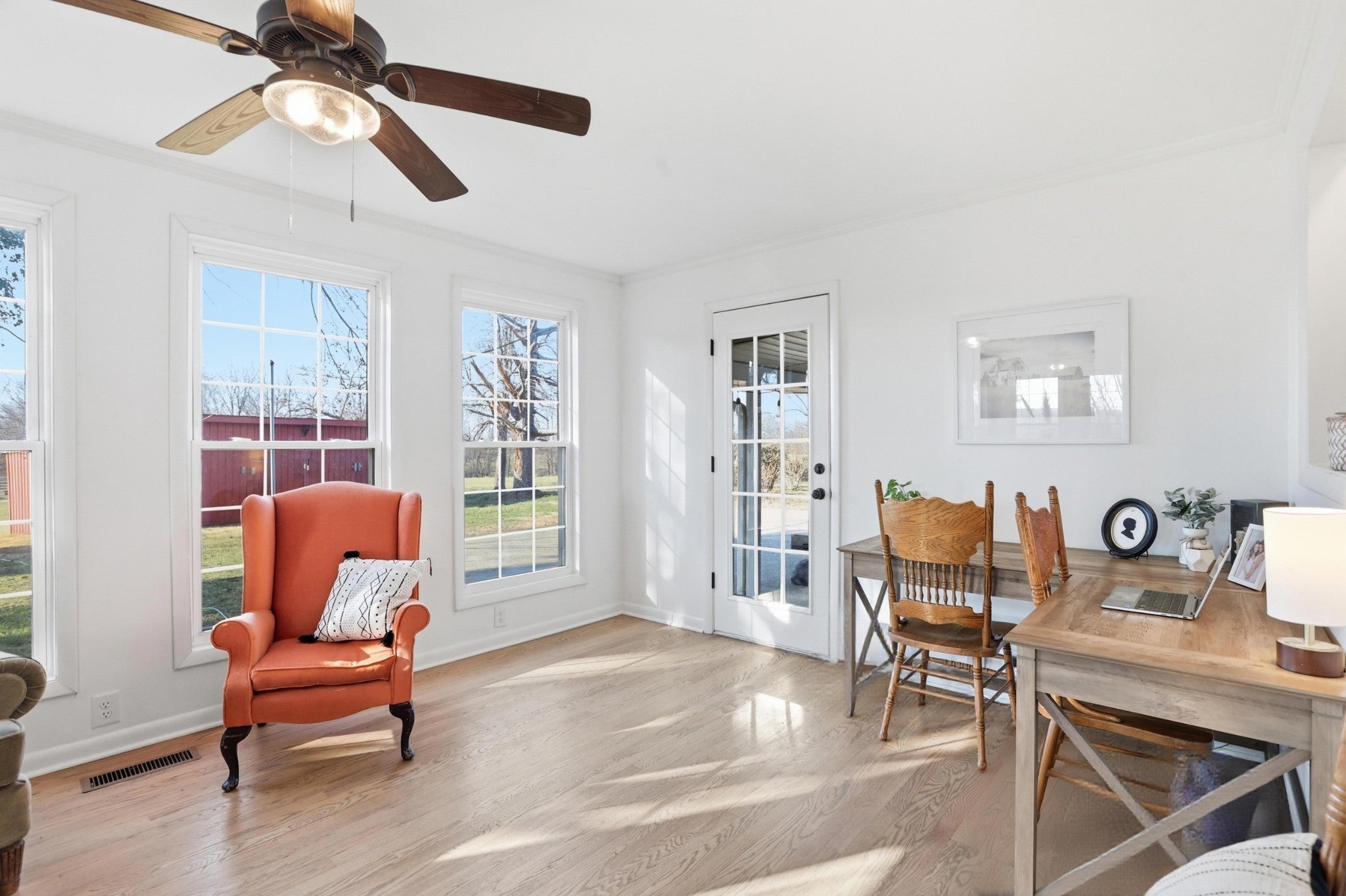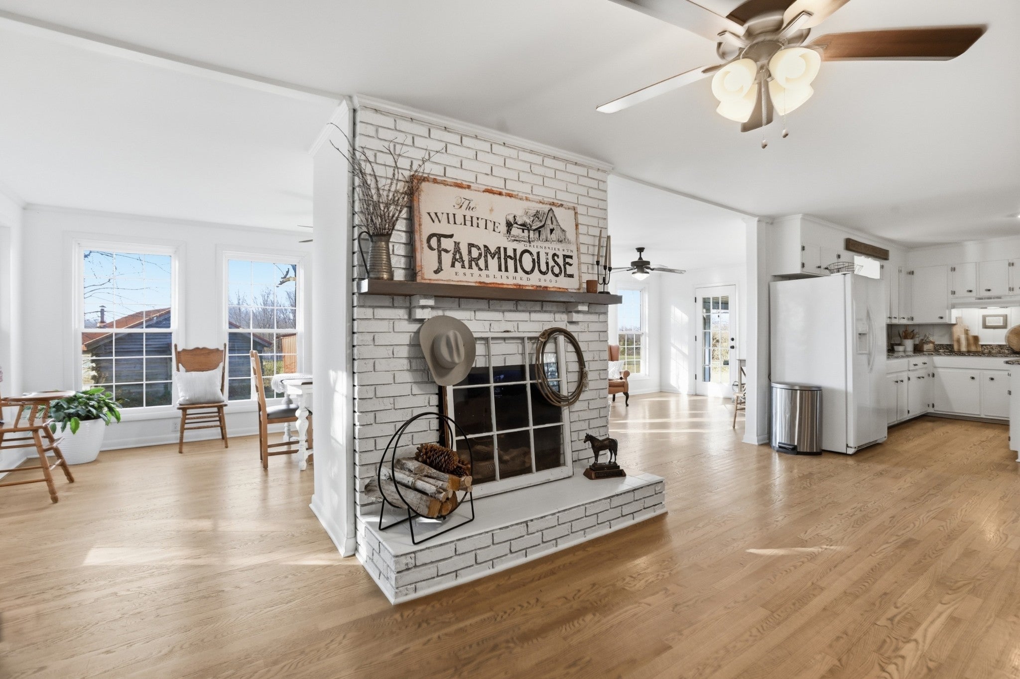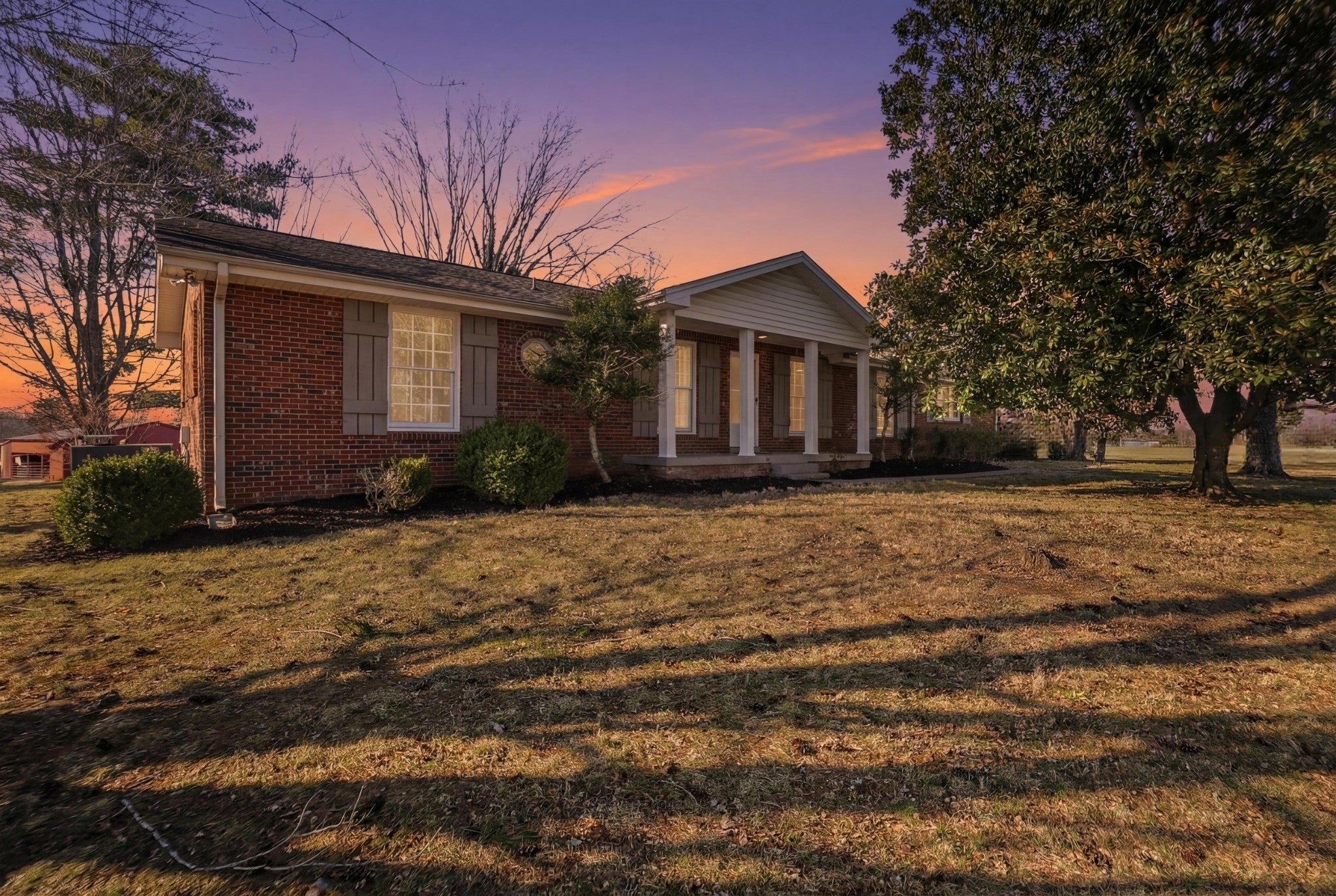 Seller offering up to $10,000 toward closing costs, rate buy-down, or buyer’s choice of incentives with acceptable offer! This fully renovated farmhouse is set on 5.82 picturesque acres just three miles from I-65, offering the perfect blend of timeless character and modern updates. The all-brick home features four bedrooms and two-and-a-half bathrooms, thoughtfully designed for both comfort and functionality. A recently added primary suite creates a private retreat with a spacious layout and double vanities, while the expanded living area enhances the open, inviting flow—ideal for everyday living and entertaining. Original hardwood floors add warmth and charm, and large windows frame beautiful views of the rolling landscape and mature trees. The kitchen is both practical and well-equipped, featuring an electric cooktop, oven, and included refrigerator. Outside, the property offers exceptional versatility. In addition to the main home, there is a historic cottage ready for restoration, a metal equipment shed/garage with bay doors, a feed and hay shed, and a sizable barn—perfect for a variety of uses including a mini farm, workshop space, storage, or future expansion. Fenced pasture, gently rolling terrain, and the added benefit of no HOA provide rare flexibility, especially with such convenient access to the interstate. This is a unique opportunity to own a property that offers space, character, and long-term potential—something increasingly difficult to find in today’s market.