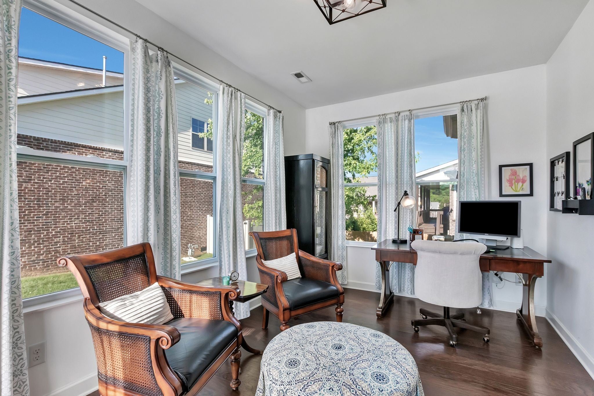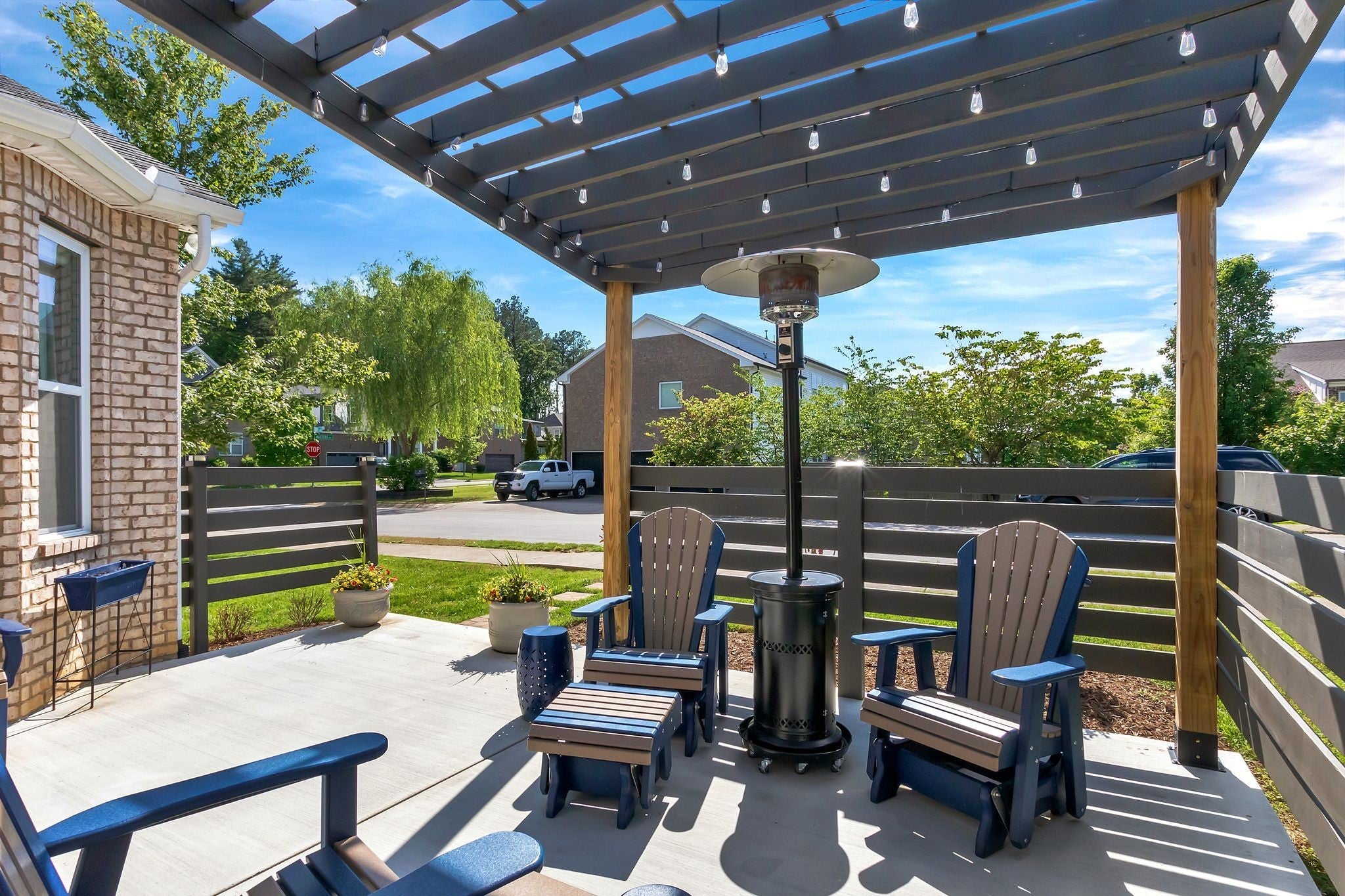 Modern Comfort home with exceptional flow and entertaining space. Features include: • Open-concept main floor with spacious living area • Gas stove for cooking enthusiasts • Sunroom perfect for morning coffee • 3 bedrooms down • 3 full bathrooms • Upstairs flex space—ideal home office or convert to 4th bedroom • Renovated back patio with expanded layout and pergola • Unique side-entry garage • Walking distance to Pine Creek Golf Course • Less that 10 Minutes to Providence Shopping Center and less than 15 minutes to Costco on Golden Bear Pkwy. The white front yard swing does not convey.