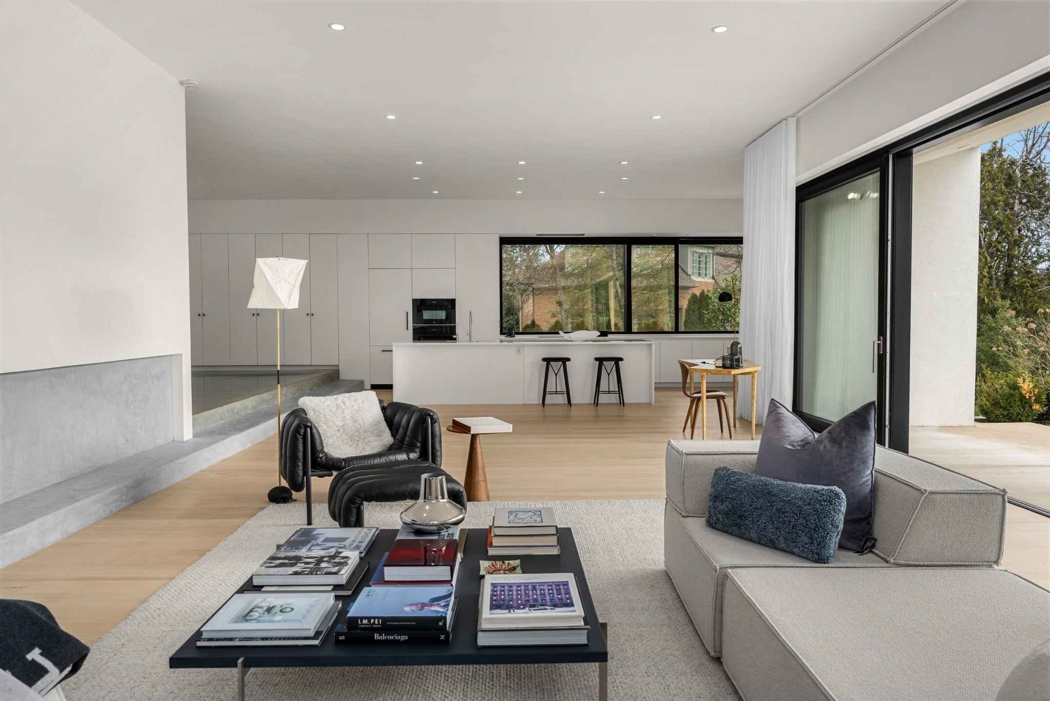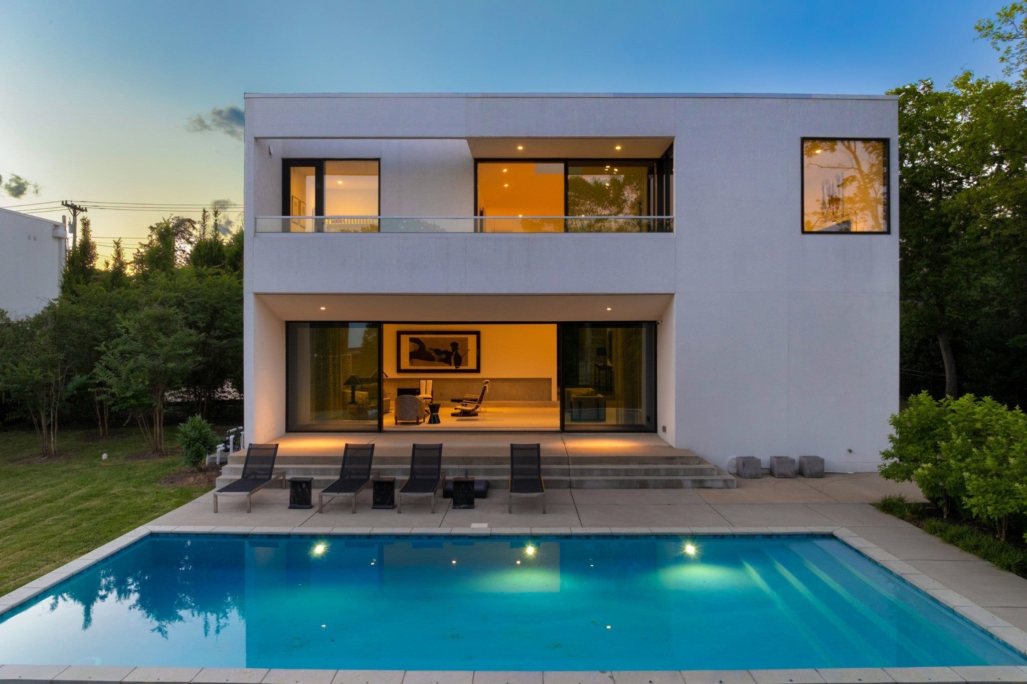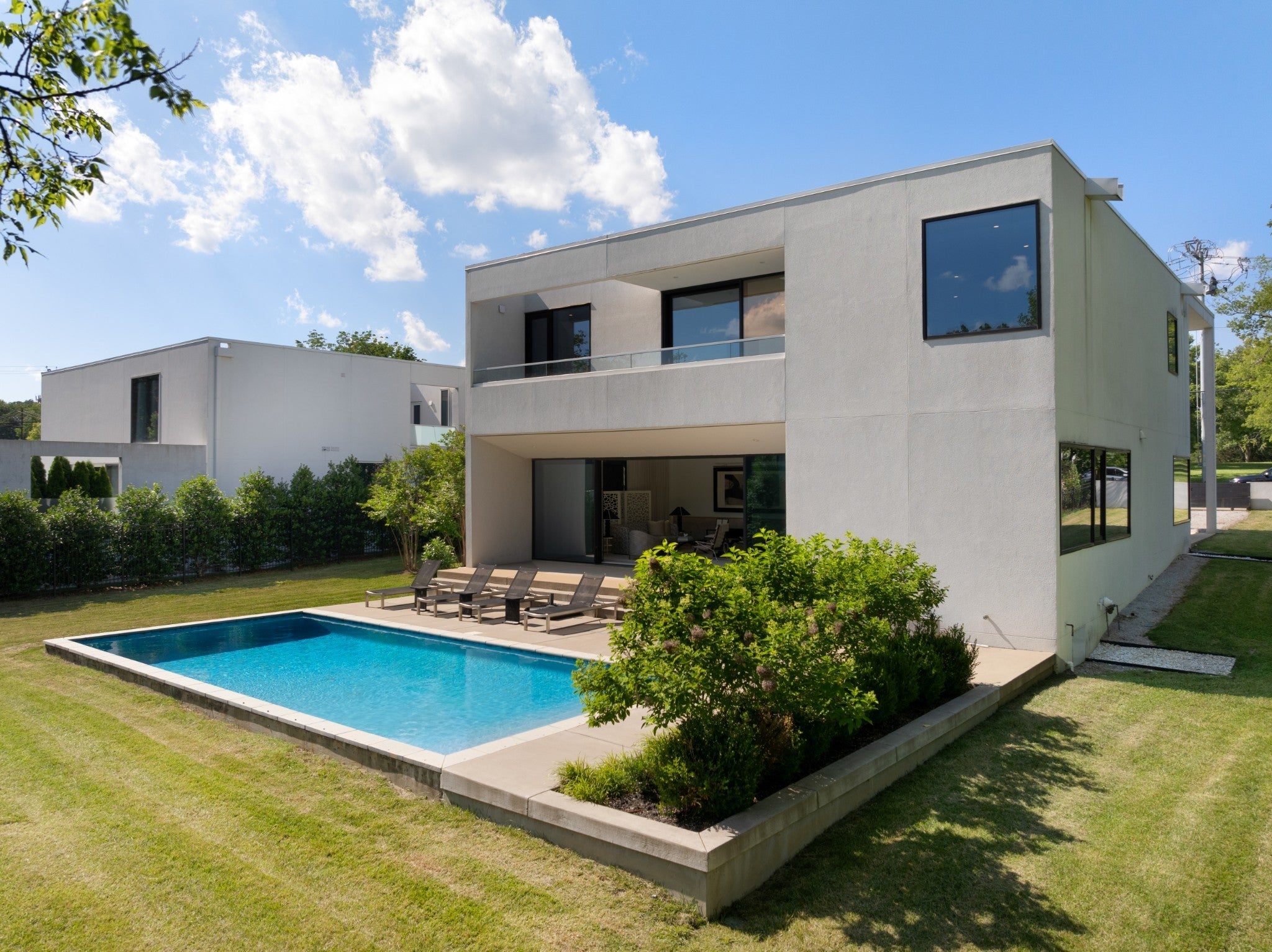 Designed by internationally acclaimed architect Alexandros Darsinos, this architectural showpiece masterfully blends modern design with its natural surroundings. Walls of glass and expansive picture windows bathe the interiors in ever-changing natural light, creating a bright, airy atmosphere from morning to dusk. The open-concept floor plan pairs clean lines with warm wood accents and soft neutral tones, balancing the sleek concrete exterior with inviting, livable elegance. Upstairs, a dramatic skylight anchors a serene lounge and three private bedroom retreats, offering comfort and tranquility. Thoughtful homeowner upgrades elevate both style and function, including an EV charger, custom drapery, and California Closets in all bedrooms and the garage. The reimagined kitchen shines with upgraded cabinetry, pull-out drawers, and built-in organizers for effortless everyday living. Step outside to your own secluded oasis. A sparkling pool is surrounded by lush landscaping and mature trees, creating a peaceful, resort-inspired escape. The partially covered patio extends the living space, perfect for entertaining or unwinding in nature.More than a home, this is a living work of art — meticulously designed, thoughtfully upgraded, and crafted to inspire.