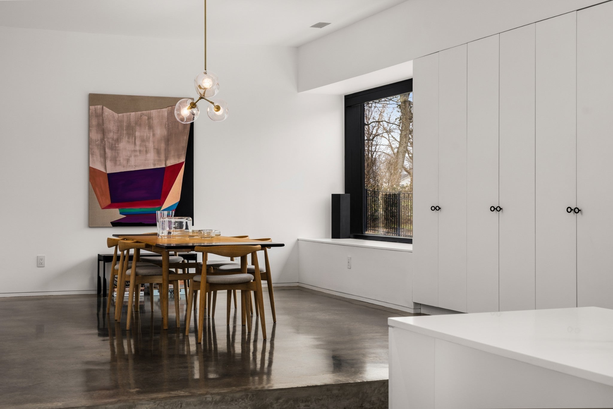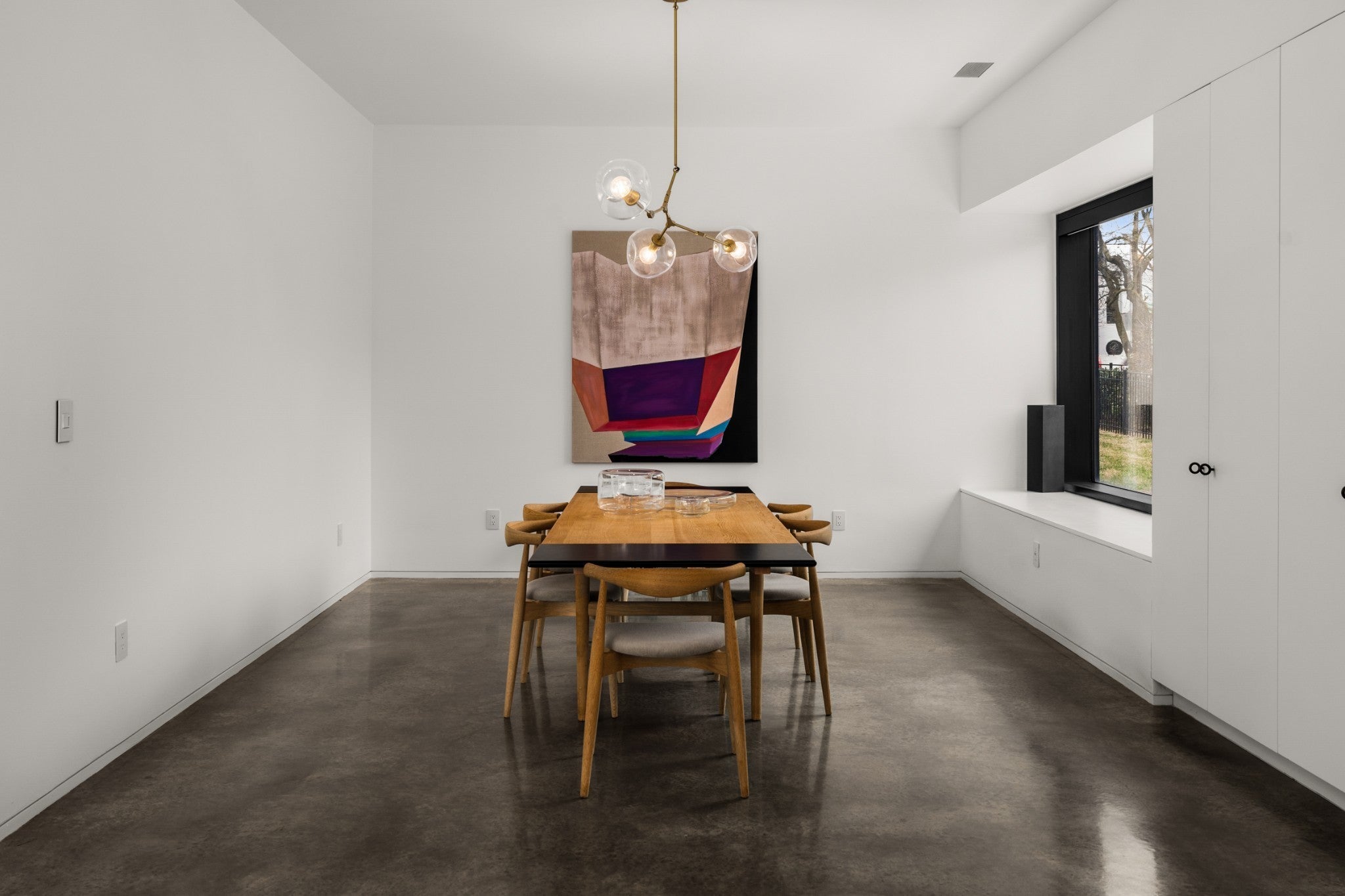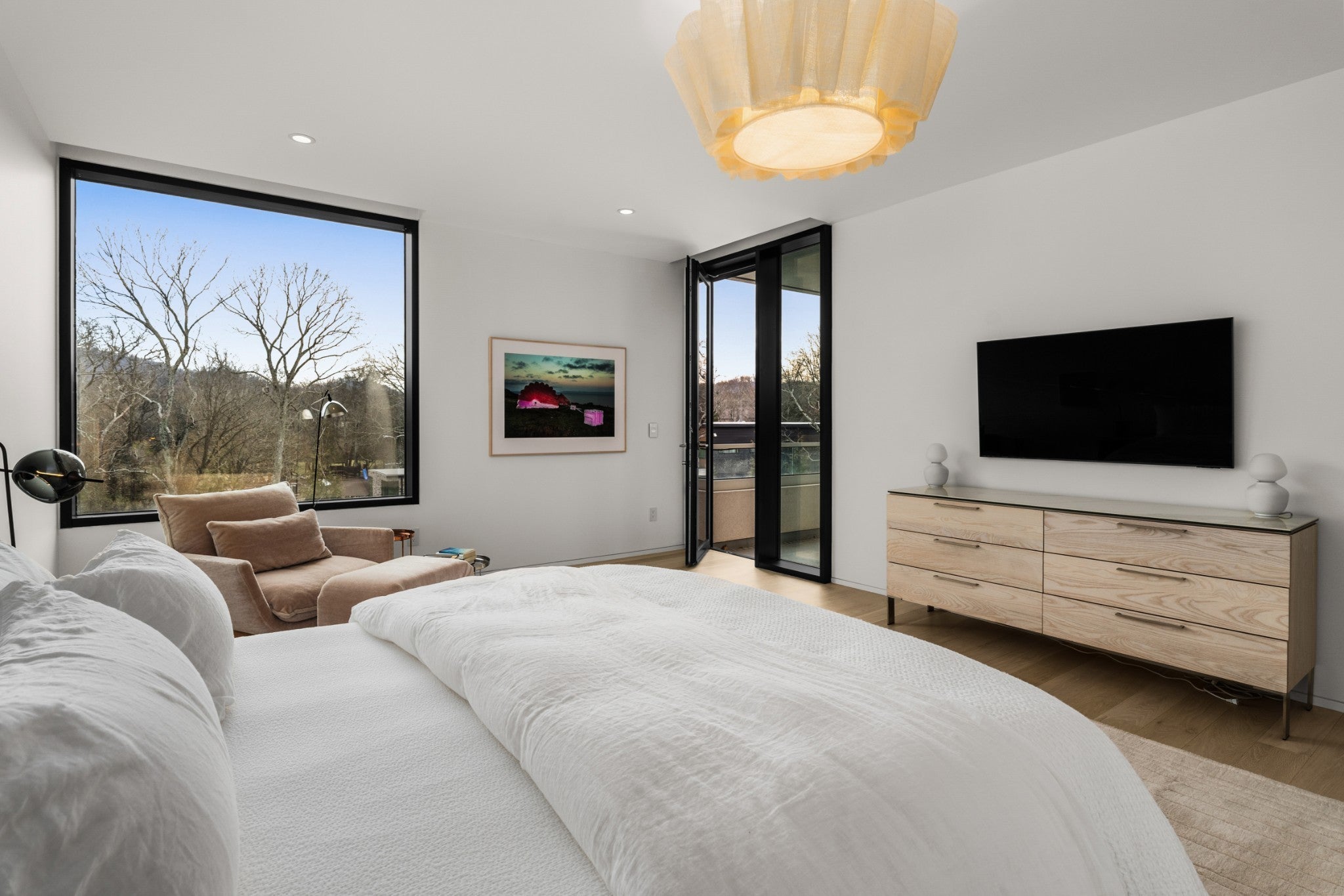 Designed by internationally acclaimed architect Alexandros Darsinos, this architectural showpiece masterfully blends modern design with its natural surroundings. Walls of glass and expansive picture windows bathe the interiors in ever-changing natural light, creating a bright, airy atmosphere from morning to dusk. The open-concept floor plan pairs clean lines with warm wood accents and soft neutral tones, balancing the sleek concrete exterior with inviting, livable elegance. Upstairs, a dramatic skylight anchors a serene lounge and three private bedroom retreats, offering comfort and tranquility. Thoughtful homeowner upgrades elevate both style and function, including an EV charger, custom drapery, and California Closets in all bedrooms and the garage. The reimagined kitchen shines with upgraded cabinetry, pull-out drawers, and built-in organizers for effortless everyday living. Step outside to your own secluded oasis. A sparkling pool is surrounded by lush landscaping and mature trees, creating a peaceful, resort-inspired escape. The partially covered patio extends the living space, perfect for entertaining or unwinding in nature.More than a home, this is a living work of art — meticulously designed, thoughtfully upgraded, and crafted to inspire.
