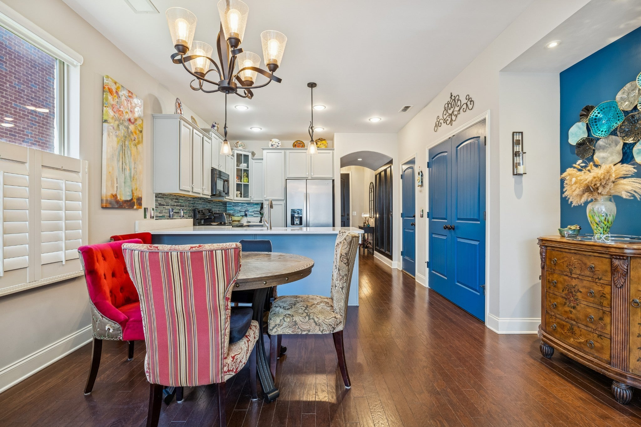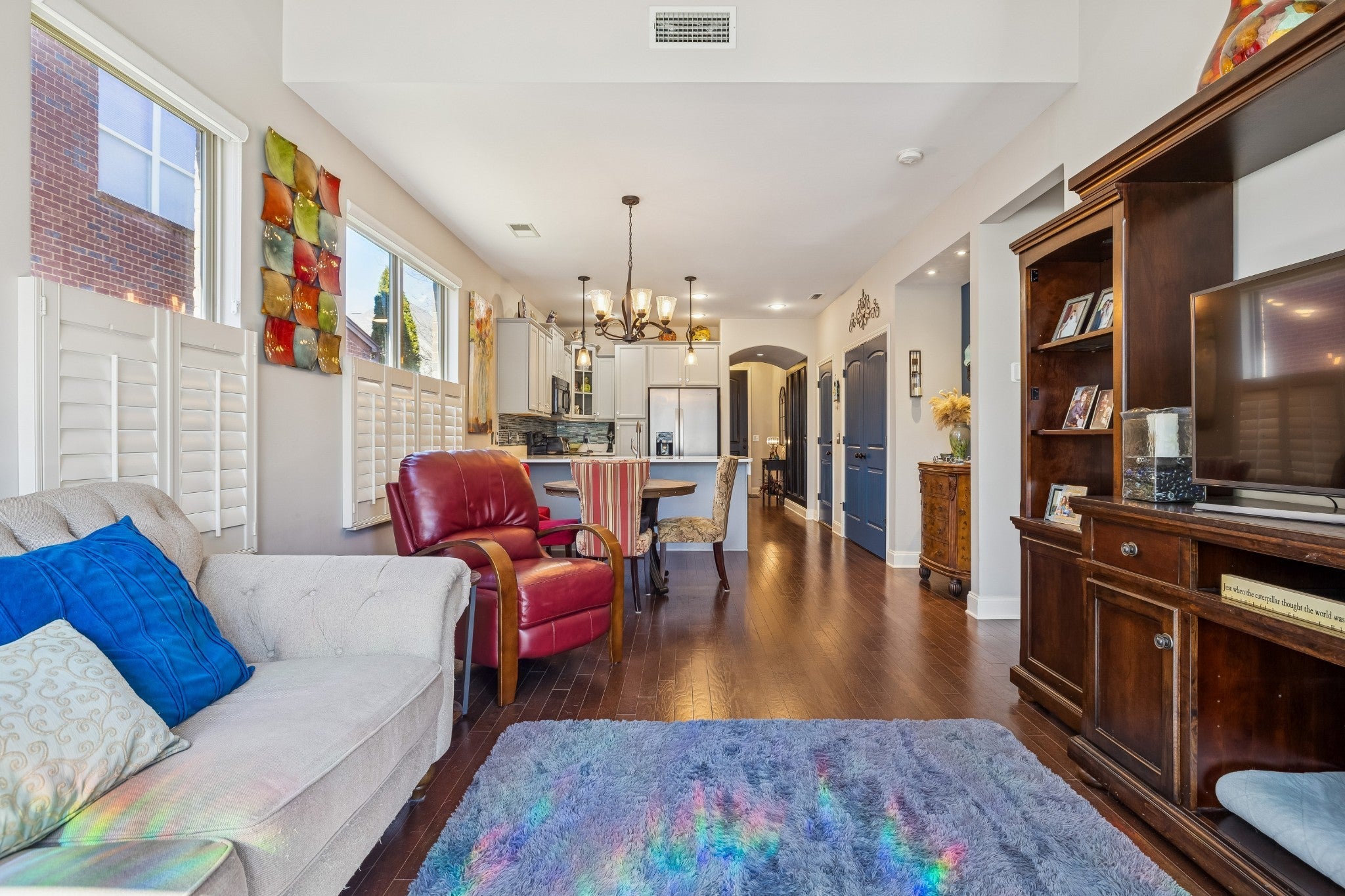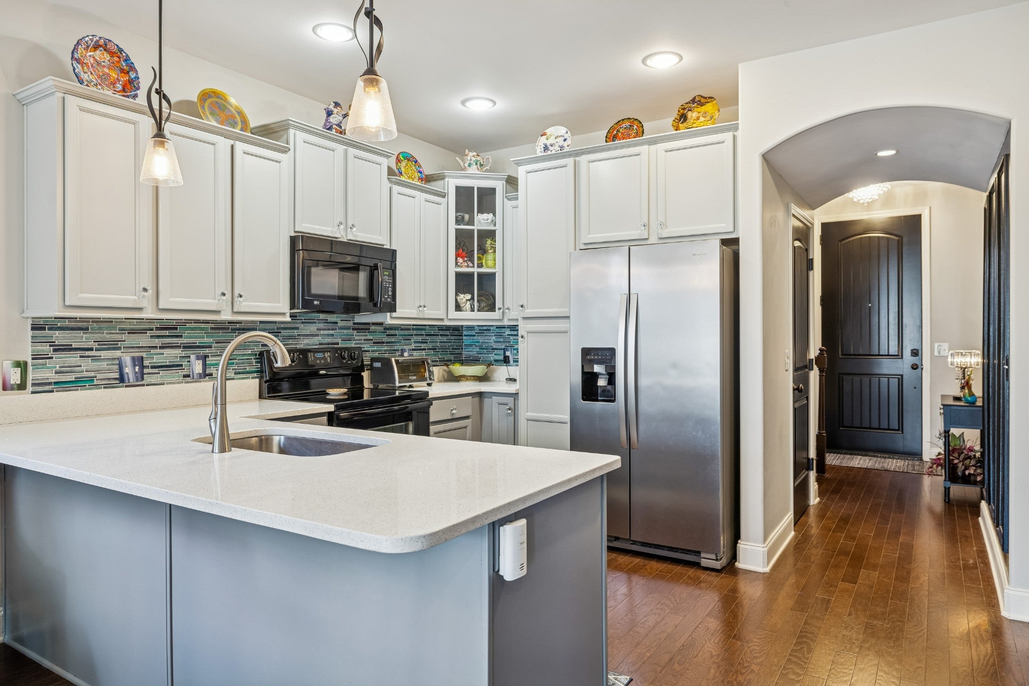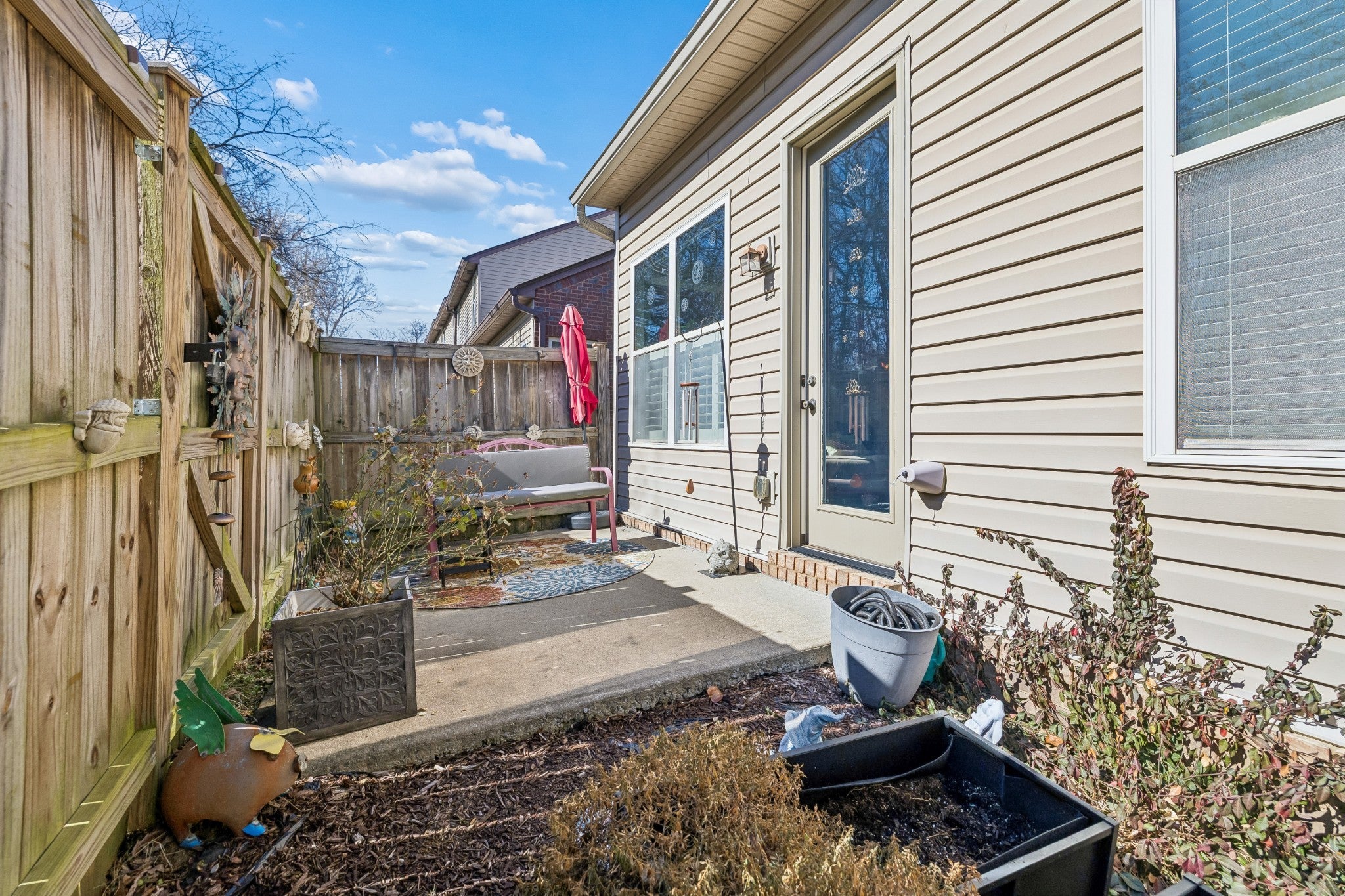 Beautiful 3-bedroom, 2.5-bath Brick townhome with over 1,700 square feet of upgraded living space! This desirable end unit features a 1-car garage and a bright, open living room filled with natural light from numerous windows. Seller has added a laundry room (not in the kitchen) The primary bedroom is conveniently located downstairs and offers a spacious walk-in closet with built-ins. Double vanities, and a walk-in shower. The kitchen showcases elegant quartz countertops, upgraded gray cabinetry, and modern finishes throughout. Plantation blinds add style and charm to the home. Freshly painted and ready to move right into. Enjoy outdoor living with a private fenced-in patio—perfect for relaxing or entertaining. Community amenities include a pool, clubhouse, and scenic walking trails. Conveniently located close to shopping, dining, and everyday essentials. Move-in ready and full of upgrades—don’t miss this one!