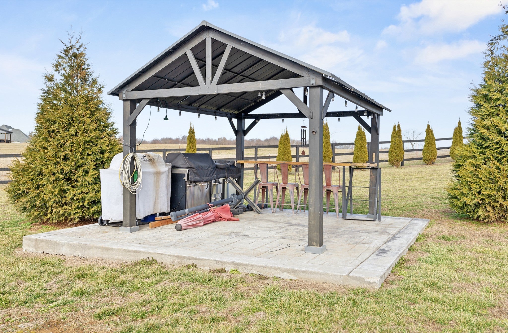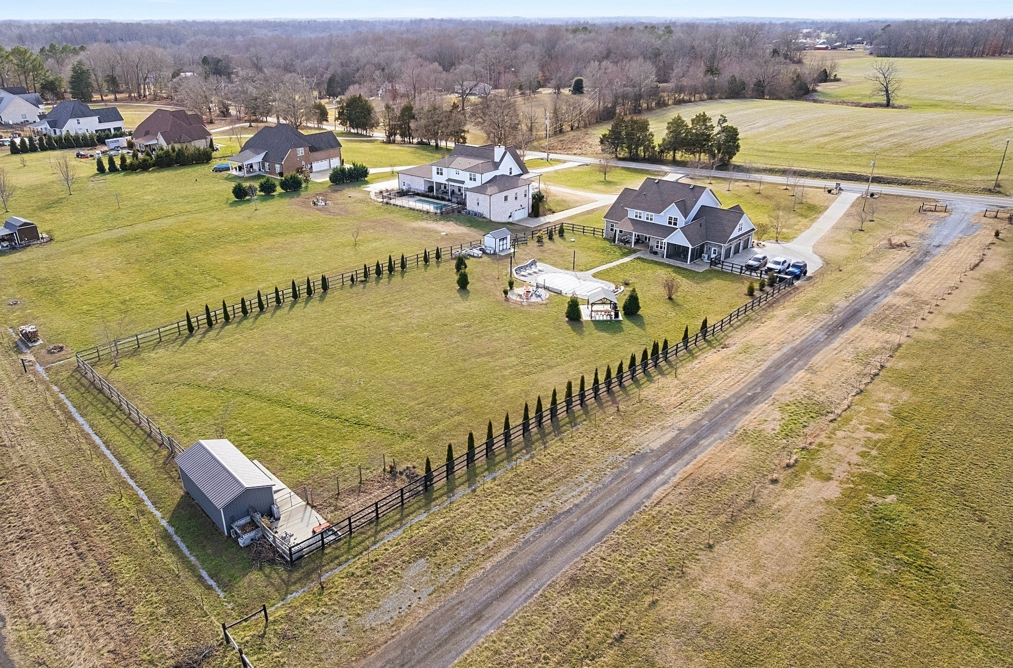 This is THE ONE., a home to grow and make memories in. Custom built 4 BED, 4 BATH, BONUS ROOM, OFFICE, 3 CAR GARAGE, IN GROUND POOL, PRIVACY, NO CITY TAXES, NO HOA. Too many amazing details to list but here are a few, Zoned HVAC control for primary bedroom & office, Outdoor entertainment includes screened in dining area, covered front and back patio, fenced back yard ( 1 acre), lined with privacy trees, fire pit, grilling gazebo, two storage sheds, pool with new liner (7/25) New pool cover (10/25) Extended paved driveway for extra parking. Trees established in front yard. Gas range top, double oven, walk in pantry, window filled dining area. Gas fireplace in living room with custom shelving on each side. Open living floor plan. Garage heated and cooled. Tankless gas water heater. Mud room with built in bench. Huge Laundry room with storage and sink. During a tour you will notice many more intentional details.