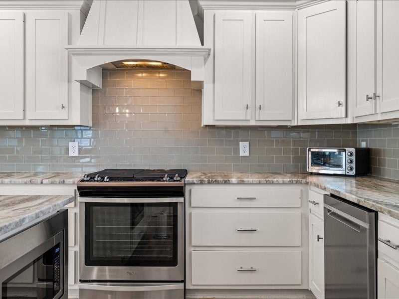 - Range, Dishwasher, Disposal, Dryer, Microwave, Refrigerator, Stainless Steel Appliance(s), Washer