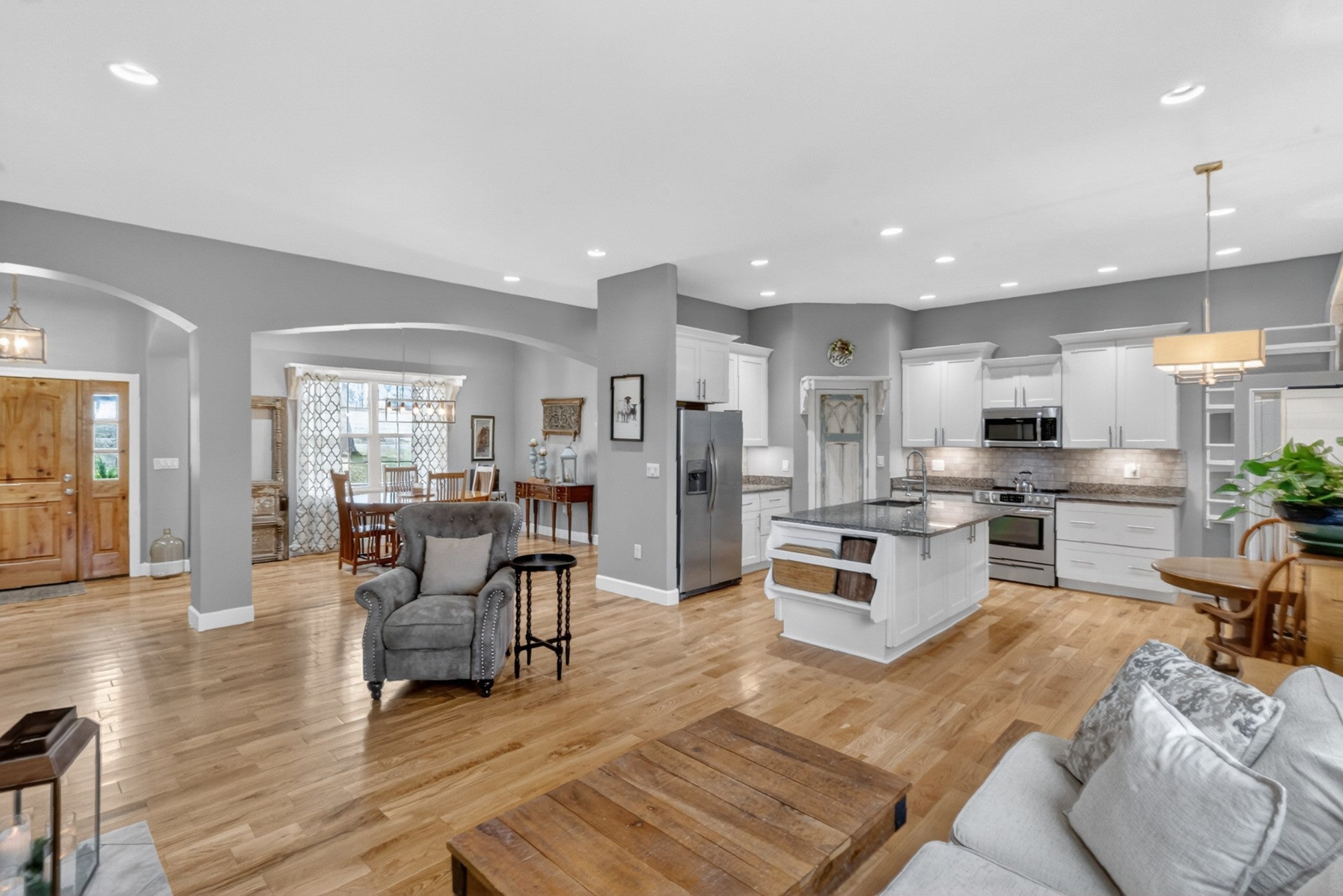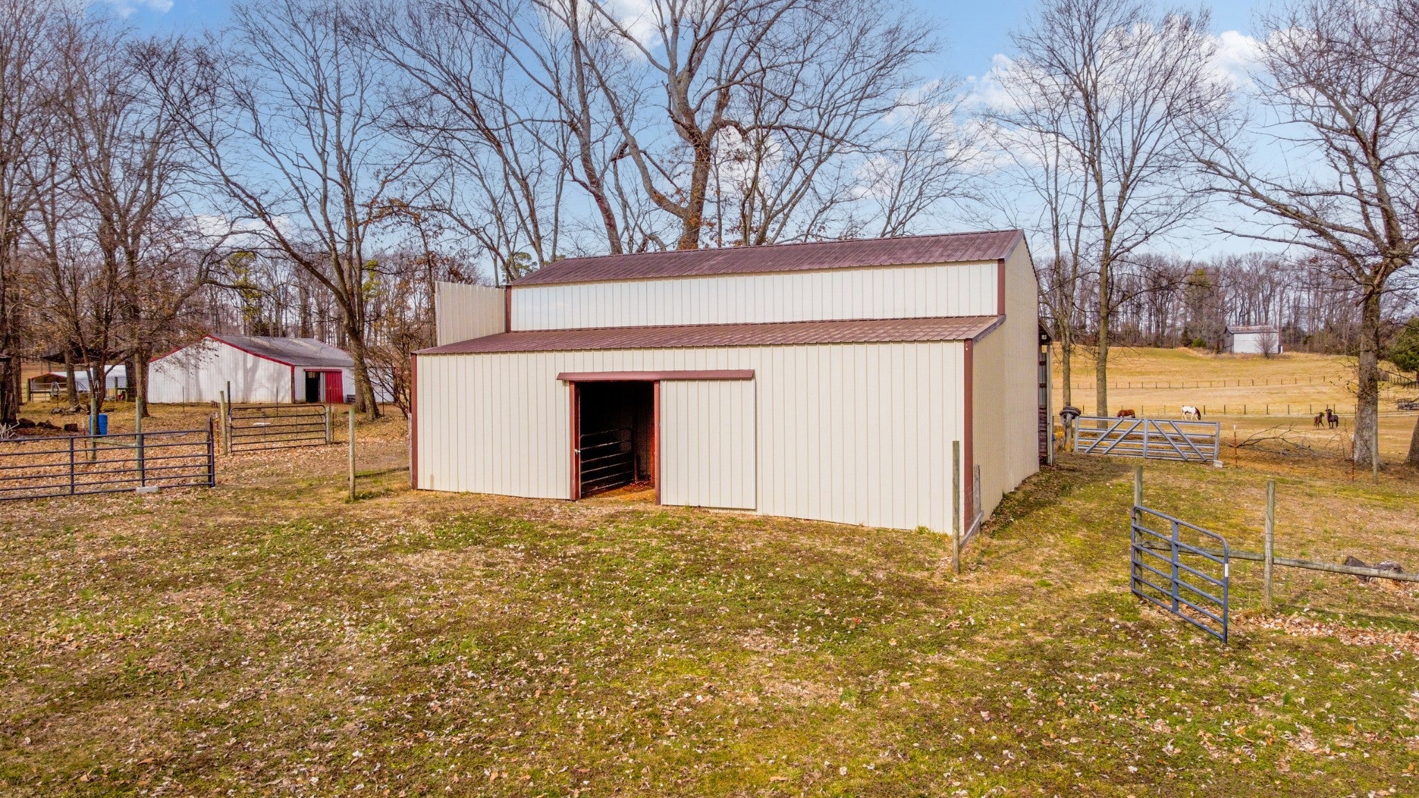 Looking for a mini-farm less than an hour from Nashville? Check out this stunning, custom all brick home on 3.53 acres with barn! Built in 2020, this home combines quality finishes, spacious interiors, and beautiful outdoor space that is perfect for family living, entertaining, and hobby farming. Features include: 3 Bedrooms - 3 Full Bathrooms - wide plank hardwood flooring and tile in all wet areas - open concept floorplan ideal for gatherings and entertaining - bonus/recreation room on the main level with it's own cozy wood burning fireplace and panoramic views of the rolling countryside (notice the windows with built-in blinds within glass) - primary suite with extra large walk-in closet with built-ins - luxurious ensuite featuring soaking tub, dual vanity, and large tiled shower. This property is also fully fenced and cross-fenced to include 3 separate holding pens/paddocks and also includes a huge 40’x40’ pole barn/workshop with electric (3 sections) with loft storage - ideal for horses, animals, or pets. A 10x20 dog run also conveys with this property. If you are needing extra storage, the large extra clean large "crawl" spaces below are well placed and large enough to store anything needed when not in use (dehumidifier in crawl space will also convey with home). A storm shelter is also accessible through crawl space located under front porch. 240V outlet is conveniently located in the garage suitable for welder or commercial equipment. The owners spared no expense and thought of every little detail to make the most out of every space this home has to offer. A truly custom build with every detail thought out precisely.