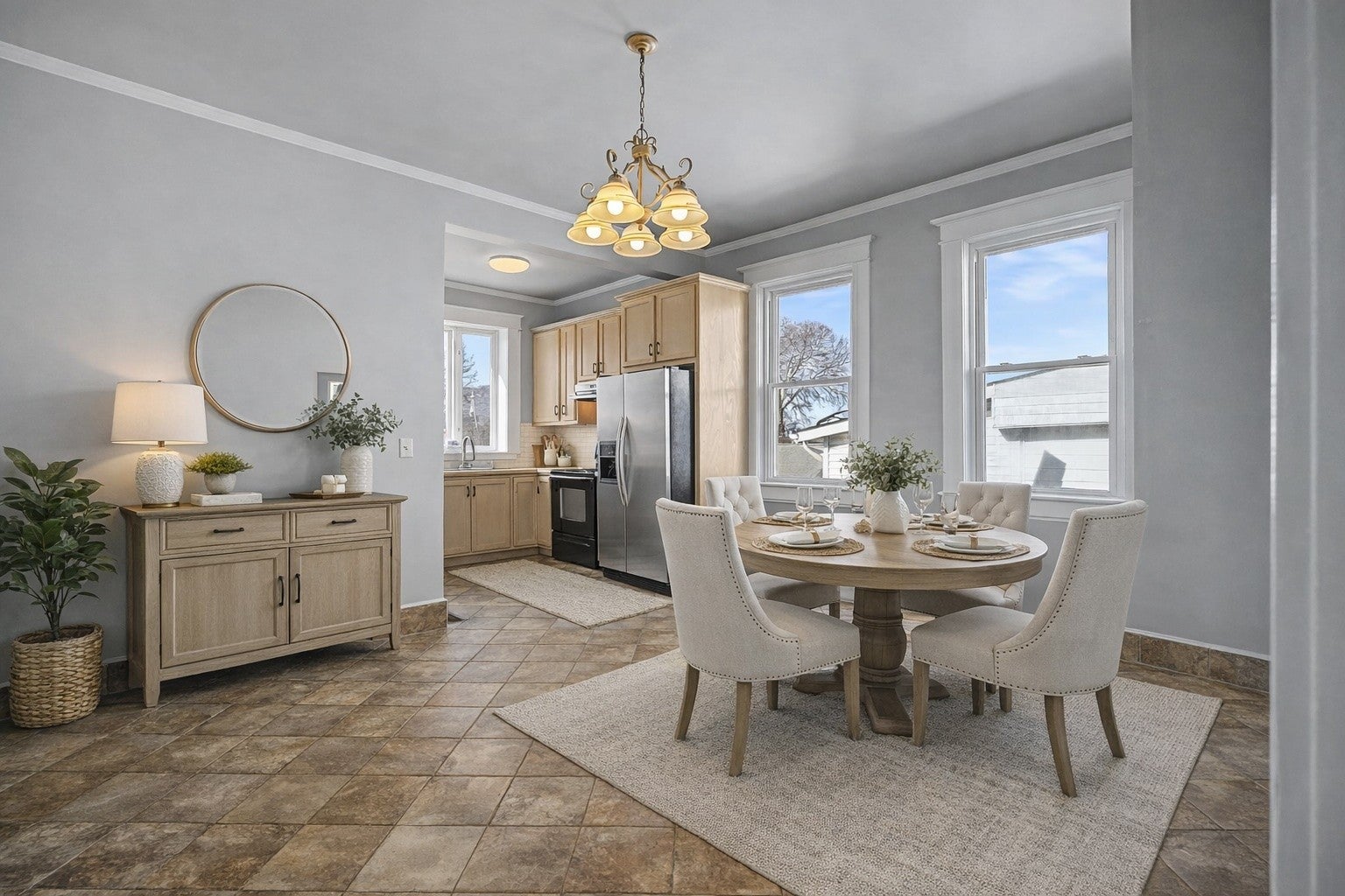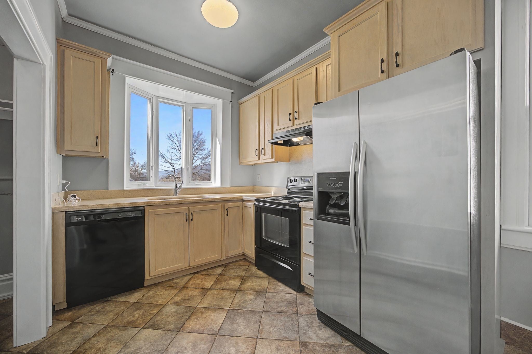 - Electric Oven, Dishwasher, Ice Maker, Refrigerator, Stainless Steel Appliance(s)