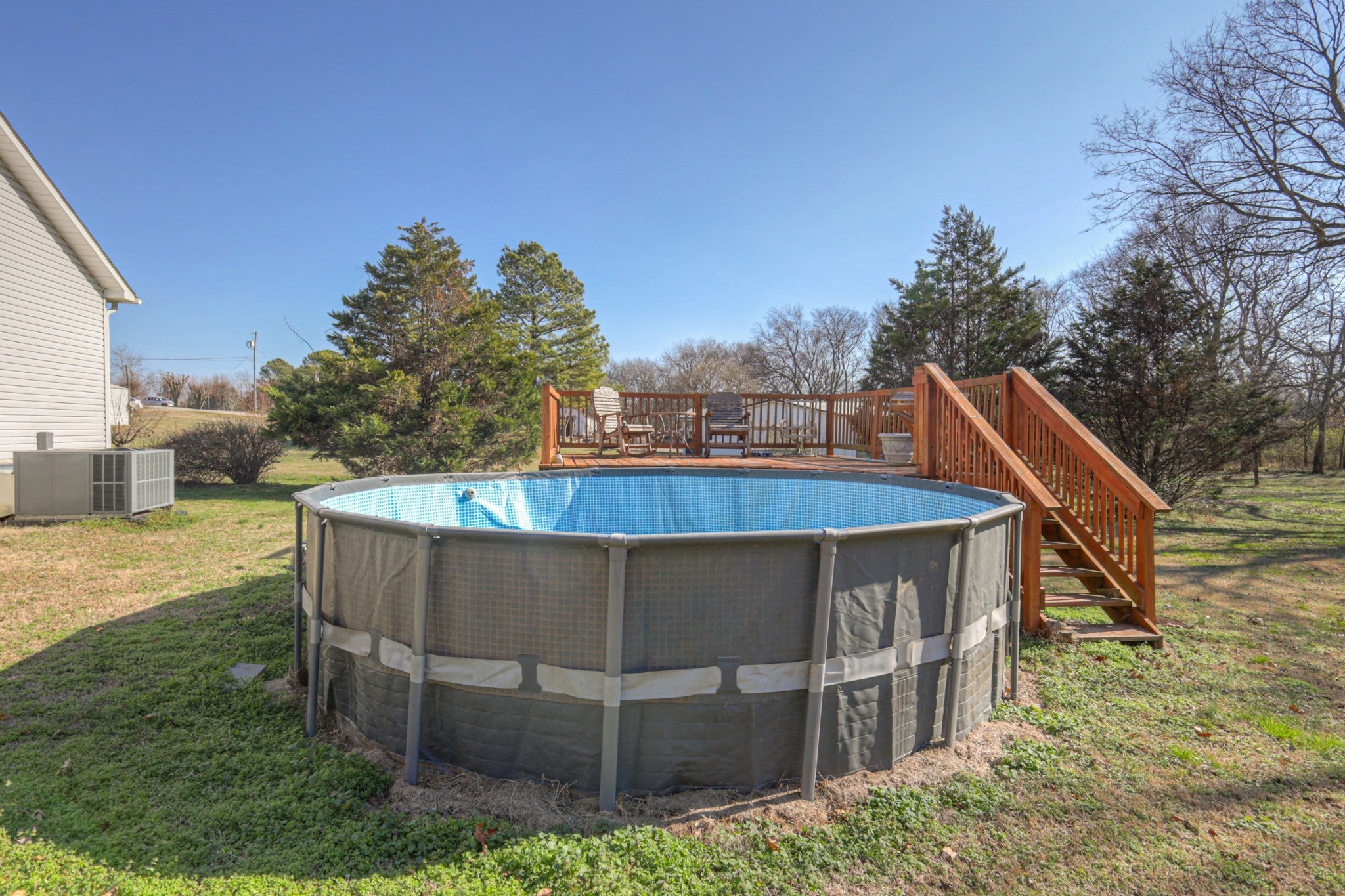One level home with beautiful, treed, private back yard. Home has over 2 acres with No HOA No Covenants. Three bedrooms, two full baths, concreted back porch area, above ground pool, attached covered carport, 10x20 outbuilding with electricity. New HVAC, New 50 gallon water heater, New counter tops, New pool liner. Home Warranty provided. Enjoy the quiet, county living of Columbia off Pulaski Hwy but only minutes from Legend's Steakhouse and all the shopping on James Campbell blvd. Showings will begin at the Open House 1-3 February 22nd