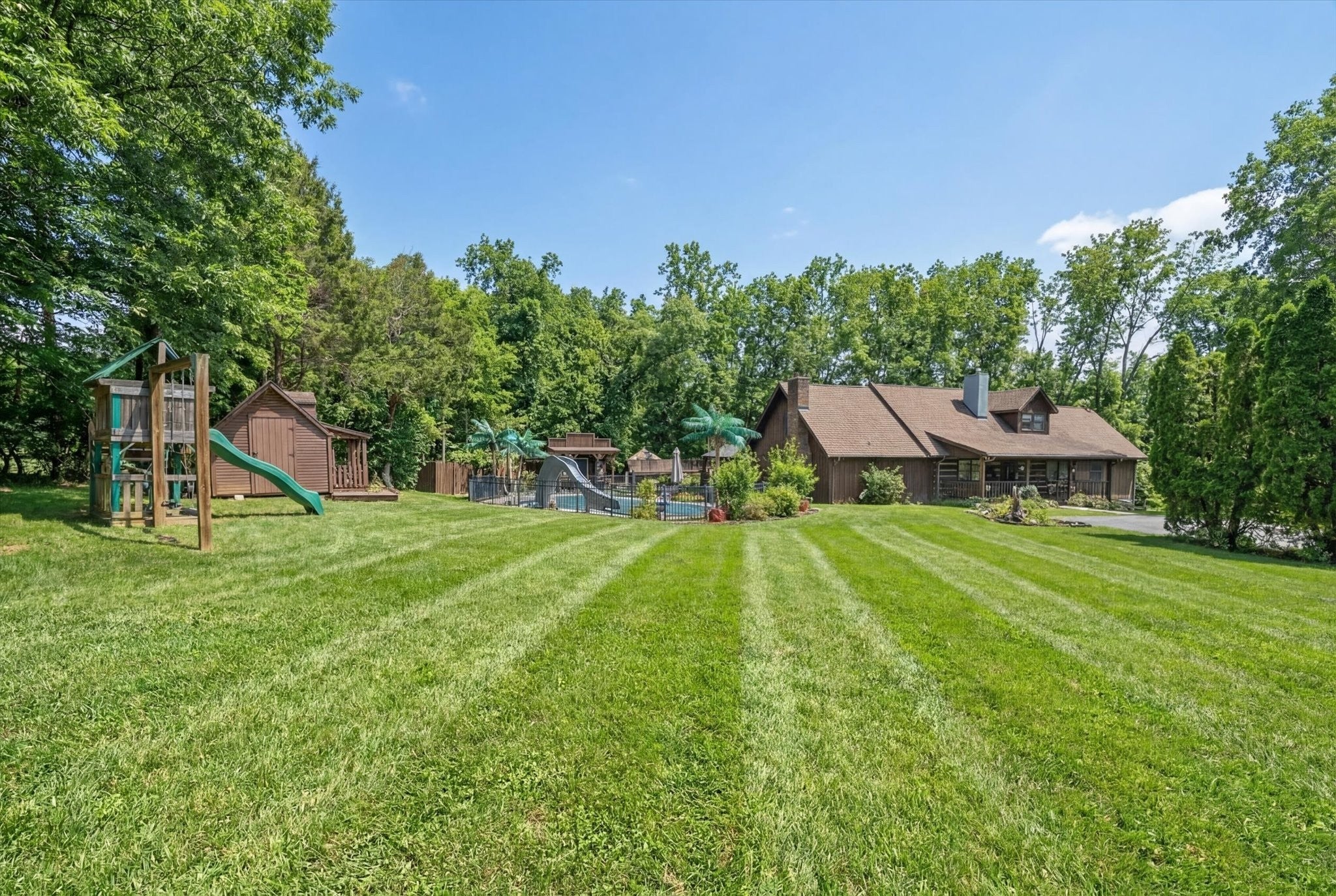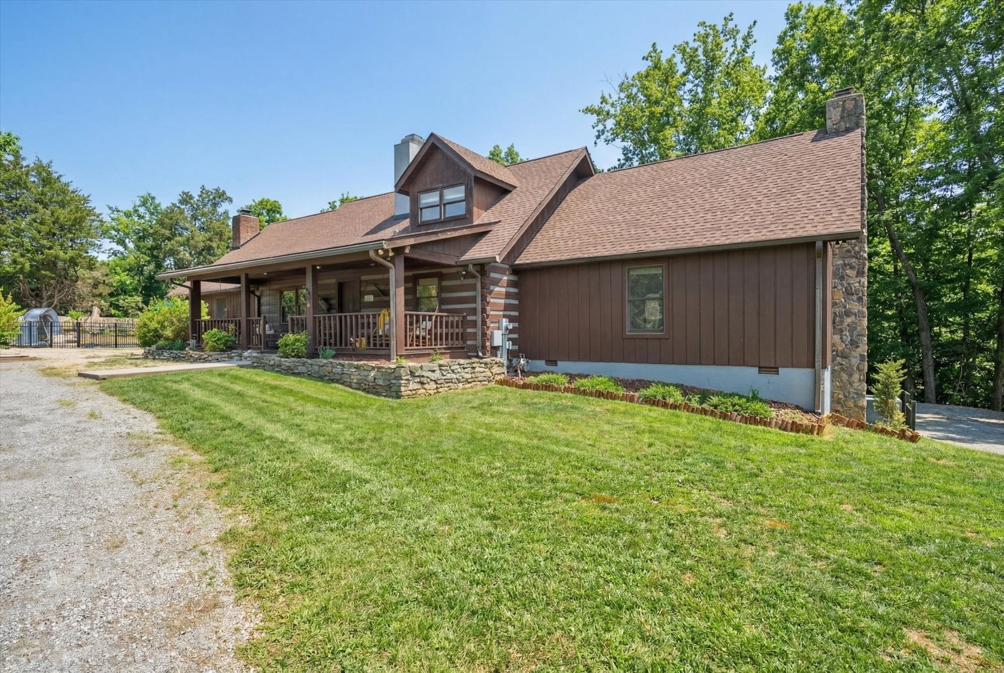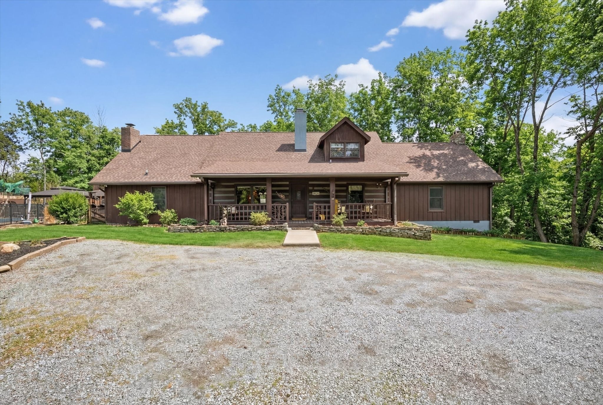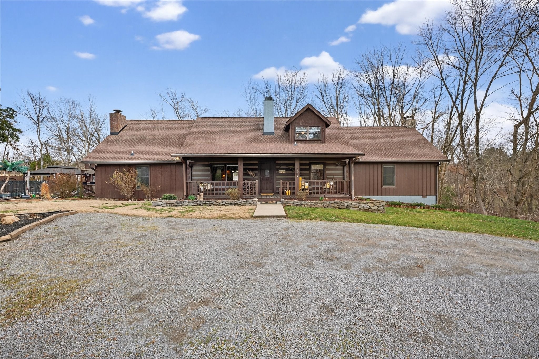 Only 2 miles from Exit 11 in the Sango area and located within the Rossview High School limit! Welcome to the 2.9 acres of tranquility, whether on the front porch and swing, in the heated inground pool or as you enter into your very rustic, 2 story extended log cabin! Open the door to an open-concept great room the 1st of 4 fireplaces and open concept dining area into kitchen with a large island boasting beautiful granite counter tops and stainless steel kitchen appliances and over-sink TV. 3 other fireplaces are located in spacious main floor 28X20 primary en-suite bedroom,in the the high celinged rec rm/2nd living rm (lg TV included) and an electric one in the finished partial basement. 3 additional bedrooms, full bathroom and a 15 X13multi-purpose loft area are located on the 2nd floor. 18X24(irregular shaped) finished partial basement/recreation/entertainment room with lots of storage, a “secret room”, exits to 2 separate 1 car garages, a 1/2 bath and walk-out to a sitting area! ***, Oversized(40x24), detached double-garage-door 2 car garage/workshop with a lean-two/covered parking space!*** Enjoy an outdoor relaxation or entertainment experience with the well-maintained HEATED in-ground pool with waterfall, outdoor kitchen/bar, 2 pergolas, pool house, covered front porch and covered rear wood deck, stocked koi pond, playhouse and play set. This property is located on 2.9 acres! Buyer or Buyer's agent to verify ANY information deemed important. such as square footage, property lines, acreage, school zones,etc. **SELLER WILL BEGIN REVIEWING OFFERS ON MONDAY, MARCH 16th. PLEASE GIVE 24 HR ACCEPTANCE DEADLINE***$1500 Earnest Money due to Momentum Title Clarksville, within 48 hours after an accepted offer