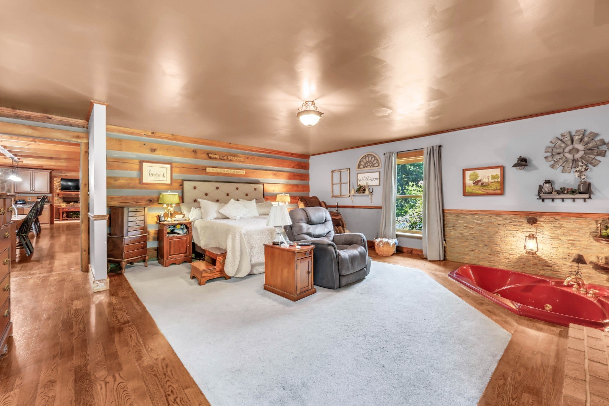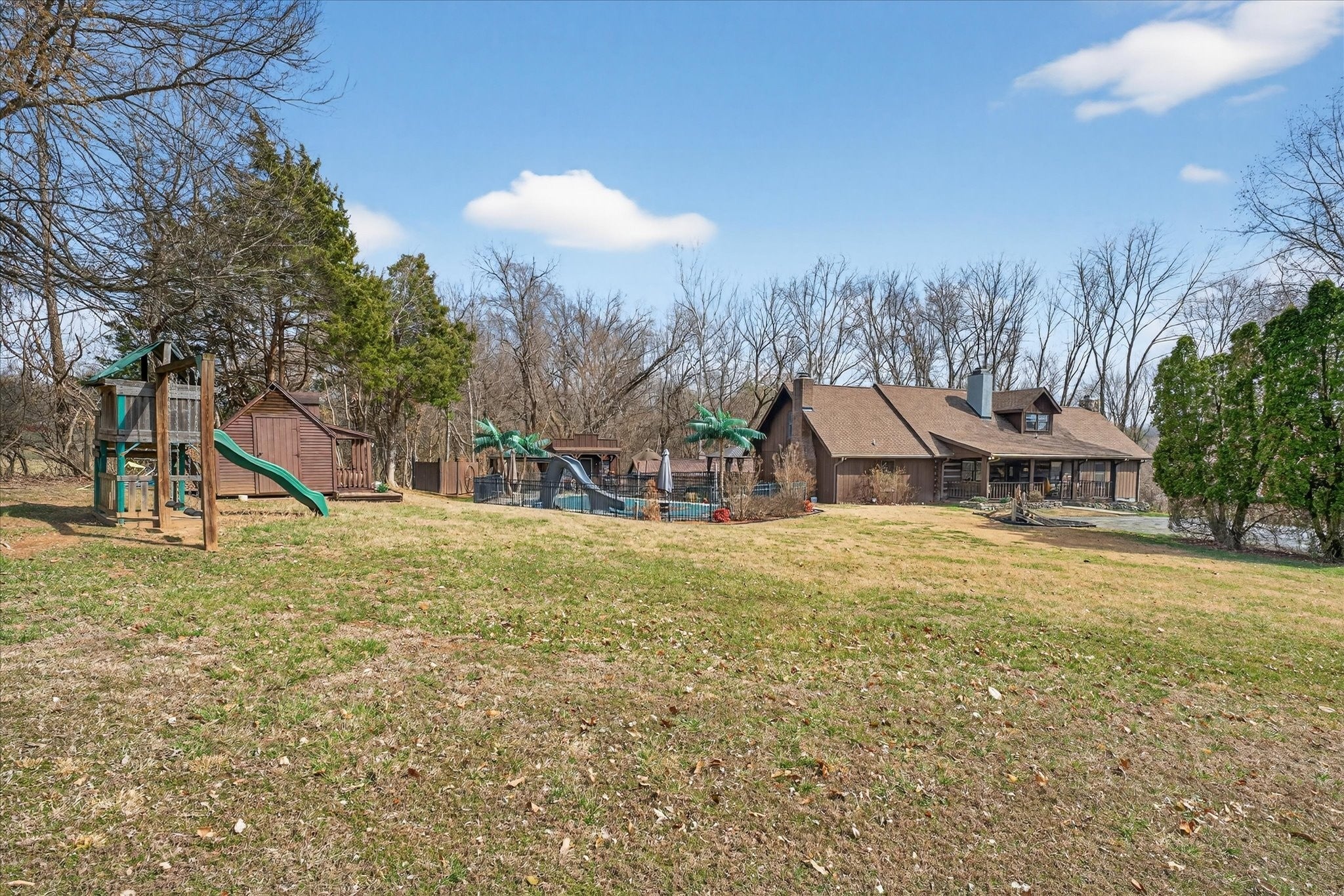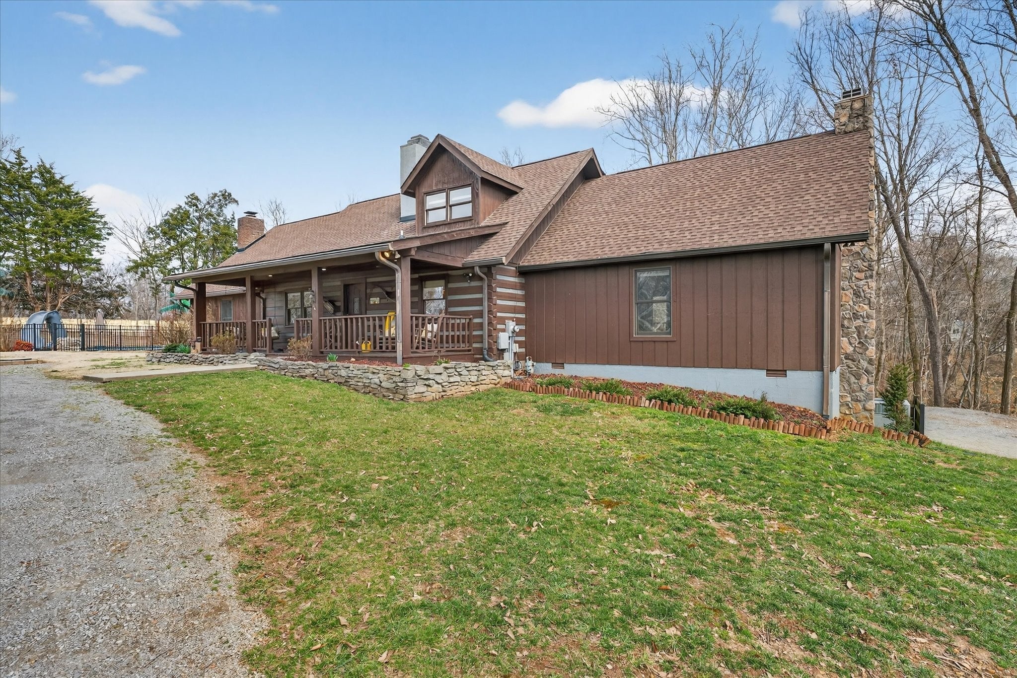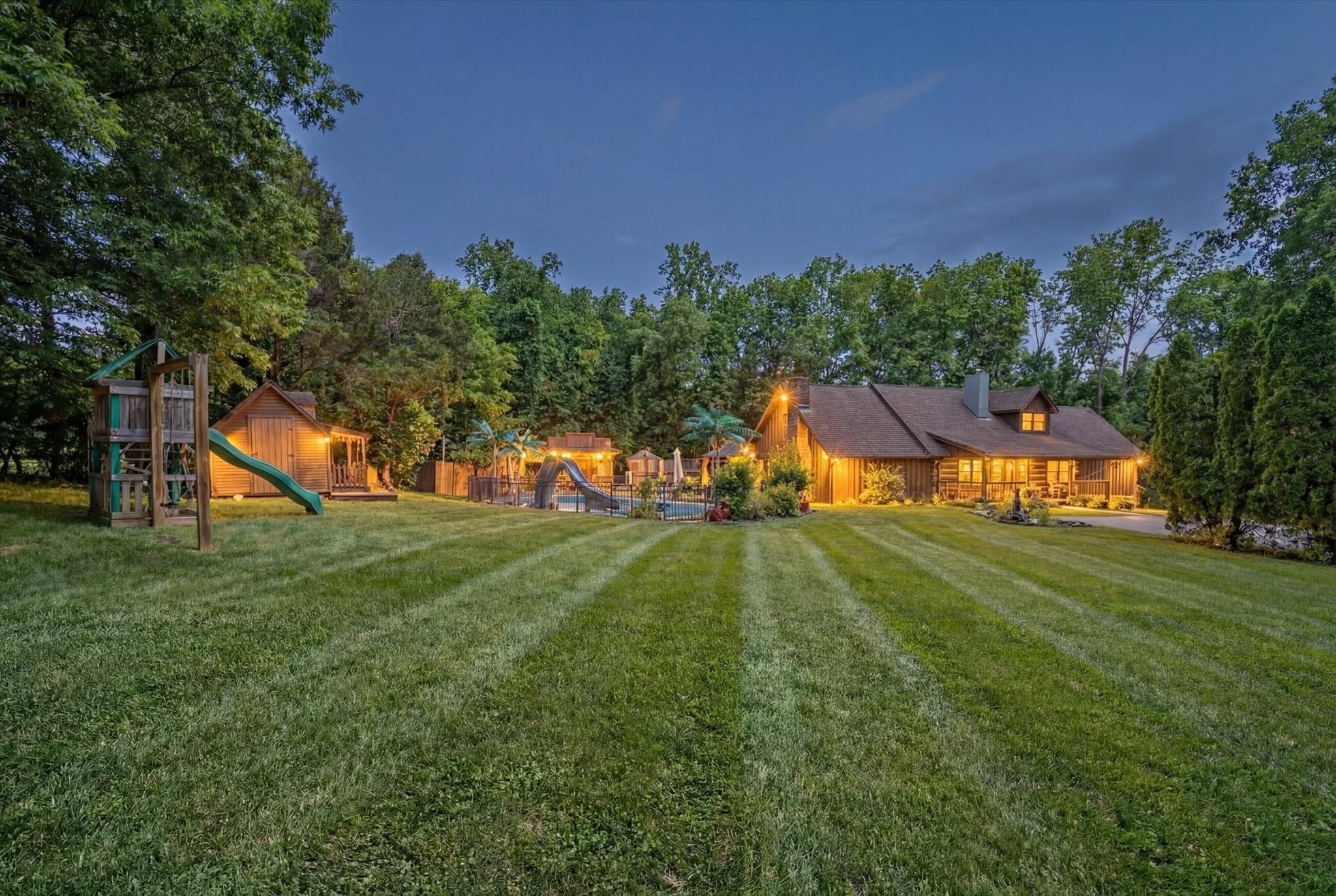 Only 2 miles from Exit 11 in the Sango area and located within the Rossview High School limit! Welcome to the 2.9 acres of tranquility, whether on the front porch and swing, in the heated inground pool or as you enter into your very rustic, 2 story extended log cabin! Open the door to an open-concept great room the 1st of 4 fireplaces and open concept dining area into kitchen with a large island boasting beautiful granite counter tops and stainless steel kitchen appliances and over-sink TV. 3 other fireplaces are located in spacious main floor 28X20 primary en-suite bedroom,in the the high celinged rec rm/2nd living rm (lg TV included) and an electric one in the finished partial basement. 3 additional bedrooms, full bathroom and a 15 X13multi-purpose loft area are located on the 2nd floor. 18X24(irregular shaped) finished partial basement/recreation/entertainment room with lots of storage, a “secret room”, exits to 2 separate 1 car garages, a 1/2 bath and walk-out to a sitting area! ***, Oversized(40x24), detached double-garage-door 2 car garage/workshop with a lean-two/covered parking space!*** Enjoy an outdoor relaxation or entertainment experience with the well-maintained HEATED in-ground pool with waterfall, outdoor kitchen/bar, 2 pergolas, pool house, covered front porch and covered rear wood deck, stocked koi pond, playhouse and play set. This property is located on 2.9 acres! Buyer or Buyer's agent to verify ANY information deemed important. such as square footage, property lines, acreage, school zones,etc. **SELLER WILL BEGIN REVIEWING OFFERS ON MONDAY, MARCH 16th. PLEASE GIVE 24 HR ACCEPTANCE DEADLINE***$1500 Earnest Money due to Momentum Title Clarksville, within 48 hours after an accepted offer