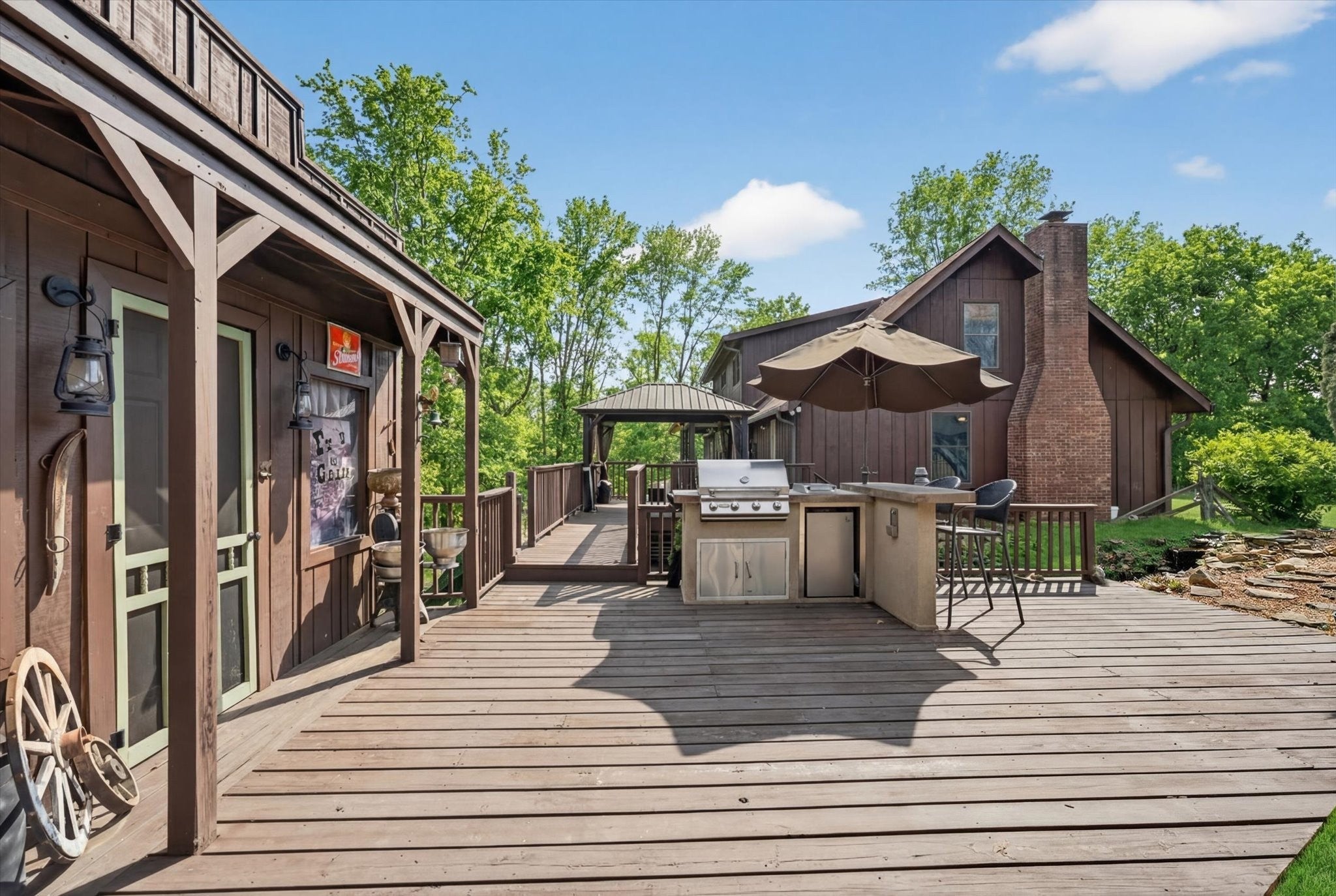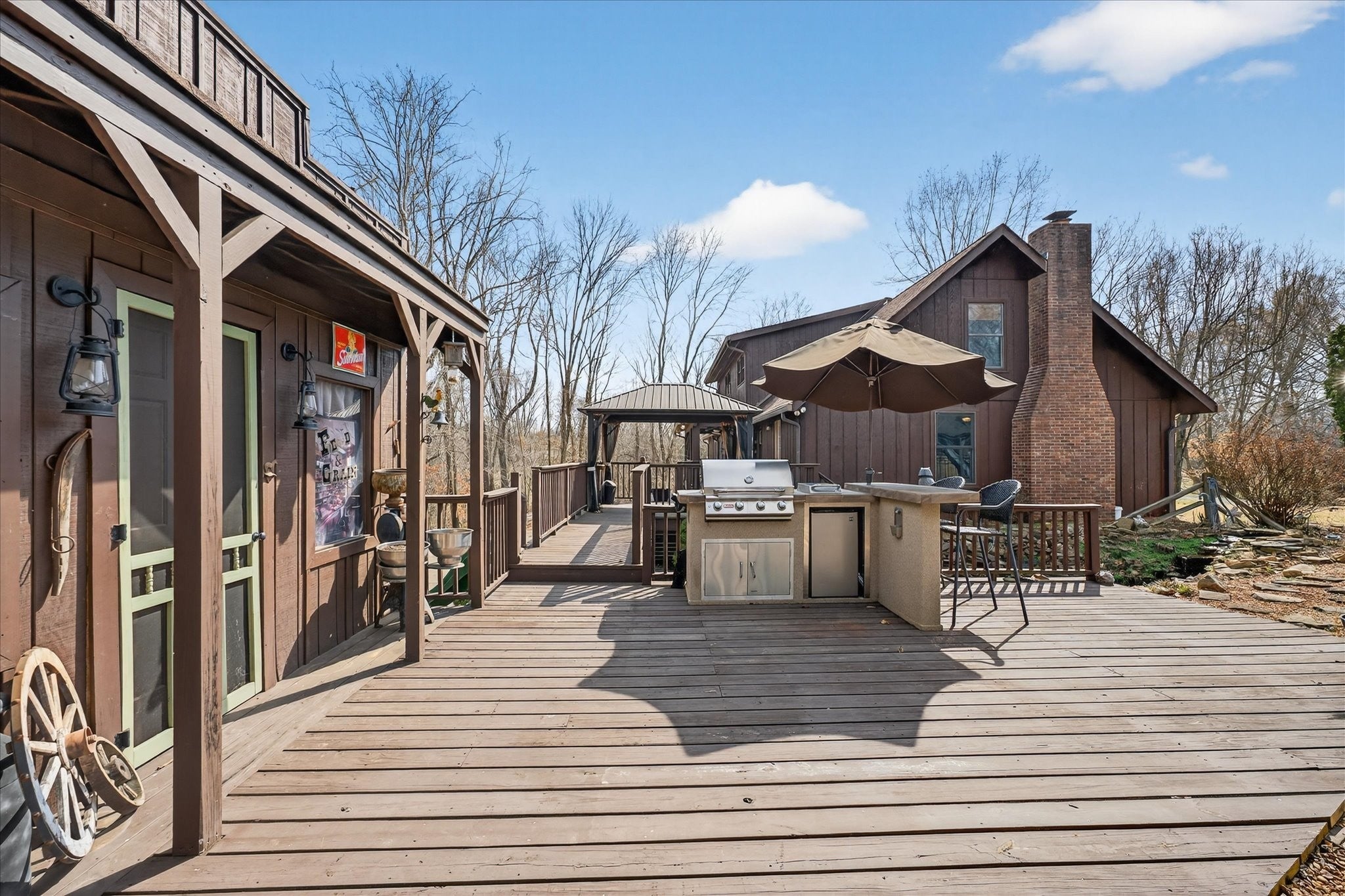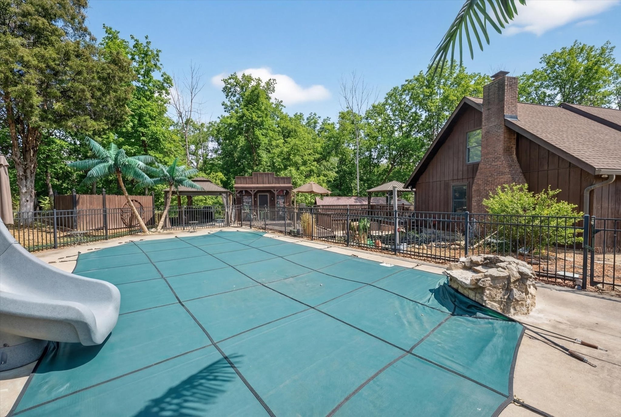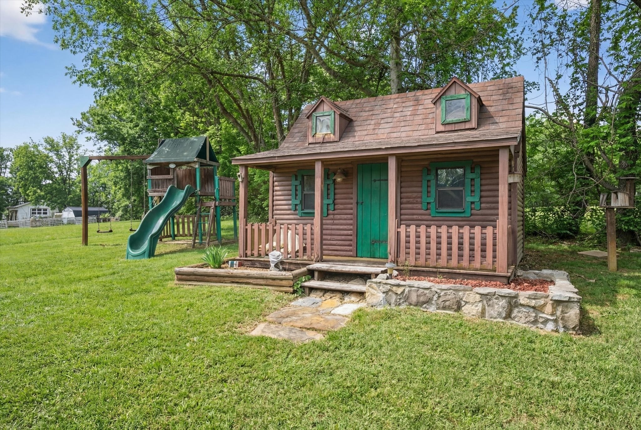 Only 2 miles from Exit 11 in the Sango area and located within the Rossview High School limit! Welcome to the 2.9 acres of tranquility, whether on the front porch and swing, in the heated inground pool or as you enter into your very rustic, 2 story extended log cabin! Open the door to an open-concept great room the 1st of 4 fireplaces and open concept dining area into kitchen with a large island boasting beautiful granite counter tops and stainless steel kitchen appliances and over-sink TV. 3 other fireplaces are located in spacious main floor 28X20 primary en-suite bedroom,in the the high celinged rec rm/2nd living rm (lg TV included) and an electric one in the finished partial basement. 3 additional bedrooms, full bathroom and a 15 X13multi-purpose loft area are located on the 2nd floor. 18X24(irregular shaped) finished partial basement/recreation/entertainment room with lots of storage, a “secret room”, exits to 2 separate 1 car garages, a 1/2 bath and walk-out to a sitting area! ***, Oversized(40x24), detached double-garage-door 2 car garage/workshop with a lean-two/covered parking space!*** Enjoy an outdoor relaxation or entertainment experience with the well-maintained HEATED in-ground pool with waterfall, outdoor kitchen/bar, 2 pergolas, pool house, covered front porch and covered rear wood deck, stocked koi pond, playhouse and play set. This property is located on 2.9 acres! Buyer or Buyer's agent to verify ANY information deemed important. such as square footage, property lines, acreage, school zones,etc. **SELLER WILL BEGIN REVIEWING OFFERS ON MONDAY, MARCH 16th. PLEASE GIVE 24 HR ACCEPTANCE DEADLINE***$1500 Earnest Money due to Momentum Title Clarksville, within 48 hours after an accepted offer