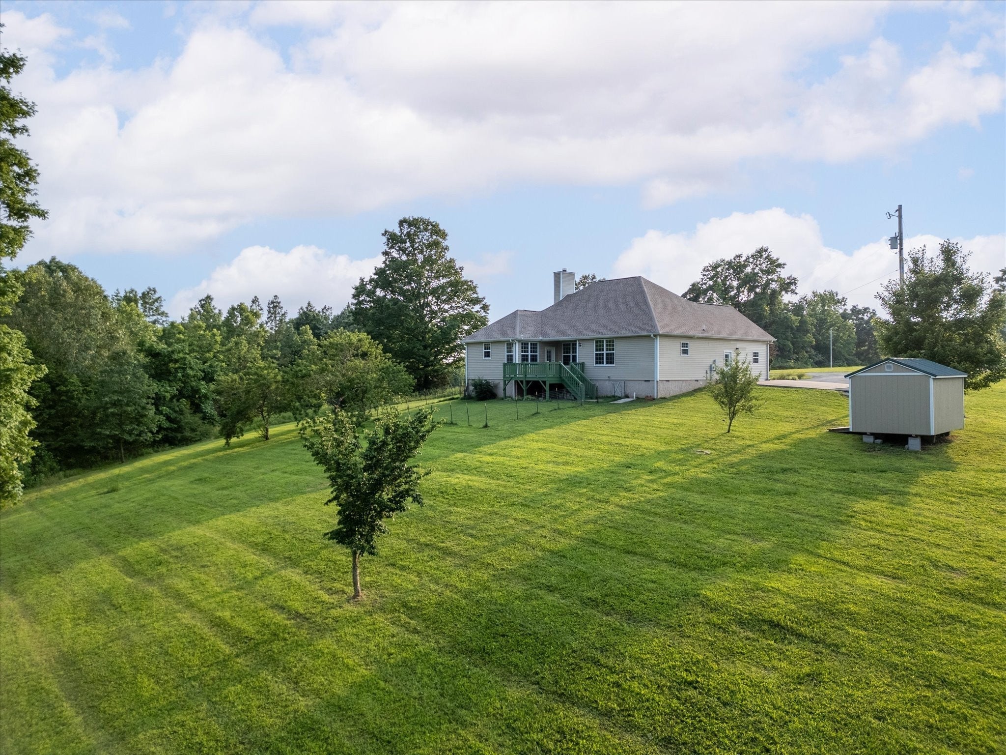 Escape from the traffic and busy city life on this private 5-Acre Retreat with Modern Upgrades & VA Assumption Option. Welcome to this beautifully maintained ranch home on 5.03 acres—peaceful, private, and only 15 minutes from downtown Clarksville. Enjoy NO HOA, NO city taxes, and no backyard neighbors. For those who qualify, a possible VA loan assumption at 4.375% offers added value. This open-concept home offers 3 bedrooms, 2 bathrooms, an office, AND a separate cozy library/reading room with custom-built wooden bookshelves. The gourmet eat-in kitchen features stainless steel appliances, while the spacious primary suite includes a generous bath and walk-in closet. Recent updates & features: New HVAC 2023 (inspected/serviced 2025), New built-in microwave (2025), Washer/dryer (2024) convey, 10x16 shed (2023) conveys. Step outside to the expansive back deck and watch deer and turkey roam the lush property, enhanced by a variety of newly planted fruit and flowering trees in 2023, plus mature hardwoods and pines for a serene, wooded backdrop. The front offers a large covered porch to relax and enjoy the views. Whether relaxing, entertaining, or simply enjoying the natural beauty, this property is the perfect blend of modern comfort and country tranquility.