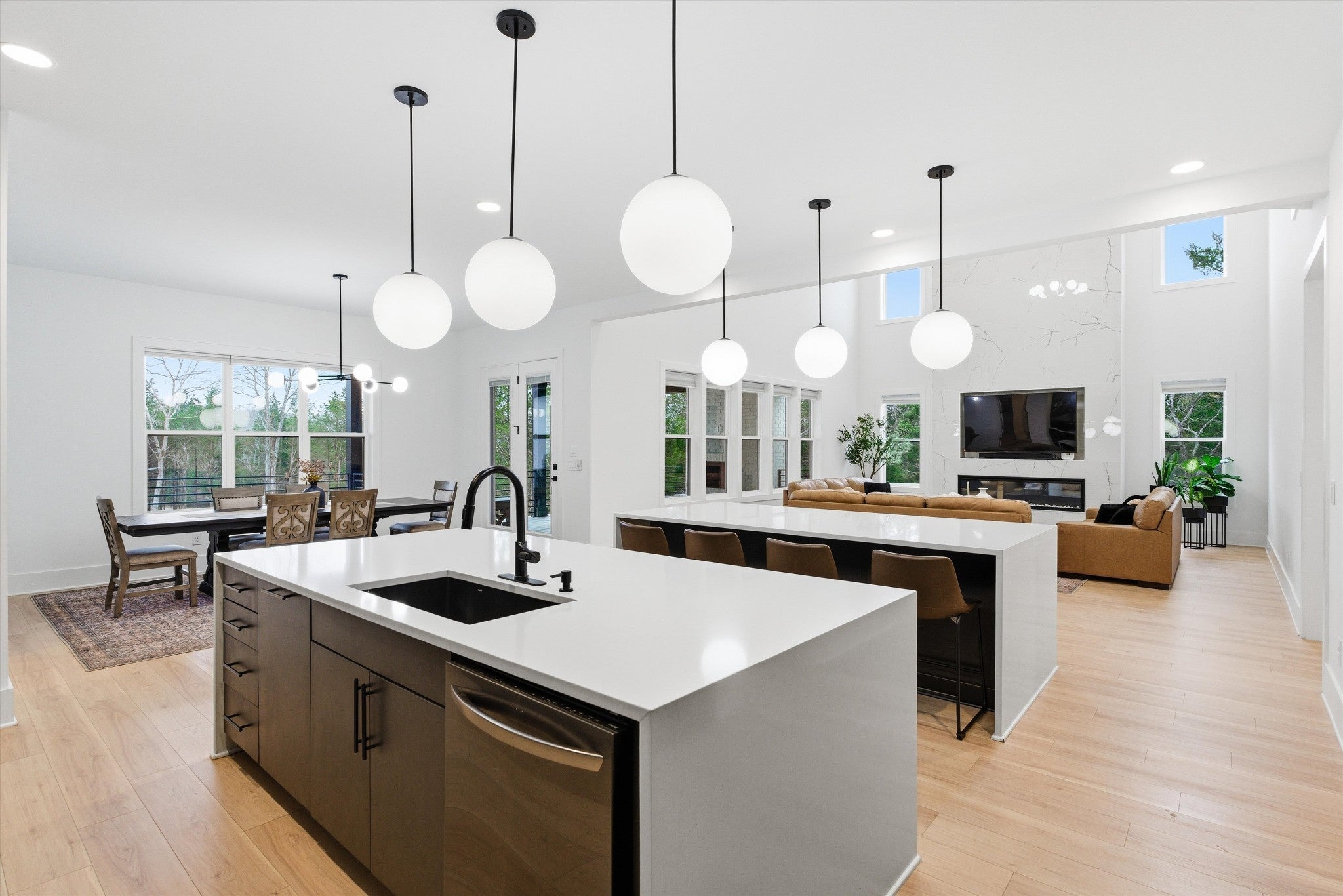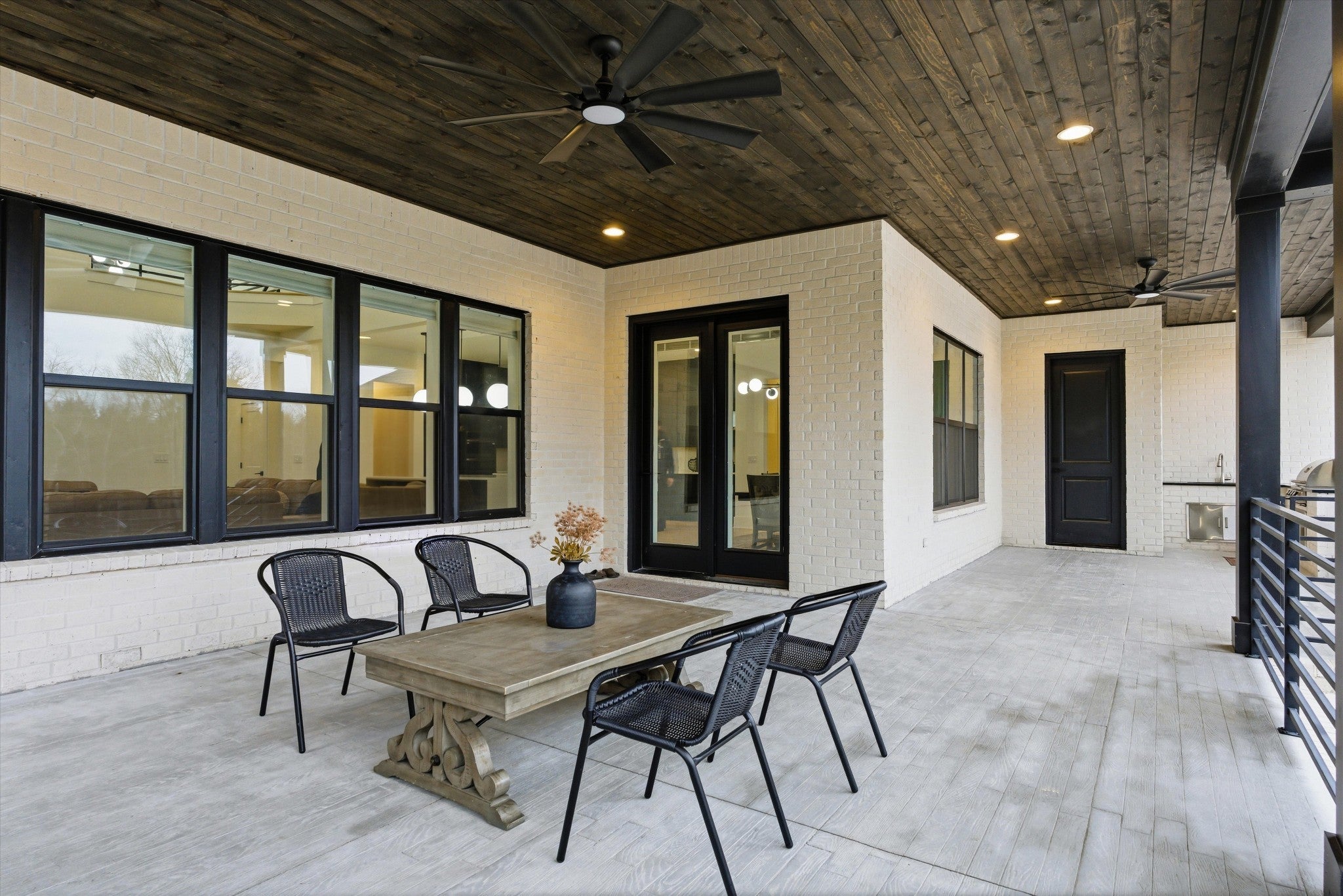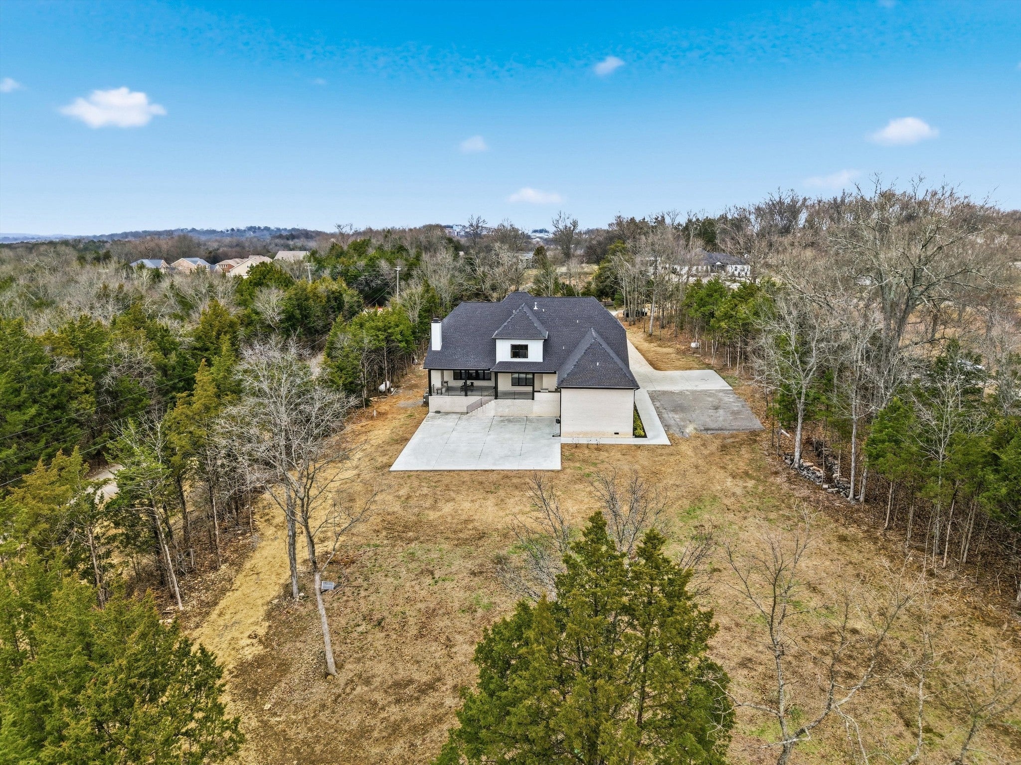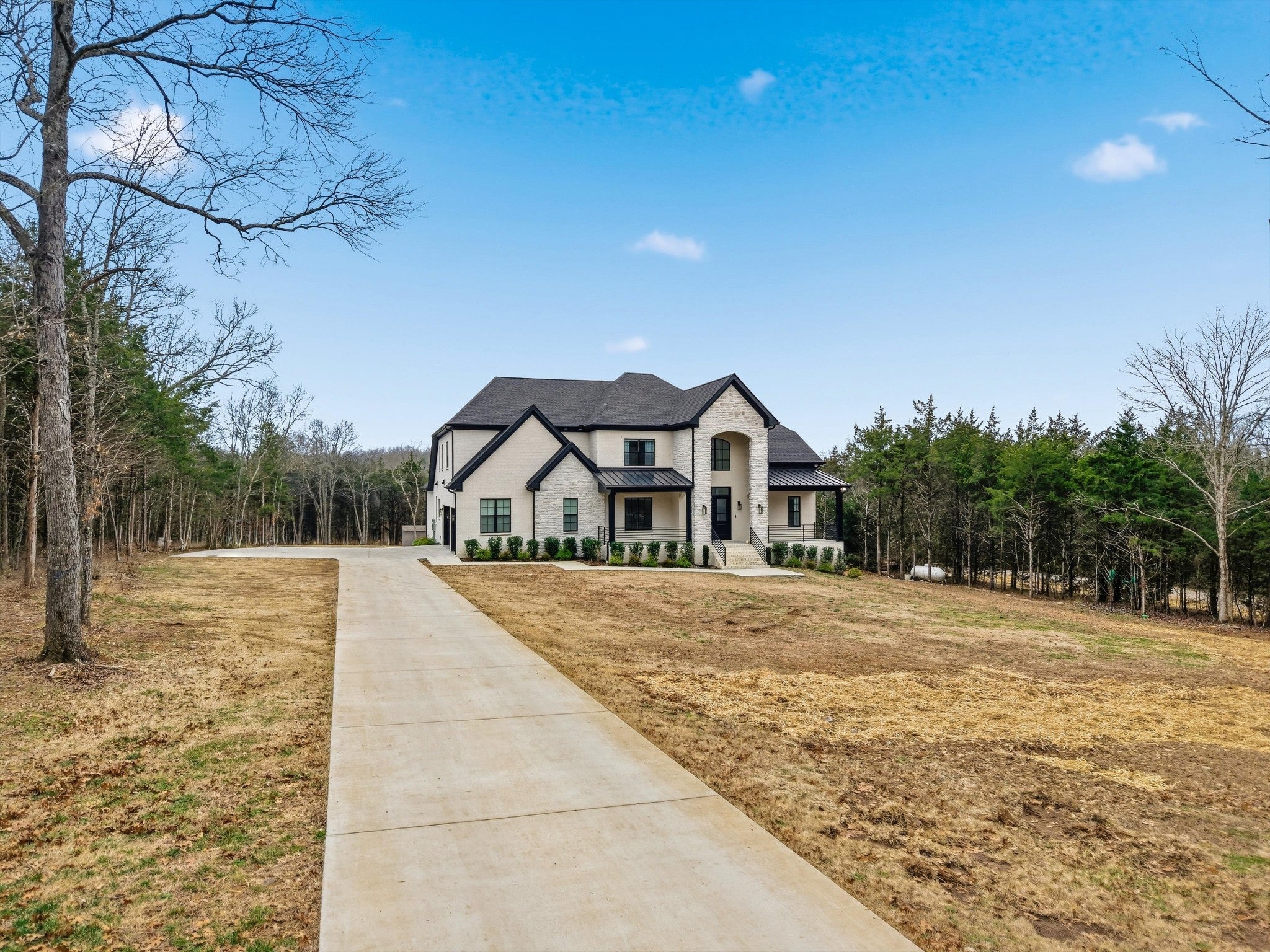Located at 2085 Kidd Rd, this custom all-brick residence, built in 2024, offers 5,459 sq ft of refined living space on 6.5 acres of level land, with a creek at the rear of the property, while remaining conveniently close to shopping, dining, and everyday amenities. The home features a three-car garage and exceptional attention to detail throughout. The main level showcases 10-foot ceilings and an open-concept design centered around a chef’s kitchen with double islands, quartz countertops, gas stoves, and two kitchens, ideal for elevated entertaining. All appliances convey, excluding washer and dryer. The primary suite on the main level is a private retreat featuring a stand-up shower, soaking tub, and his-and-her walk-in closets with custom built-ins and a spacious linen/storage closet. Additional main-level highlights include a powder bath, coat closet, and an elegant foyer with a wrought iron staircase. The home offers six bedrooms and six and a half bathrooms, including four full baths upstairs and a full outdoor bath with shower accessible from the patio. Outdoor living is enhanced by a covered patio with a built-in grill and sink, along with a dual wood-burning and gas fireplace. Additional features include a tankless water heater, 6-foot crawl space, and a storage building that conveys. This property offers a rare combination of modern luxury, expansive flat acreage, serene natural surroundings, and convenient proximity to shops and restaurants. 20x17 Back porch with fireplace, 16x12 Porch with Built in grill and sink for easy outdoor entertainment. NOT in FLOOD