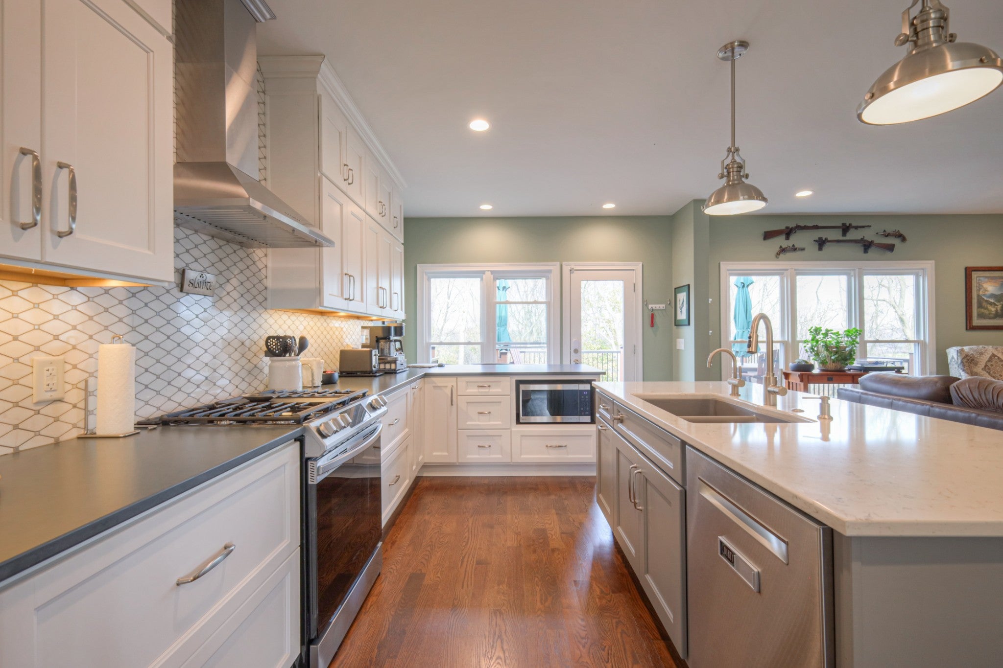- Gas Oven, Gas Range, Dishwasher, Disposal, Microwave, Stainless Steel Appliance(s)