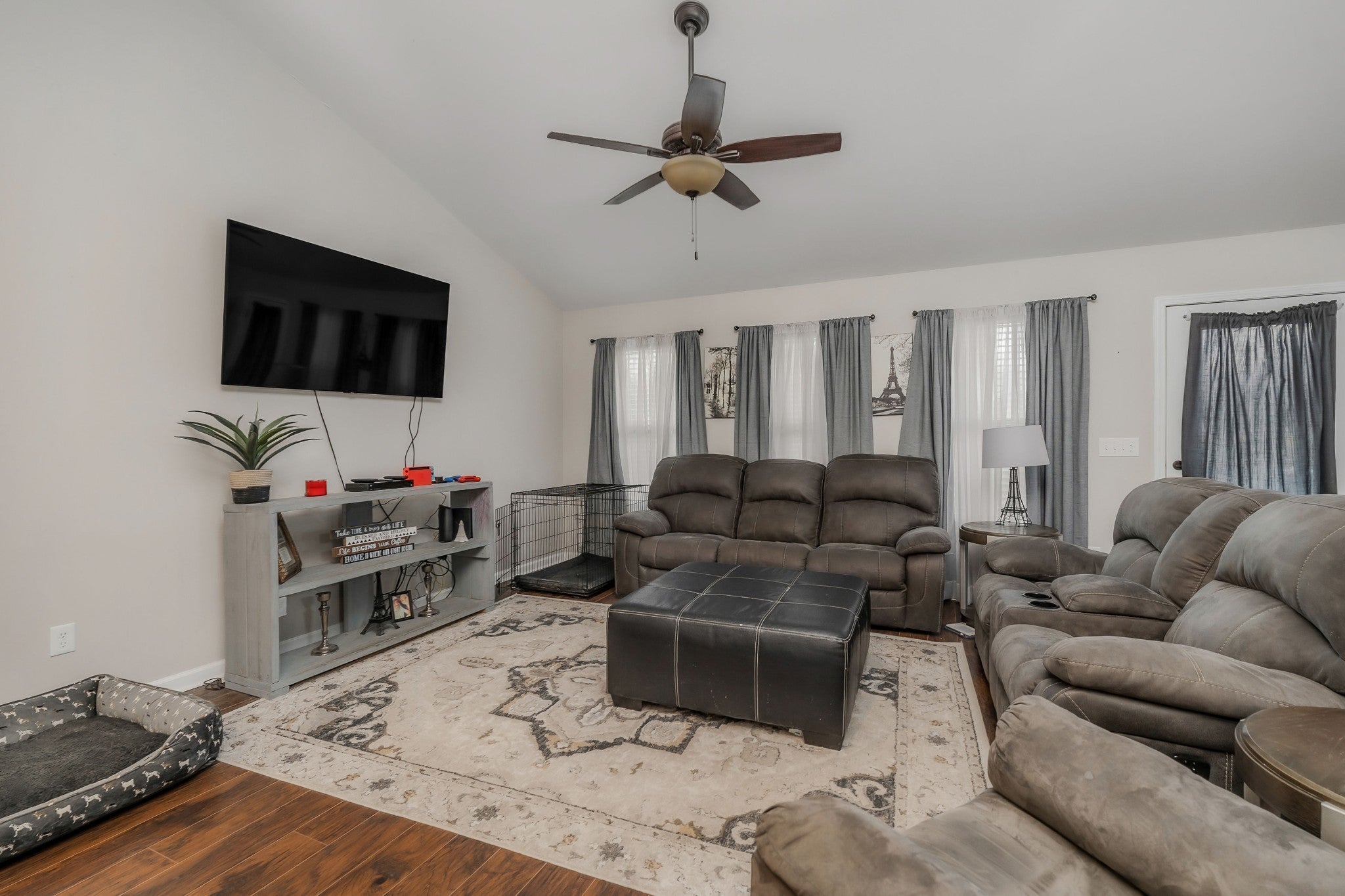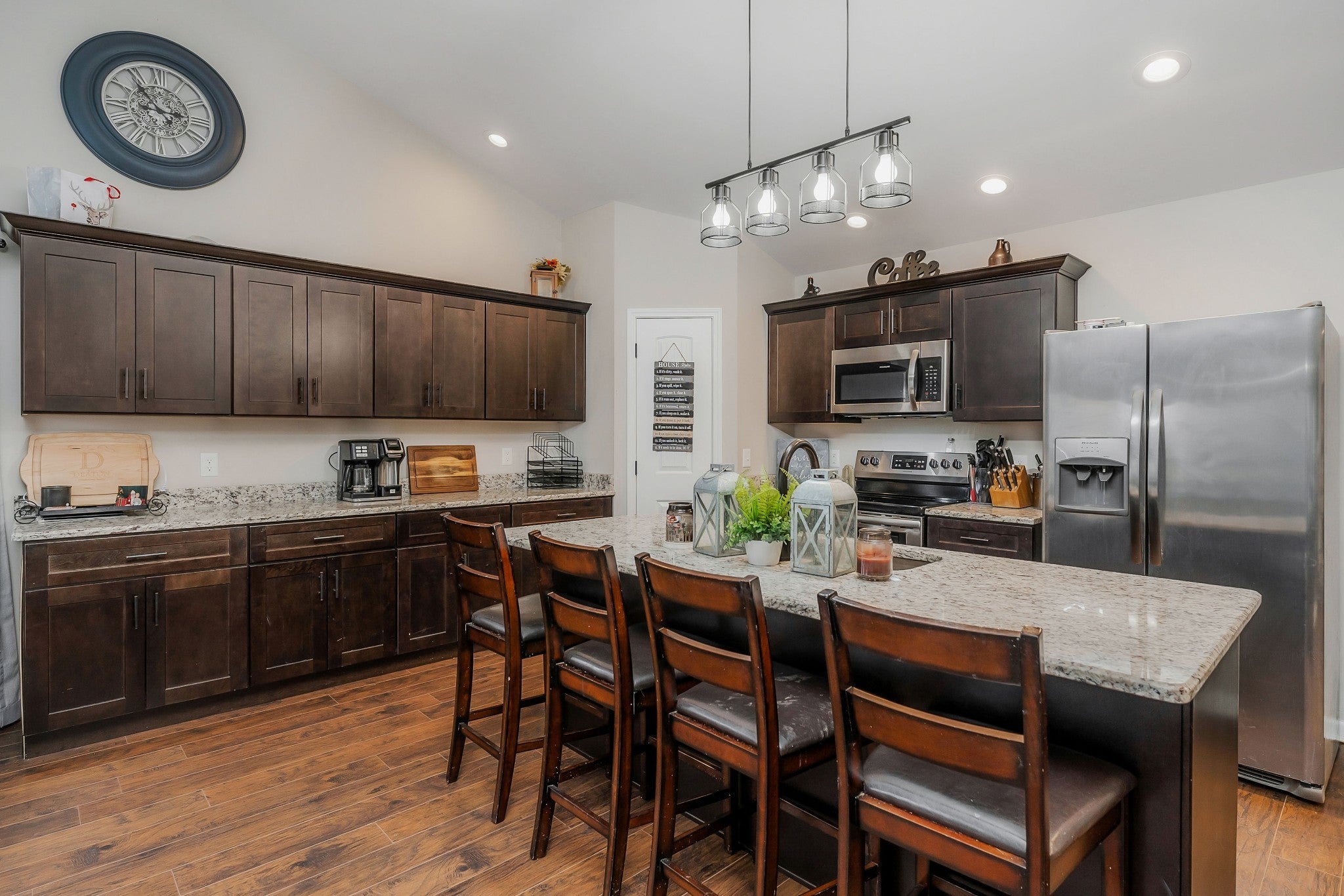 - Electric Range, Dishwasher, Microwave, Refrigerator