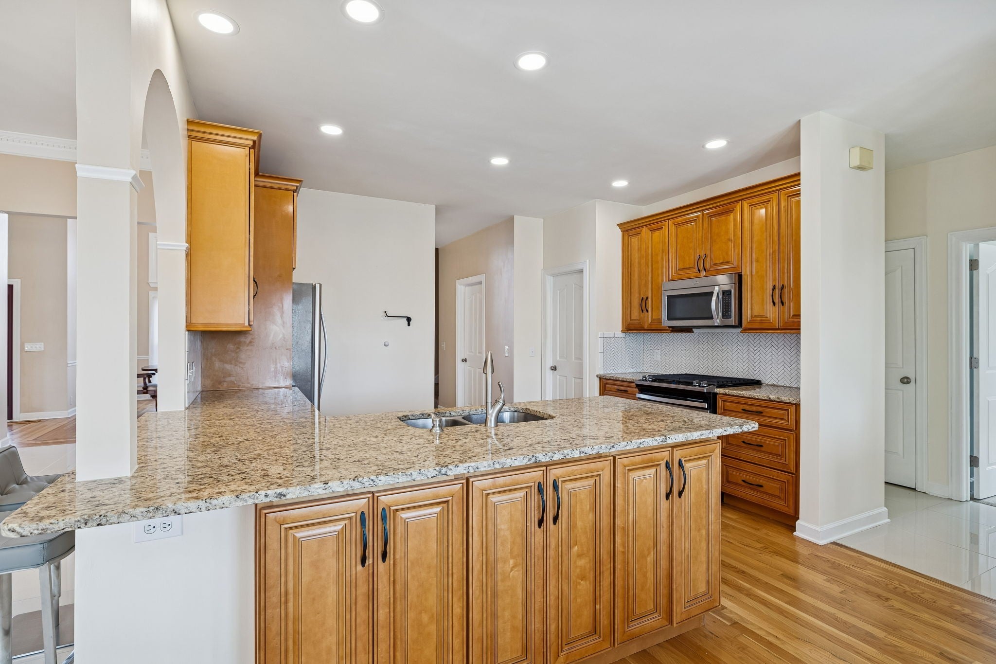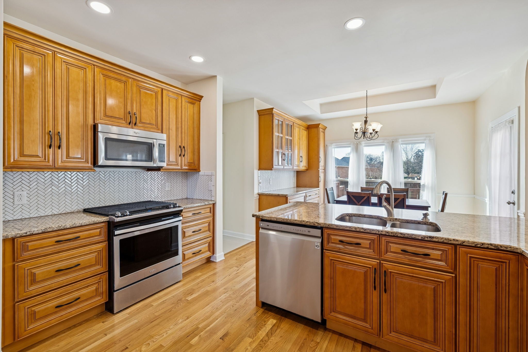 - Gas Oven, Gas Range, Dishwasher, Disposal, Microwave, Stainless Steel Appliance(s)