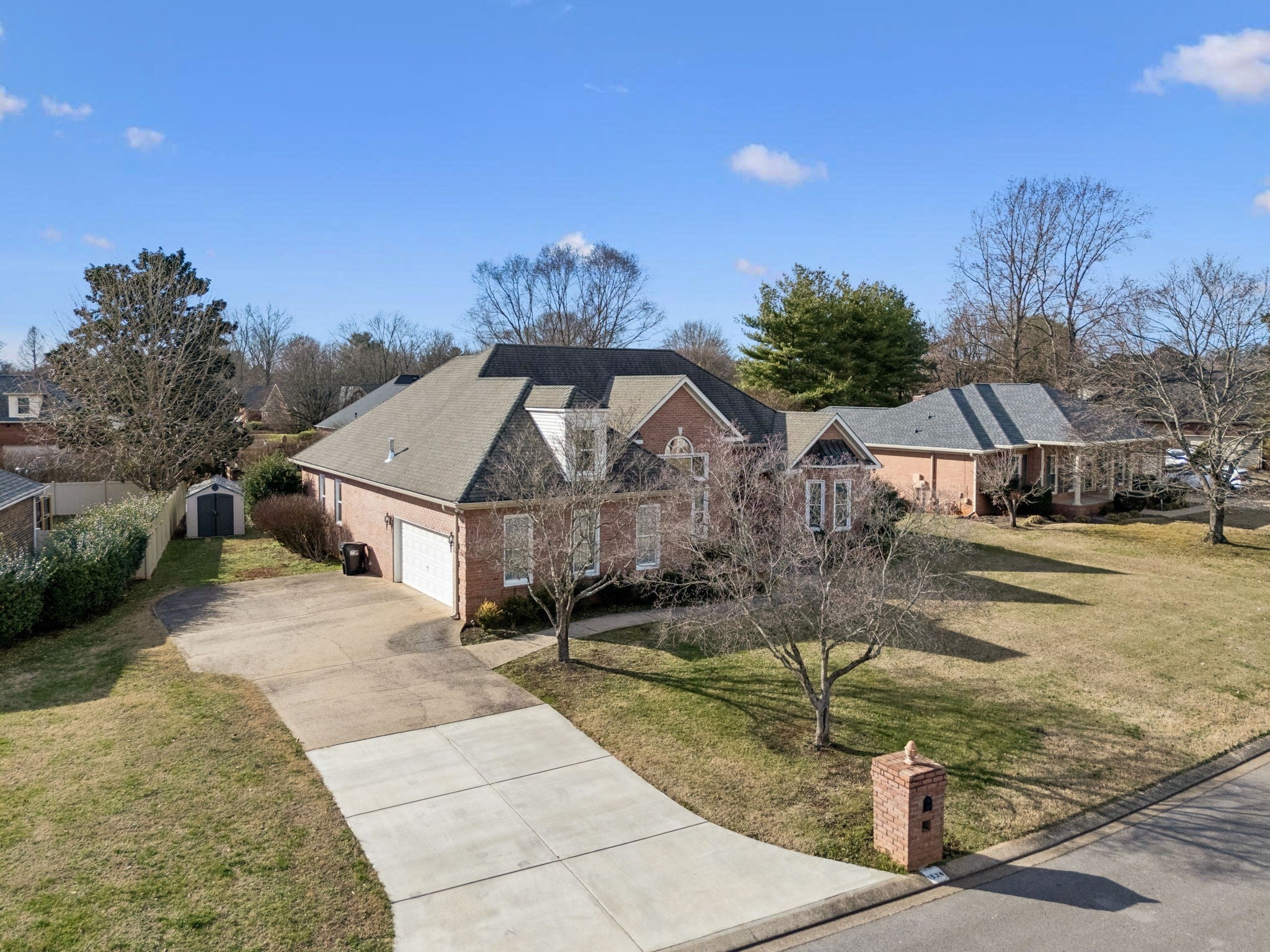 This beautiful brick home in Murfreesboro is ideally located directly across from Todd’s Lake, offering a peaceful neighborhood & easy access to Water Lilies Viewing. Enjoy a walkable lifestyle just minutes from Black Fox Elementary, shopping, dining, & everyday conveniences, w/ quick access to downtown Murfreesboro, Hwy 231, & I-24. This home has the added value of 328 sq ft of upstairs space, which isn’t included in the overall square footage! This well-maintained home features extensive 2023 upgrades, including new carpet & tile flooring, fresh interior paint, new bathroom vanities, a custom walk-in tile shower, triple-glazed windows, HVAC system, hot water heater, gas line & logs for the fireplace, a new front door, & a storage shed. Step inside the grand foyer w/ a frosted glass front door & elegant chandelier, leading into a bright living room w/ tall ceilings, crown molding, gleaming tile floors, & a cozy gas fireplace. The living area flows seamlessly into the formal dining room, perfect for entertaining. The spacious kitchen offers abundant cabinet & counter space, granite countertops, a herringbone tile backsplash, stainless steel appliances, breakfast bar seating, & a walk-in pantry. A sunny breakfast nook provides the perfect spot to start your day. The primary suite features a vaulted tray ceiling w/ custom trim & a spa-like ensuite bath w/ double vanities, walk-in tile shower, toilet closet, & two walk-in closets. Two more bedrooms & a full bath are located on the main level, along w/ a functional laundry room w/ utility sink, & added convenience of a large home office w/ atrium windows. Upstairs, a large bonus room w/ a vaulted ceiling offers endless possibilities for a media room, playroom, or hangout space – just needs finishing touches to add heating/cooling. Outside, enjoy the massive back deck, ideal for entertaining, grilling, or relaxing, plus a spacious backyard & storage shed. All of this w/ NO HOA! Schedule your private showing today!
