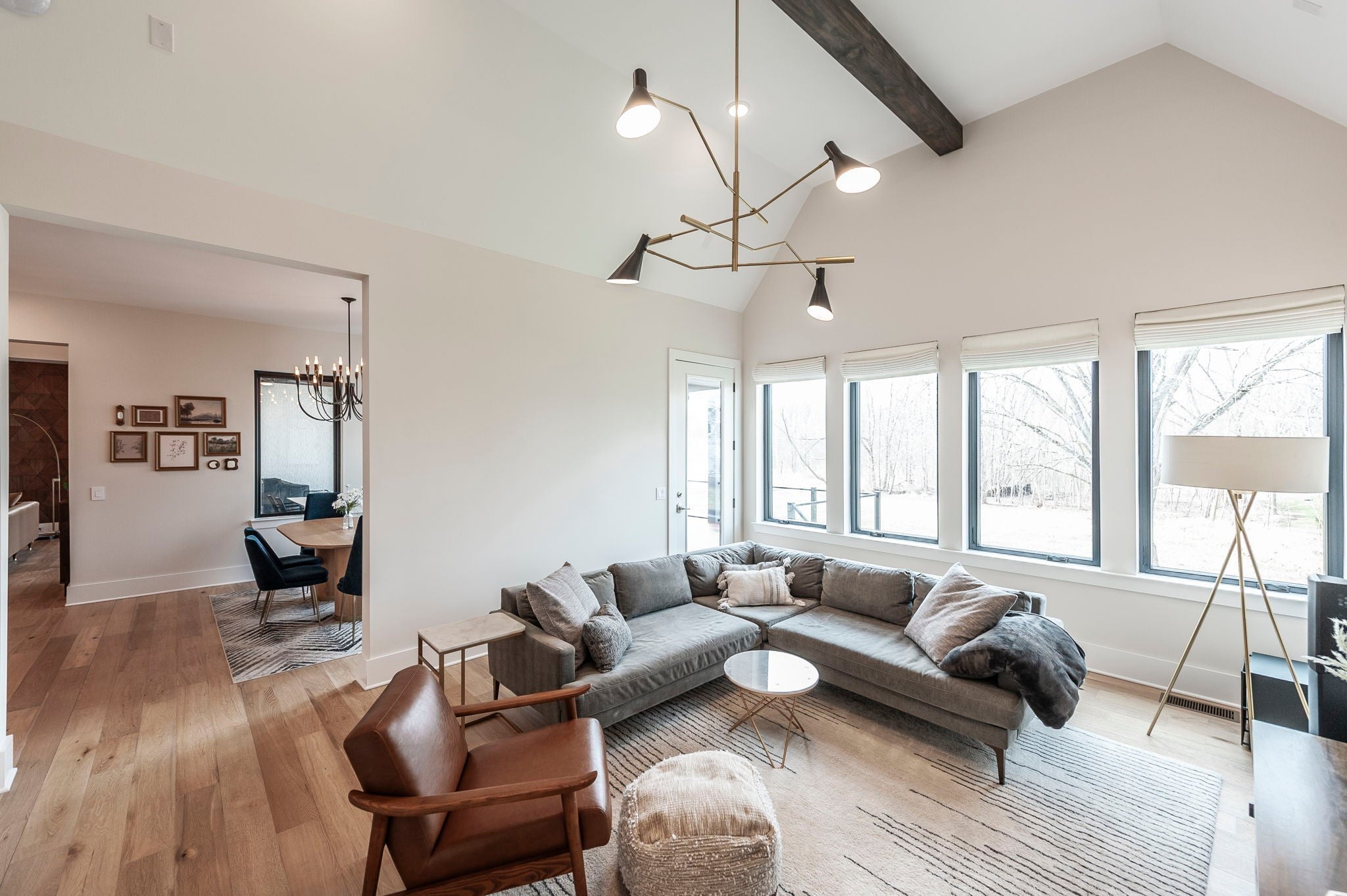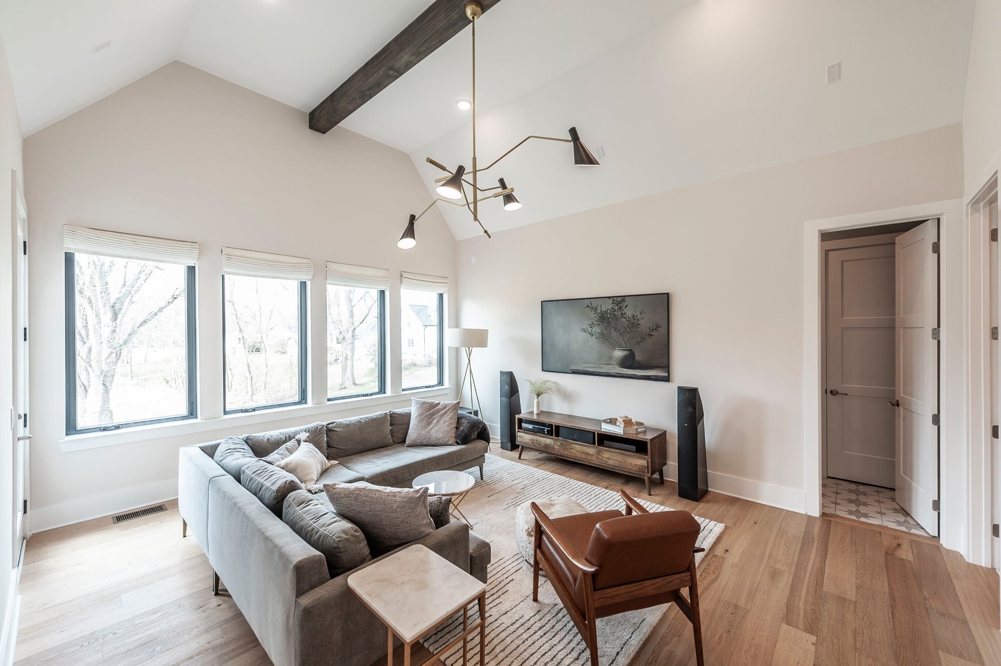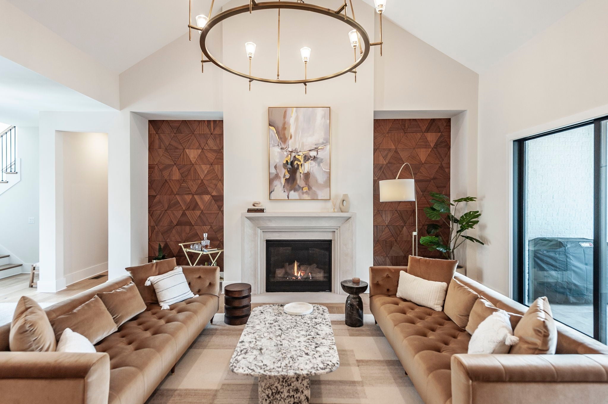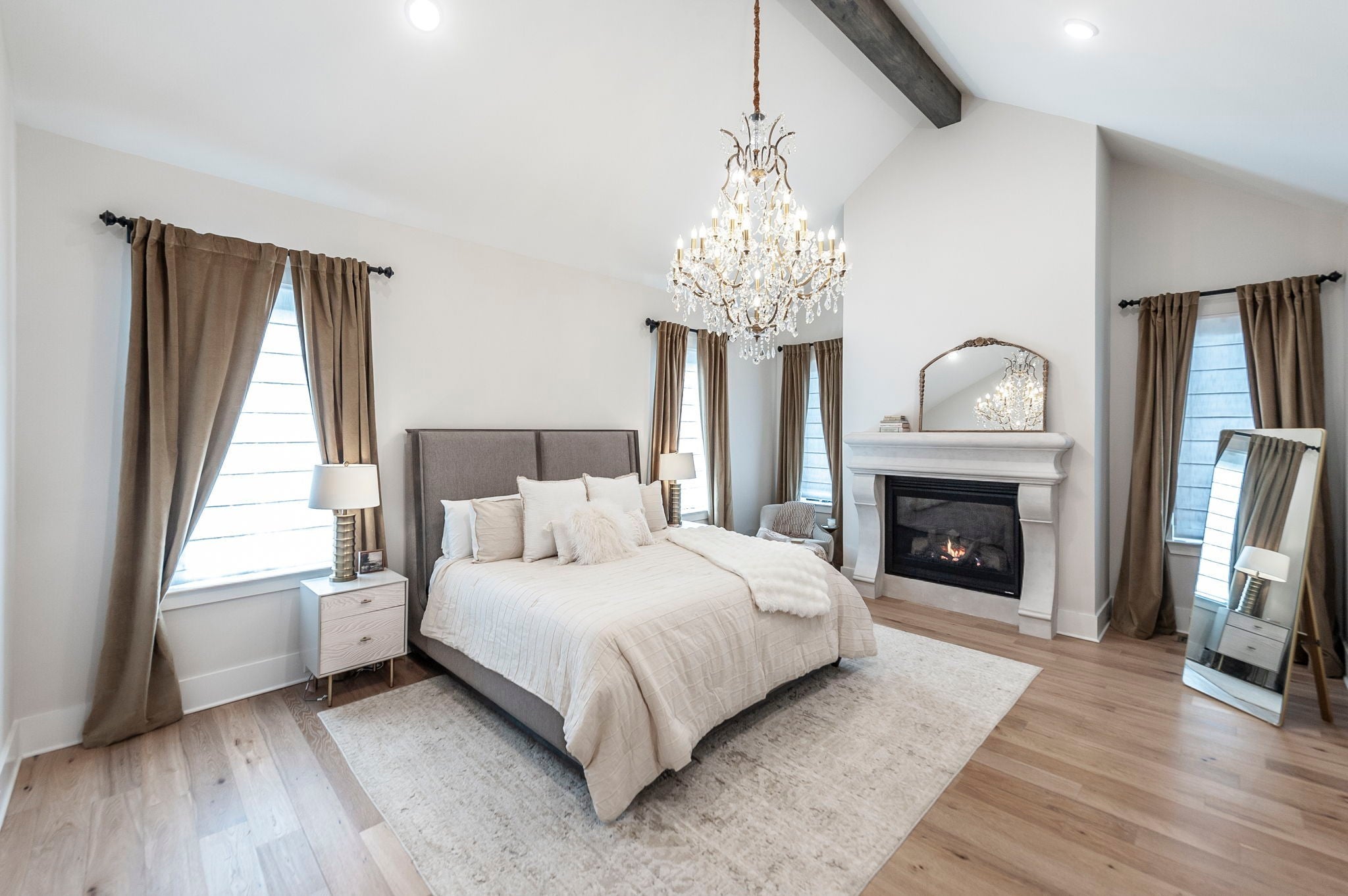 Experience the best of Brentwood luxury in this 2023 modern estate by Partners in Building. Nestled on over an acre that backs to the Crockett Park Greenway, this home offers a peaceful sanctuary immersed in nature with no HOA. Designed for elevated indoor–outdoor living, the home unfolds around an entertainer’s floor plan where kitchen, living, dining, and outdoor spaces flow seamlessly together. The chef’s kitchen anchors the home with a professional range, built-in refrigerator, and a hidden pantry—equally suited for intimate evenings or hosting at scale. Vaulted, beamed ceilings and curated designer lighting add warmth and architectural presence, while three fireplaces—located in the living room, primary suite, and deck—create layers of ambiance throughout. The main-floor primary suite is a private sanctuary, defined by soaring ceilings, a statement chandelier, and a spa-inspired bath with soaking tub and oversized shower. A main-level guest suite offers ideal accommodations for guests, family or multigenerational living. A richly appointed home office provides a quiet, sophisticated space for creativity and work. Each additional bedroom includes a private en-suite bath, and the flexible upstairs space easily adapts as a fifth bedroom, media room, or secondary office. Three-car garage supporting daily life and recreation. This home delivers a rare blend of privacy, natural connection, and refined living with unmatched convenience to I-65 and everything Brentwood has to offer.