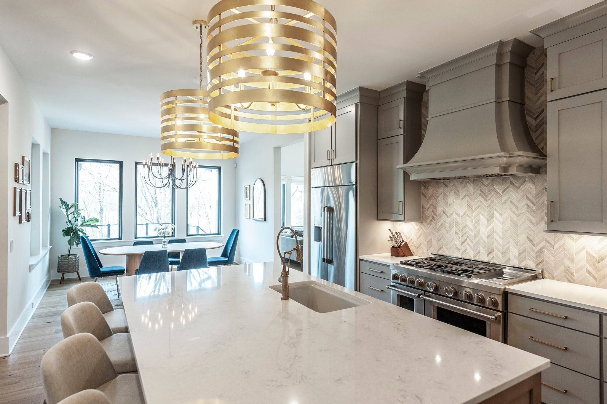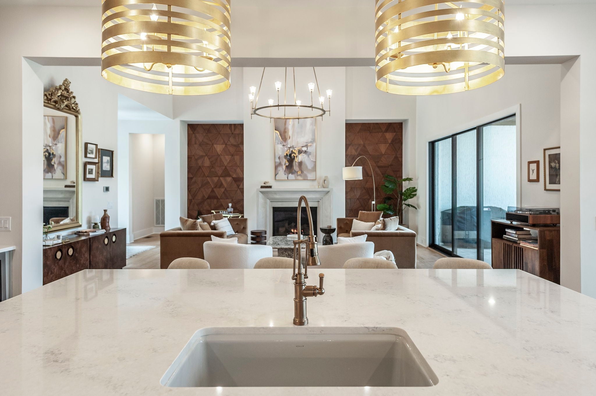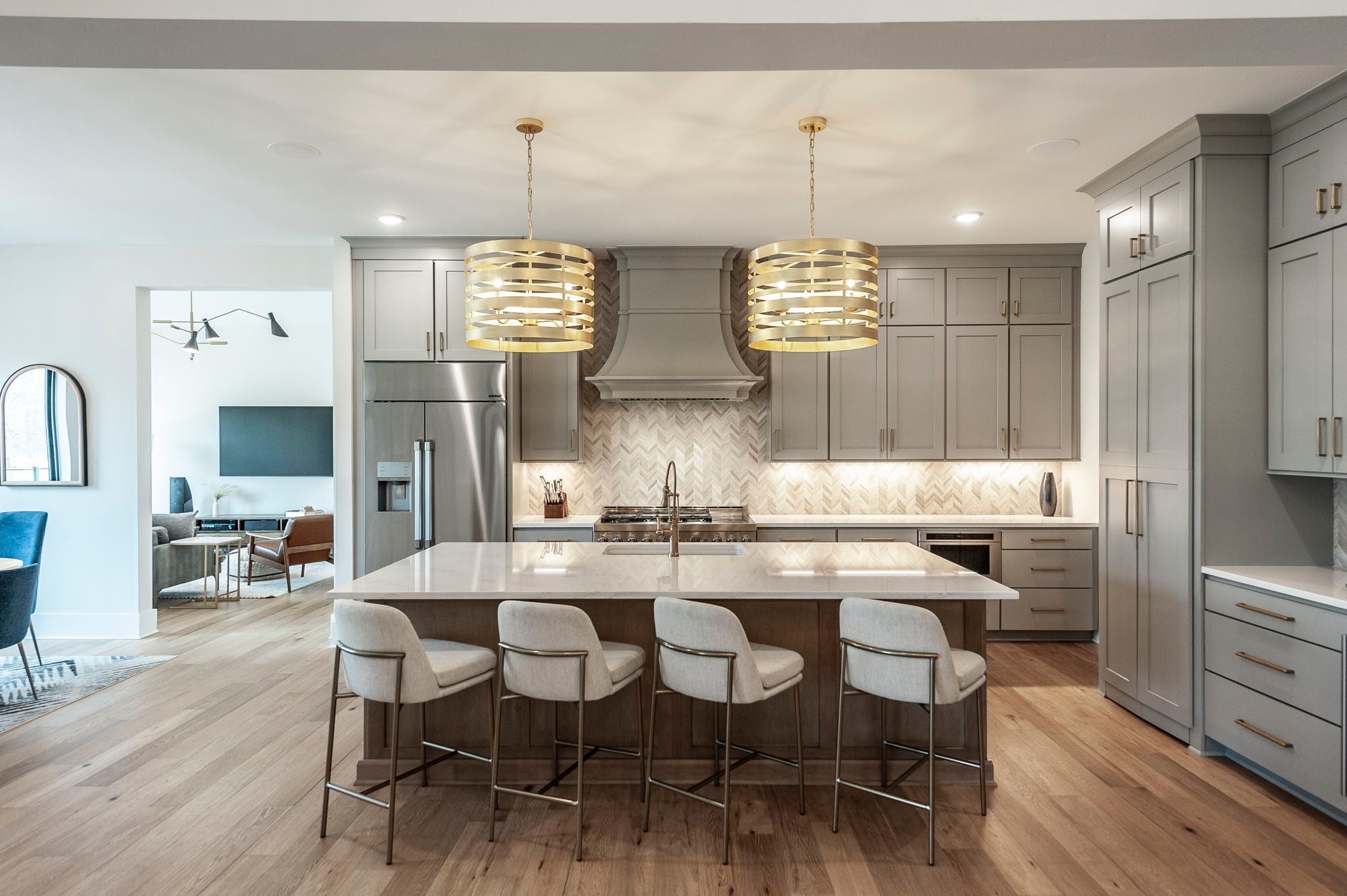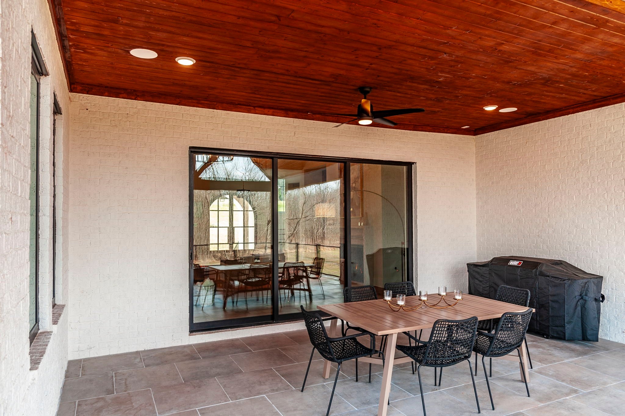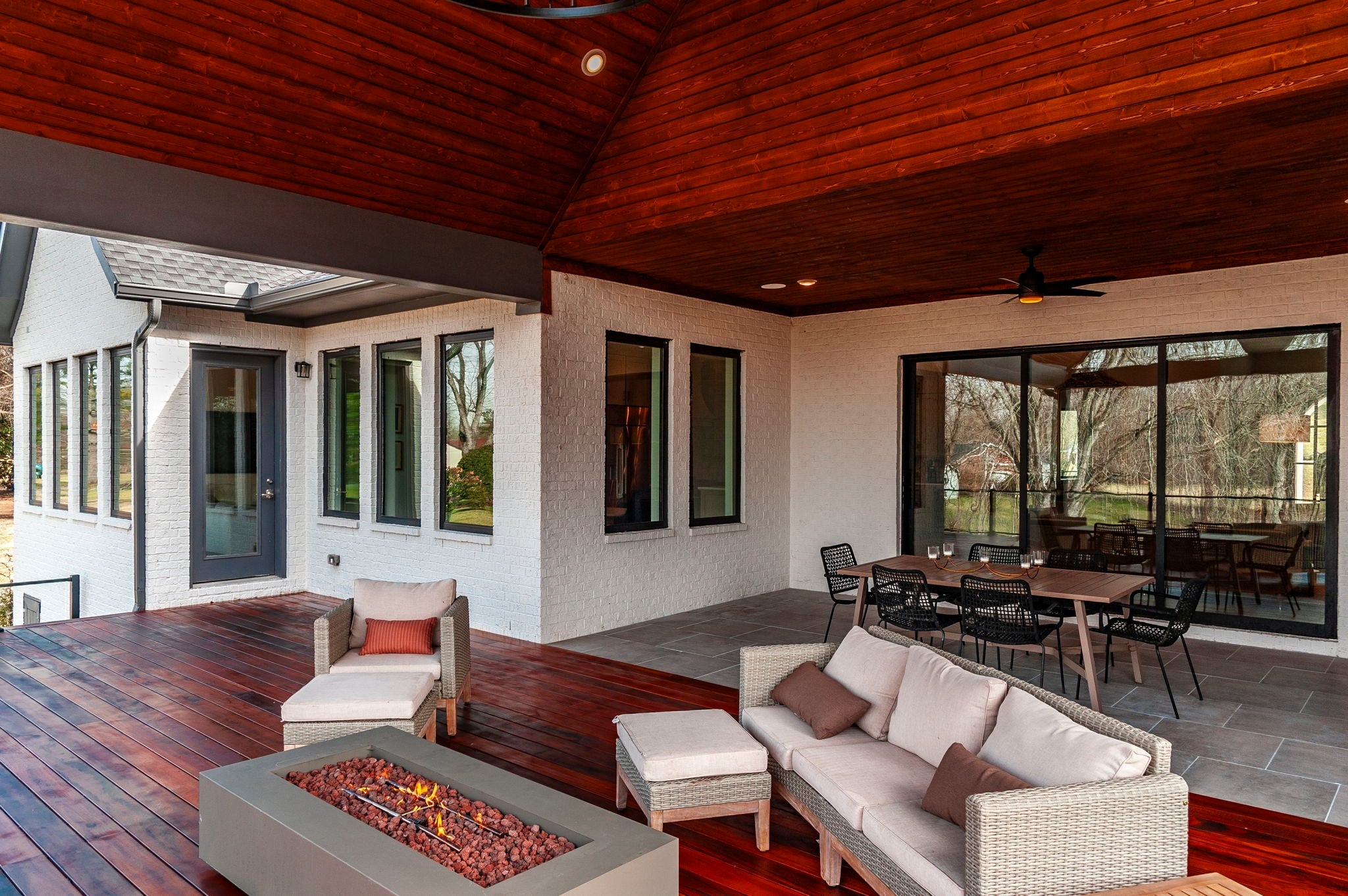 Experience the best of Brentwood luxury in this 2023 modern estate by Partners in Building. Nestled on over an acre that backs to the Crockett Park Greenway, this home offers a peaceful sanctuary immersed in nature with no HOA. Designed for elevated indoor–outdoor living, the home unfolds around an entertainer’s floor plan where kitchen, living, dining, and outdoor spaces flow seamlessly together. The chef’s kitchen anchors the home with a professional range, built-in refrigerator, and a hidden pantry—equally suited for intimate evenings or hosting at scale. Vaulted, beamed ceilings and curated designer lighting add warmth and architectural presence, while three fireplaces—located in the living room, primary suite, and deck—create layers of ambiance throughout. The main-floor primary suite is a private sanctuary, defined by soaring ceilings, a statement chandelier, and a spa-inspired bath with soaking tub and oversized shower. A main-level guest suite offers ideal accommodations for guests, family or multigenerational living. A richly appointed home office provides a quiet, sophisticated space for creativity and work. Each additional bedroom includes a private en-suite bath, and the flexible upstairs space easily adapts as a fifth bedroom, media room, or secondary office. Three-car garage supporting daily life and recreation. This home delivers a rare blend of privacy, natural connection, and refined living with unmatched convenience to I-65 and everything Brentwood has to offer.