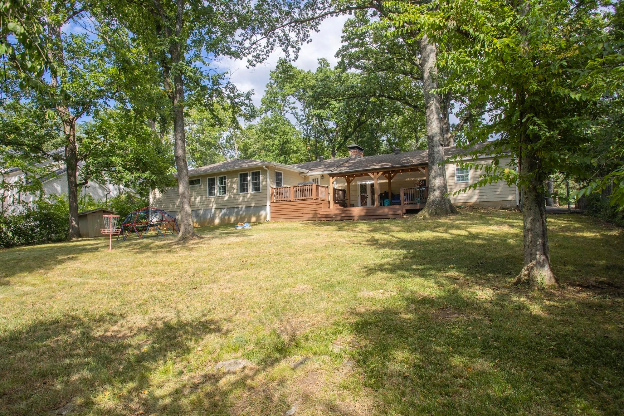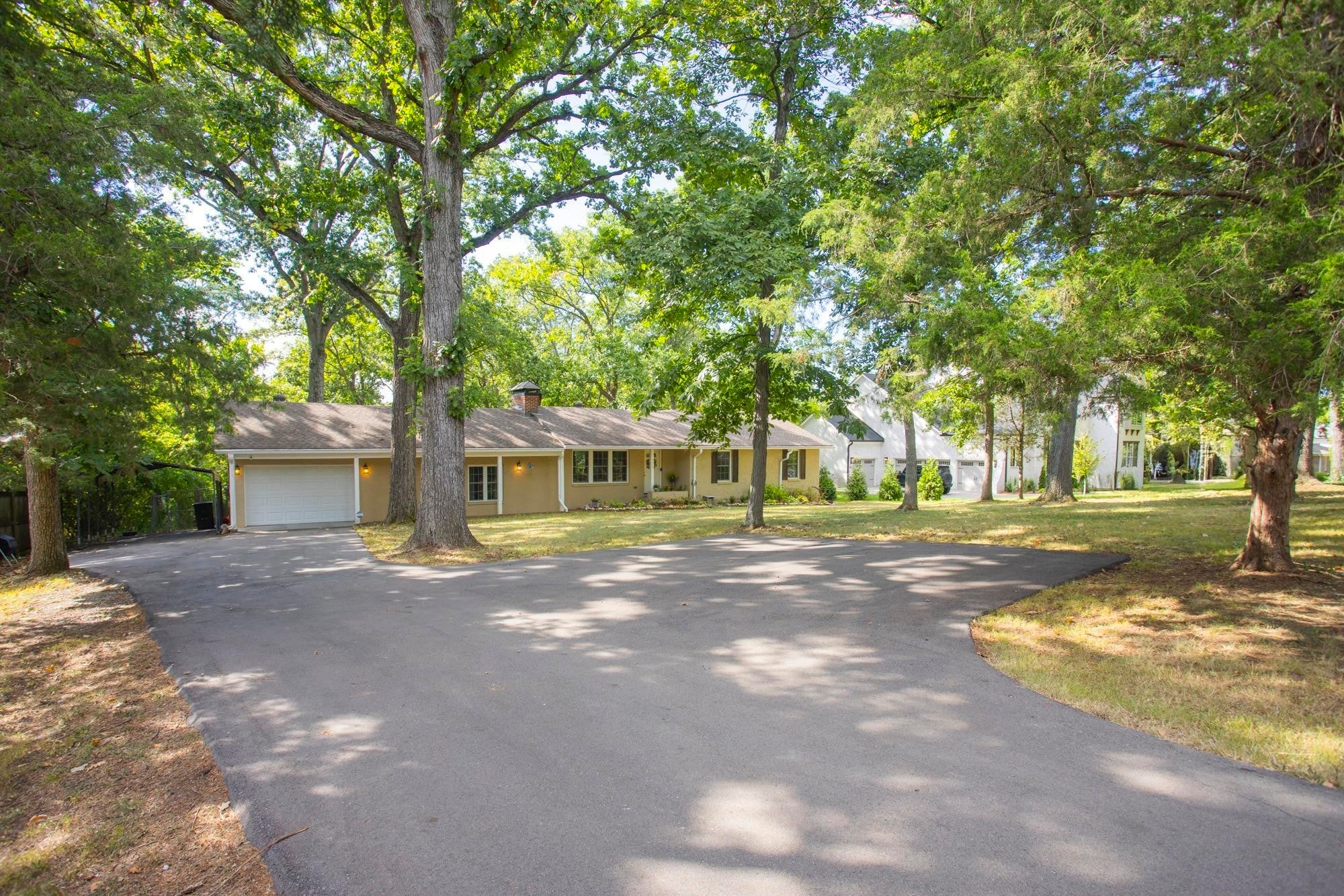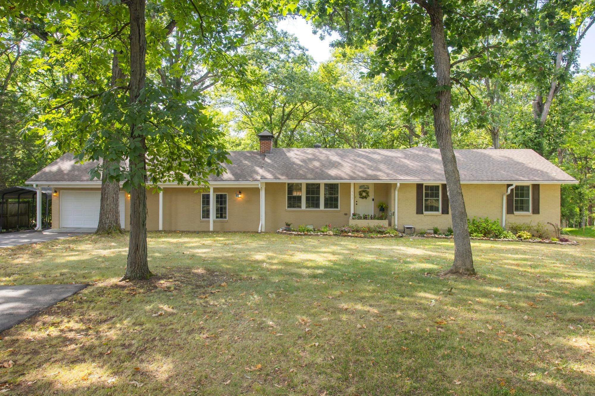 Beautiful one-level ranch home located in the highly desired Brook Meade in West Nashville! This well-maintained 3 bedroom, 2 bath home sits on a picturesque 1-acre wooded lot, offering the perfect blend of privacy and convenience just minutes from shopping, dining, and all that Nashville has to offer. Inside, you’ll find an open living, kitchen, and dining layout filled with natural light and featuring hardwood floors throughout. The spacious kitchen flows seamlessly into the main living area—ideal for both everyday living and entertaining. A separate den has wood burning fireplace, and provides flexible space perfect for a home office, playroom, or media room. The primary suite is a true retreat with two separate walk-in closets and a luxurious en-suite bath complete with double vanities, a garden tub, and a separate standing shower. Two additional bedrooms and a full bath offer comfortable accommodations for family or guests. A dedicated laundry room adds everyday convenience. Step outside to a huge covered deck overlooking the private, fenced-in backyard—perfect for relaxing or hosting gatherings while enjoying the peaceful, wooded setting. Crawlspace was encapsulated and driveway was redone last year! An attached one-car garage completes this move-in-ready home. Don’t miss this rare opportunity to own a private acre in one of West Nashville’s most sought-after neighborhoods!