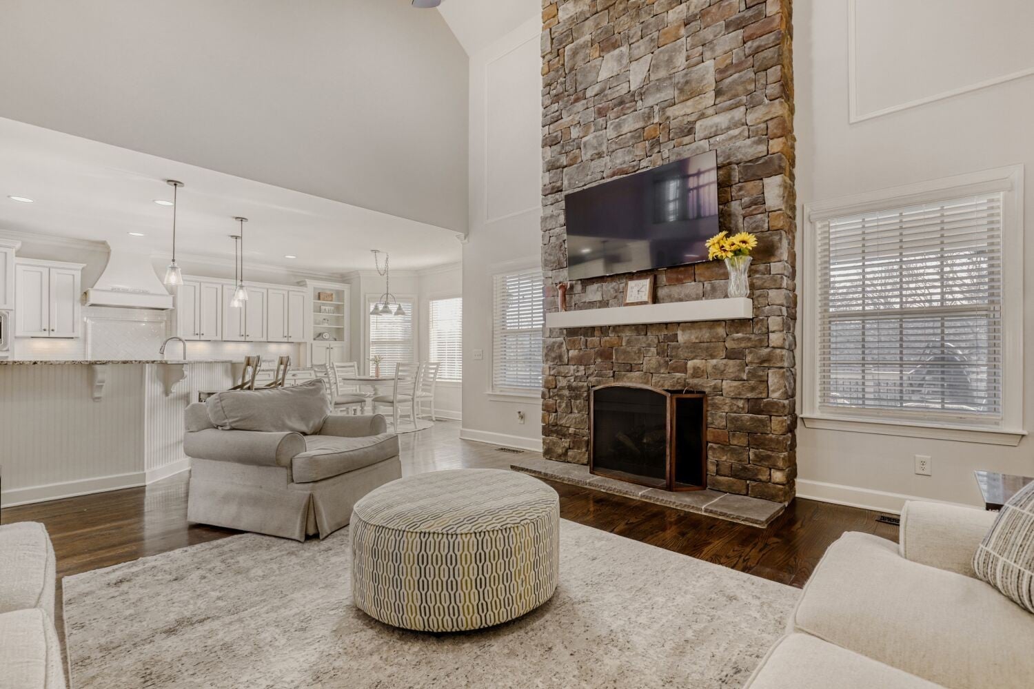 Unbeatable location and serenity in Franklin. If you have been searching for a home that does not back up to neighbors and offers space to entertain, this one delivers. Enjoy the inviting front porch and an enlarged back deck overlooking a very large, fully fenced backyard, with privacy trees and peaceful farmland views. Perfect for multiple drivers or car enthusiasts, the home features a 3-car garage, a spacious driveway, and a basketball hoop. Inside, you will find a downstairs primary suite, a home office with new built-in storage, a formal dining room, and an eat-in kitchen. The huge bonus room with new French doors and a flexible 5th bedroom offers ideal space for a media room, office, or guests. Walk to the neighborhood pool, Page Middle, and Page High School. Open House Sunday, Feb 22nd, 2 to 4 pm.