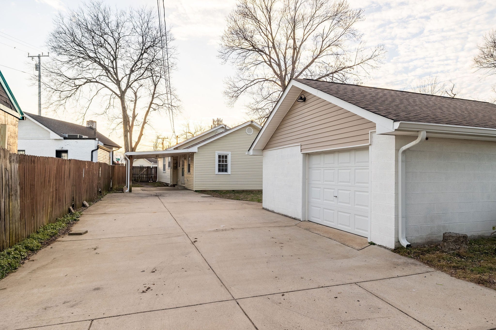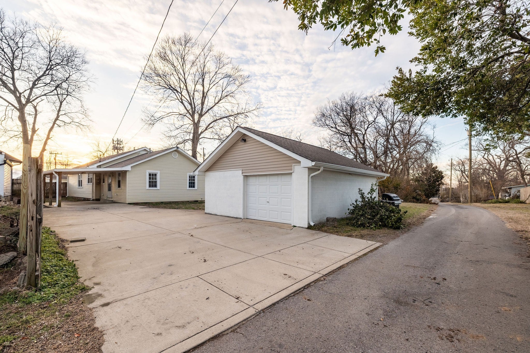 - Detached, Alley Access, Concrete, Driveway, Parking Pad, Paved