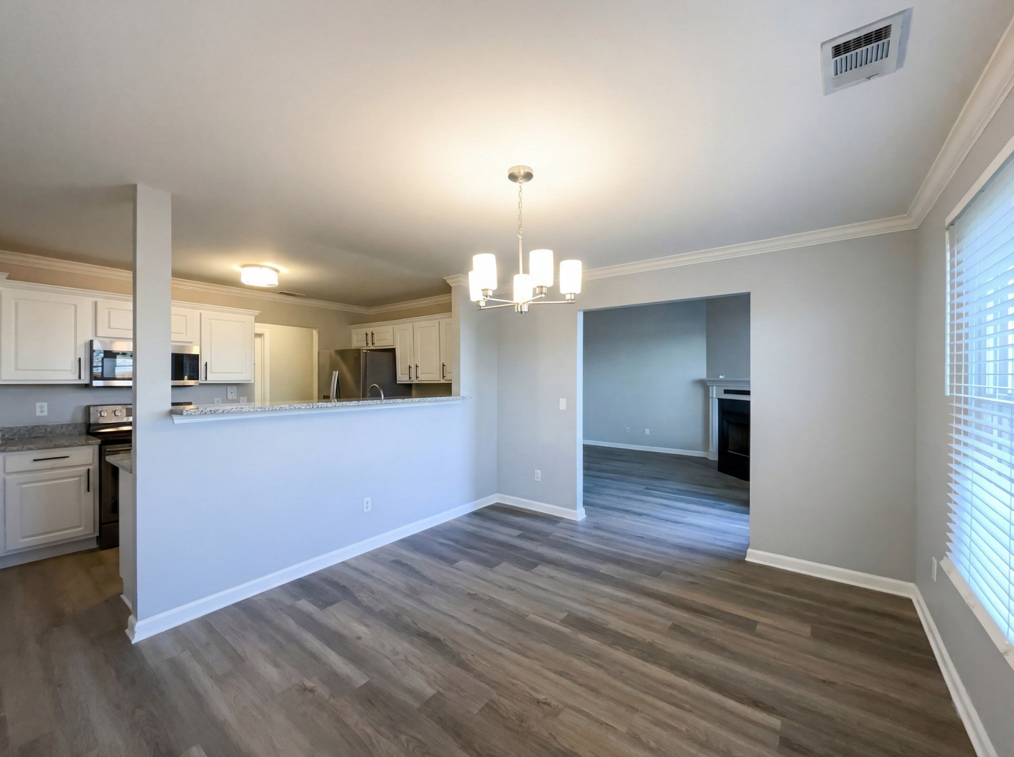 - Electric Range, Dishwasher, Microwave, Refrigerator