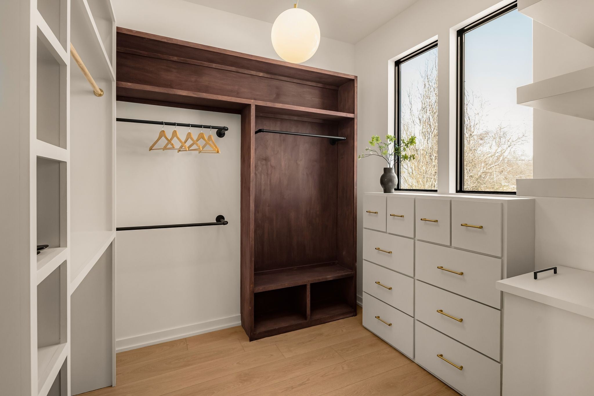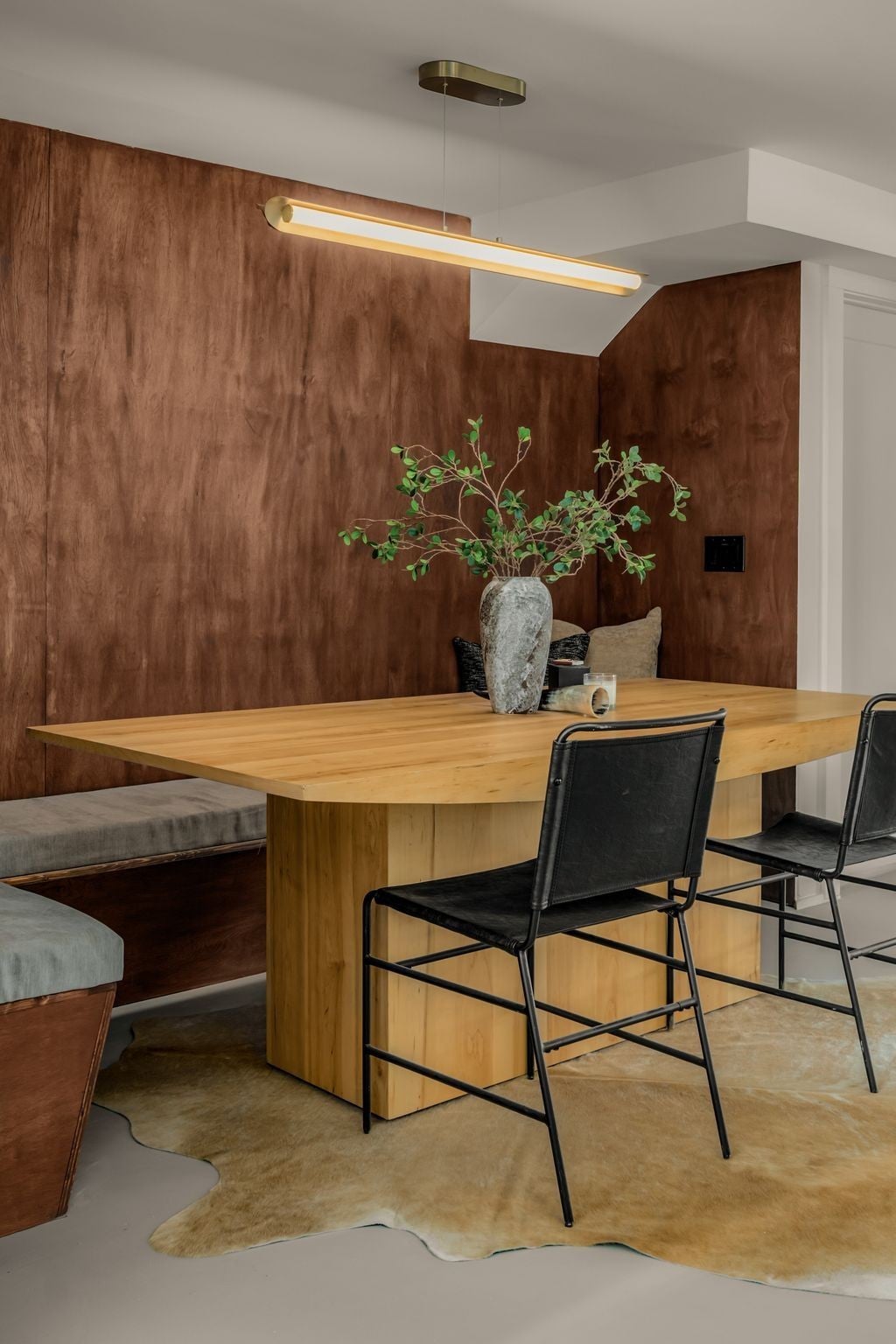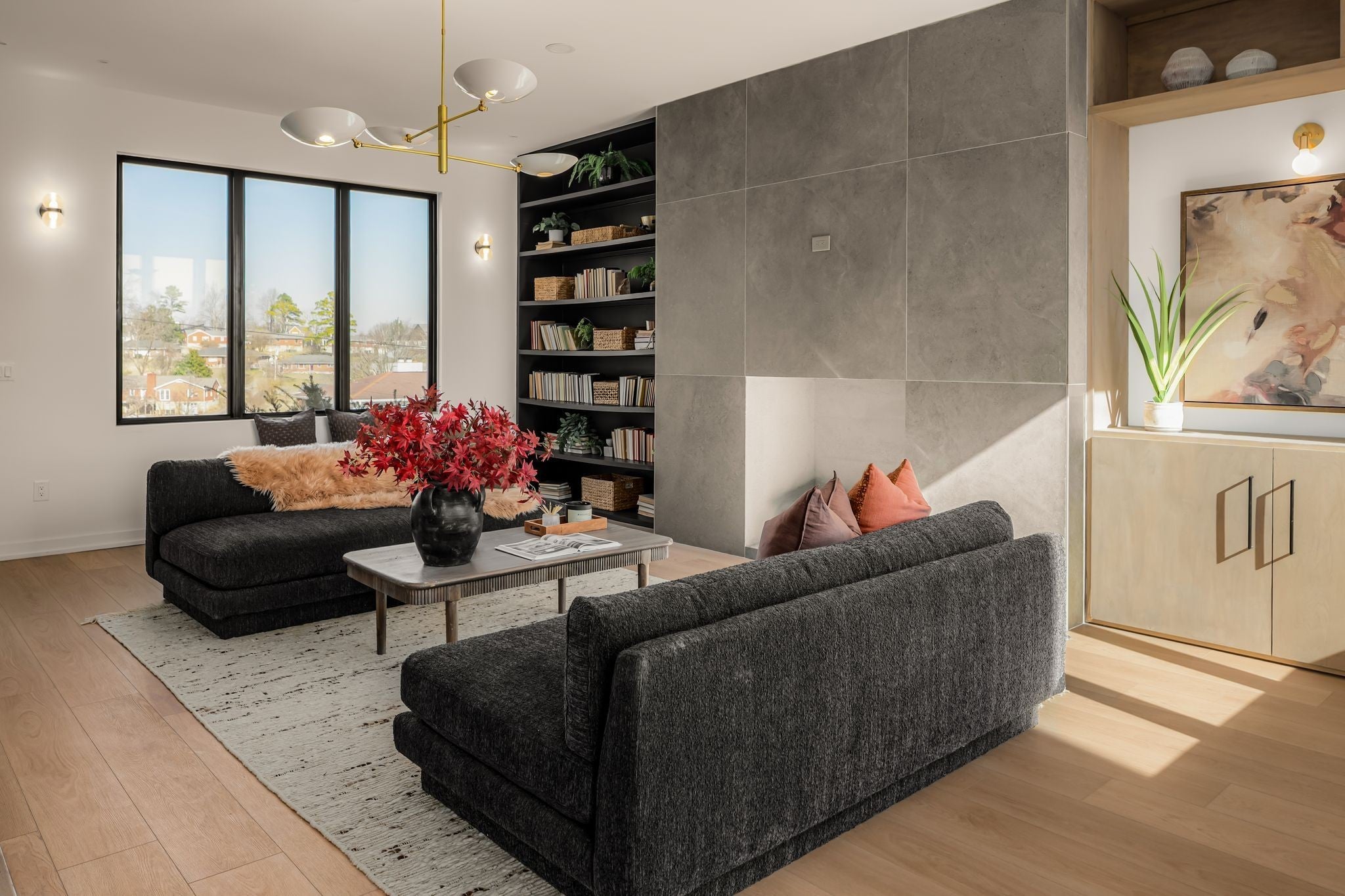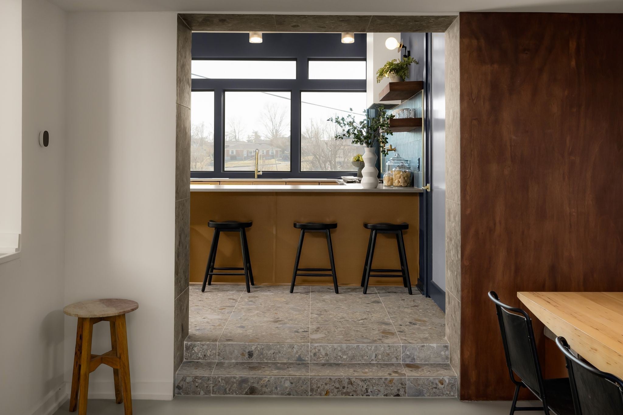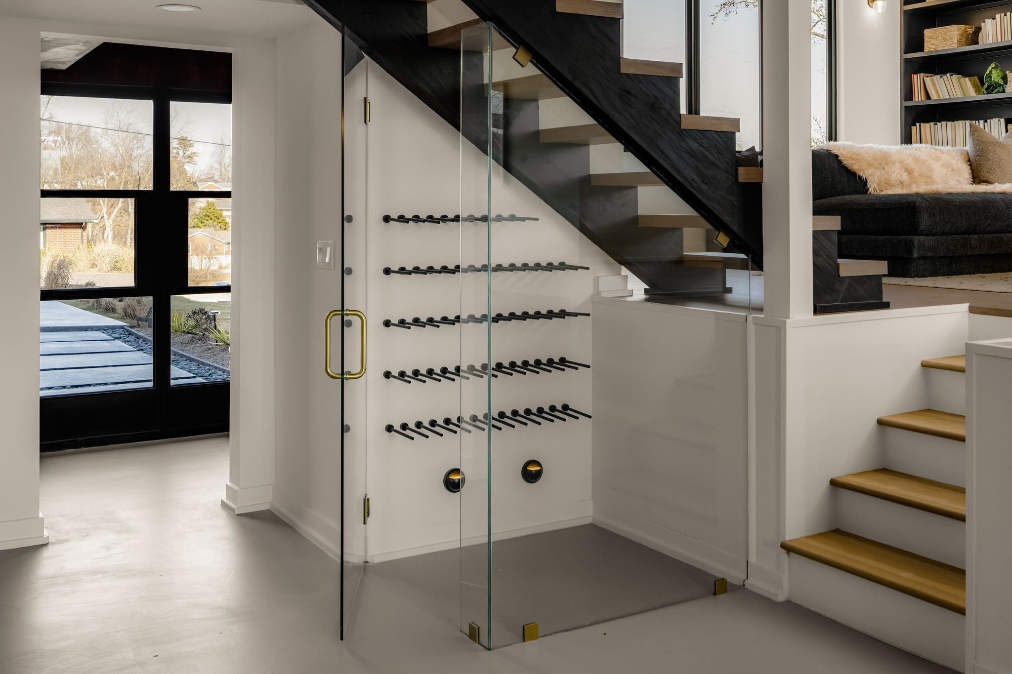 Welcome to House Nexus by Archie & Boyd. A warm, light-filled modern home designed for everyday living and elevated entertaining, House Nexus blends sculptural architecture with comfort, privacy, and timeless materials in one of East Nashville’s most desirable settings. A private electric gate creates a quiet sense of arrival, setting the tone for the thoughtfully curated spaces beyond. Inside, natural light pours through oversized windows into a striking living room anchored by a sleek gas fireplace. Sculptural floating stairs rise through the space, creating a dramatic yet welcoming architectural moment—ideal for slow mornings, intimate evenings, and effortless hosting. At the heart of the home, the architectural kitchen balances clean geometry with true functionality. Luxury FORNO appliances, a full gas range, custom cabinetry, refined surfaces, and terrazzo flooring selected for durability and texture create a chef-caliber environment that feels both elevated and livable. Just beyond, a sculptural dining space unfolds with custom wood detailing, built-in seating, and an intimate wine cellar—an inviting setting designed for gathering and conversation. The primary suite follows as a private retreat, featuring a naturalistic spa-inspired bath with sculptural fixtures, custom tilework, earthy finishes, a soaking tub, dual closets, and a discreet all-in-one washer and dryer within the dressing wing. One flight above, a secondary living room offers a flexible, light-filled retreat with a wet bar and direct access to a private balcony overlooking East Nashville. An adjacent guest suite and discreet office complete the level, creating an inspiring indoor–outdoor environment suited for visitors, work, or quiet moments of pause. Steps from Shelby Park, Shelby Golf Course, and top restaurants, House Nexus offers architectural distinction without sacrificing warmth, livability, or ease.