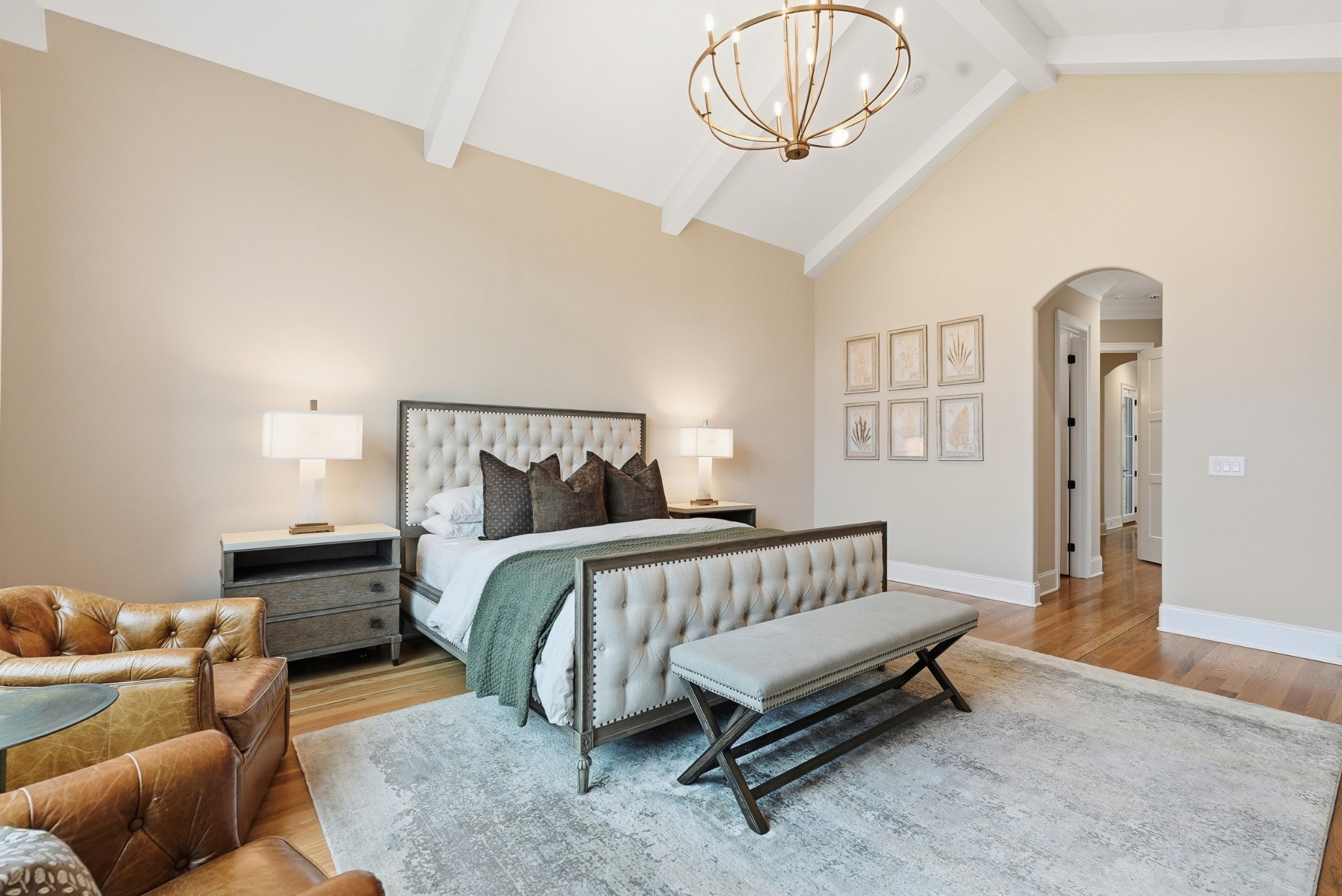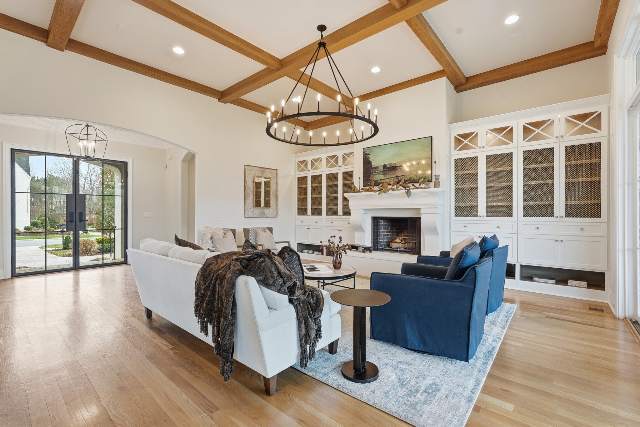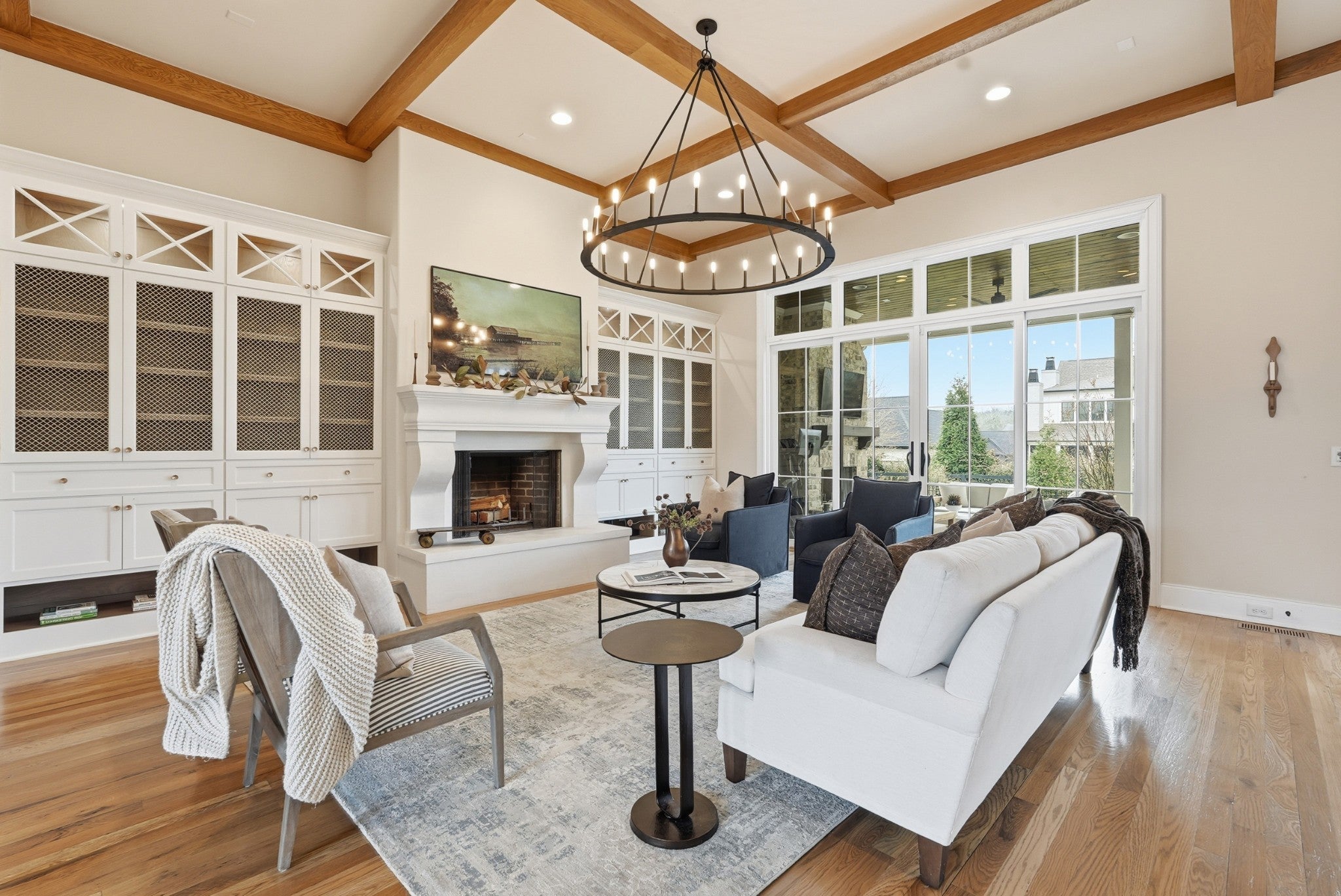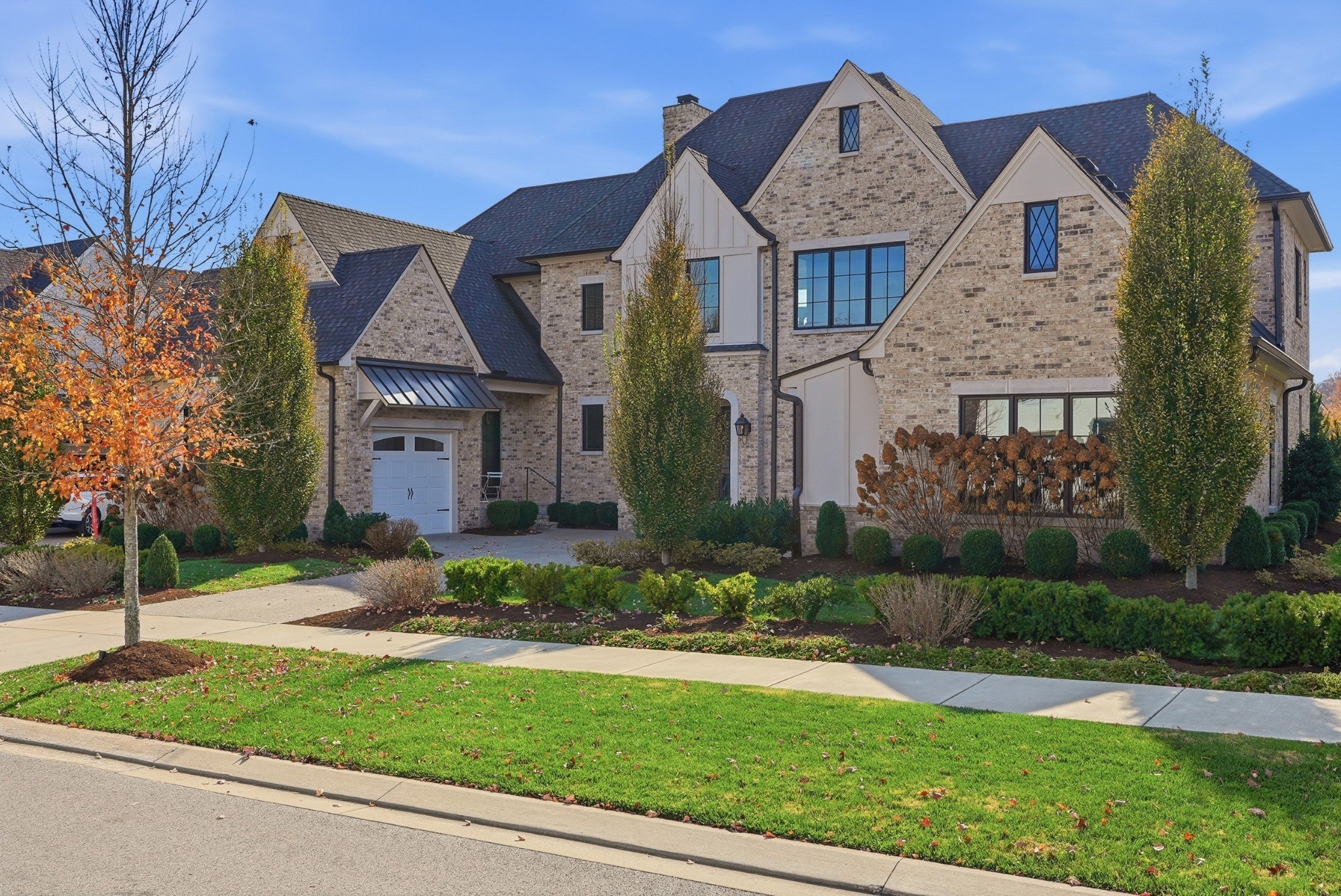 Set within The Grove, one of College Grove’s premier private gated club communities, this timeless brick abode was built in 2021 by Ford Classic Homes and blends refined design with exceptional livability. The home offers 4,945 square feet with 5 bedrooms and 5.5 baths, thoughtfully designed for both everyday living and entertaining. The main level features high ceilings, abundant natural light, and hardwood floors throughout. The living room is anchored by a wood-burning fireplace with custom built-ins and exposed beam ceilings, creating a warm and inviting gathering space that flows seamlessly into the dining area and kitchen. The kitchen is beautifully appointed with generous counter space, custom cabinetry, double ovens, a hidden walk-in pantry, and a dedicated coffee bar. The primary suite on the main level offers a peaceful retreat with vaulted ceilings, a spa-inspired bath with a soaking tub, separate vanities, and two walk-in closets. A private office and a guest suite on the main level provide flexibility for work-from-home living or hosting guests. The second level features three ensuite bedrooms and a spacious bonus room, offering comfortable accommodations and flexible living space, along with a study nook and generous unfinished storage. Outdoor living is highlighted by a covered back porch with a brick, wood-burning fireplace and wood-plank ceiling, overlooking the flat, fenced backyard, ideal for entertaining or quiet evenings at home. Residents enjoy the private club lifestyle at The Grove, featuring a Greg Norman Signature Golf Course, The Manor House dining, resort-style pools, tennis and pickleball courts, a full-service spa and fitness center, and equestrian amenities. You are also a short walking distance from the beloved Gathering Place at the Bridge Bar, Here, members can enjoy casual dining with sandwiches, pizzas and salads served on classic enamel dishes. And, no soda shop menu would be complete without ice cream floats!