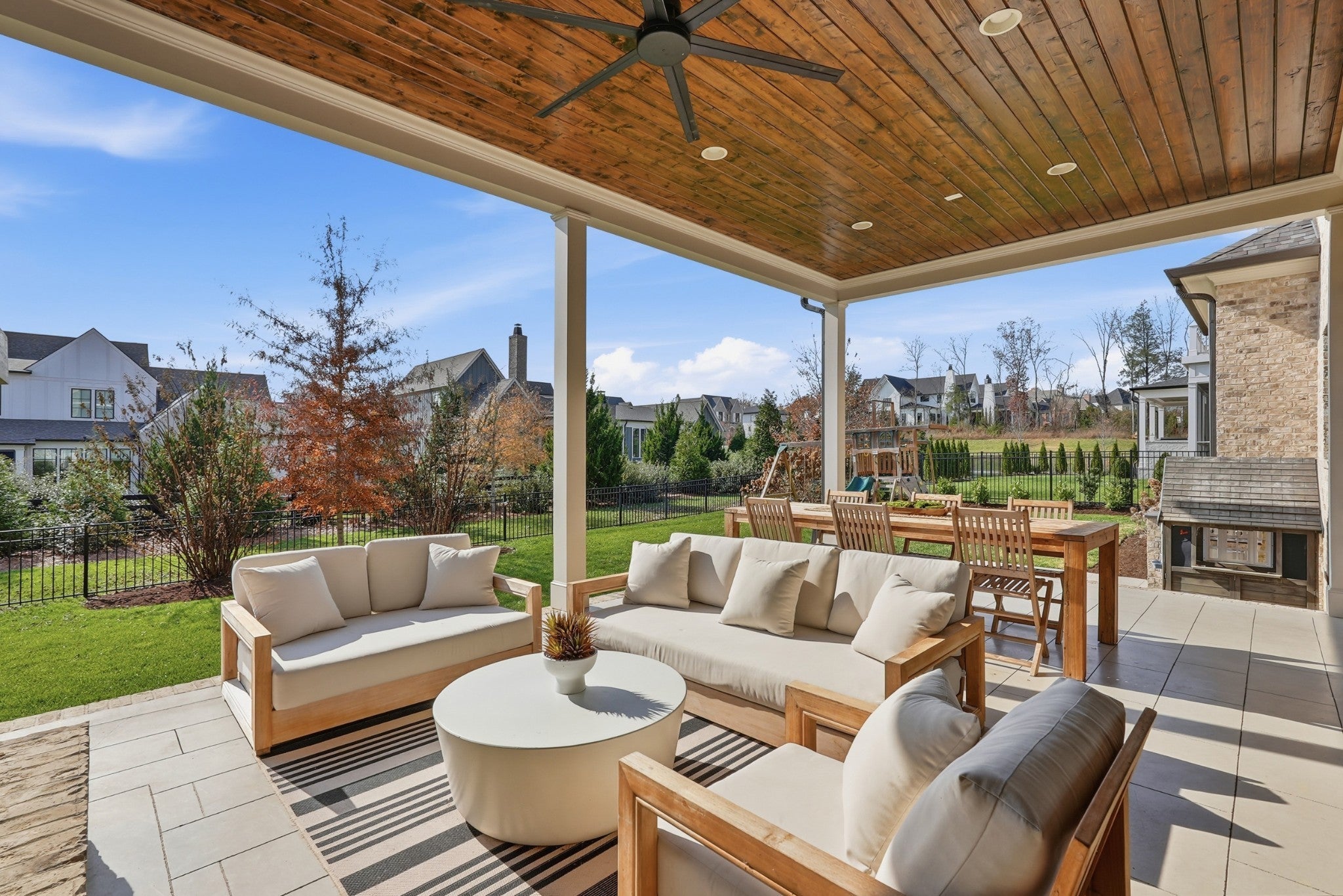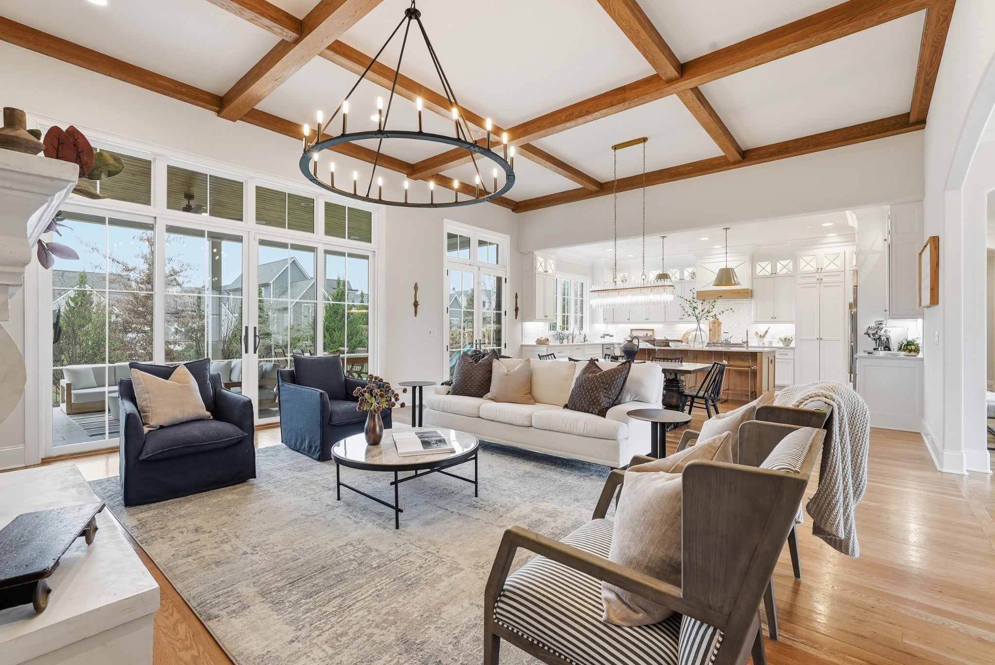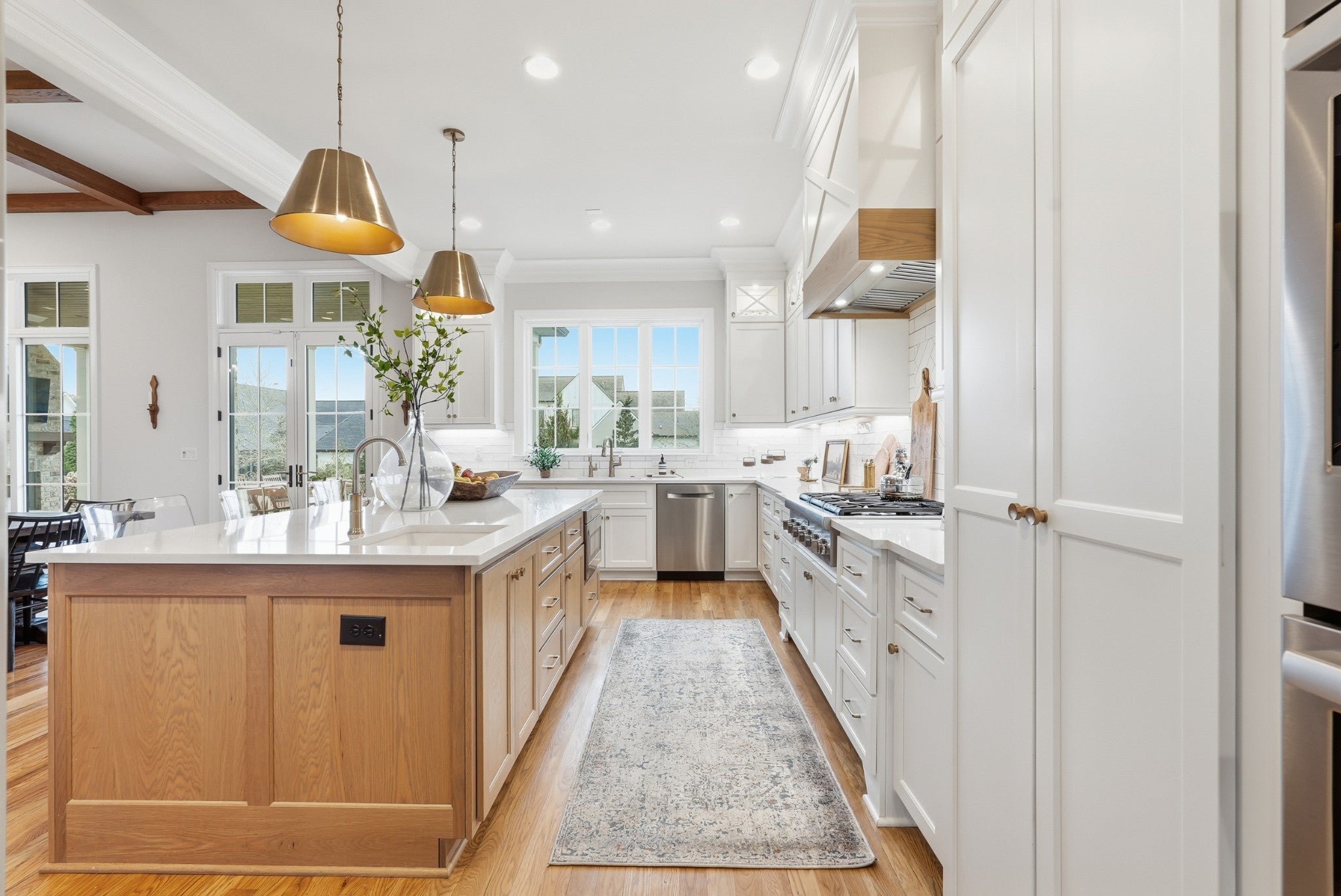 Set within The Grove, one of College Grove’s premier private gated club communities, this timeless brick abode was built in 2021 by Ford Classic Homes and blends refined design with exceptional livability. The home offers 4,945 square feet with 5 bedrooms and 5.5 baths, thoughtfully designed for both everyday living and entertaining. The main level features high ceilings, abundant natural light, and hardwood floors throughout. The living room is anchored by a wood-burning fireplace with custom built-ins and exposed beam ceilings, creating a warm and inviting gathering space that flows seamlessly into the dining area and kitchen. The kitchen is beautifully appointed with generous counter space, custom cabinetry, double ovens, a hidden walk-in pantry, and a dedicated coffee bar. The primary suite on the main level offers a peaceful retreat with vaulted ceilings, a spa-inspired bath with a soaking tub, separate vanities, and two walk-in closets. A private office and a guest suite on the main level provide flexibility for work-from-home living or hosting guests. The second level features three ensuite bedrooms and a spacious bonus room, offering comfortable accommodations and flexible living space, along with a study nook and generous unfinished storage. Outdoor living is highlighted by a covered back porch with a brick, wood-burning fireplace and wood-plank ceiling, overlooking the flat, fenced backyard, ideal for entertaining or quiet evenings at home. Residents enjoy the private club lifestyle at The Grove, featuring a Greg Norman Signature Golf Course, The Manor House dining, resort-style pools, tennis and pickleball courts, a full-service spa and fitness center, and equestrian amenities. You are also a short walking distance from the beloved Gathering Place at the Bridge Bar, Here, members can enjoy casual dining with sandwiches, pizzas and salads served on classic enamel dishes. And, no soda shop menu would be complete without ice cream floats!