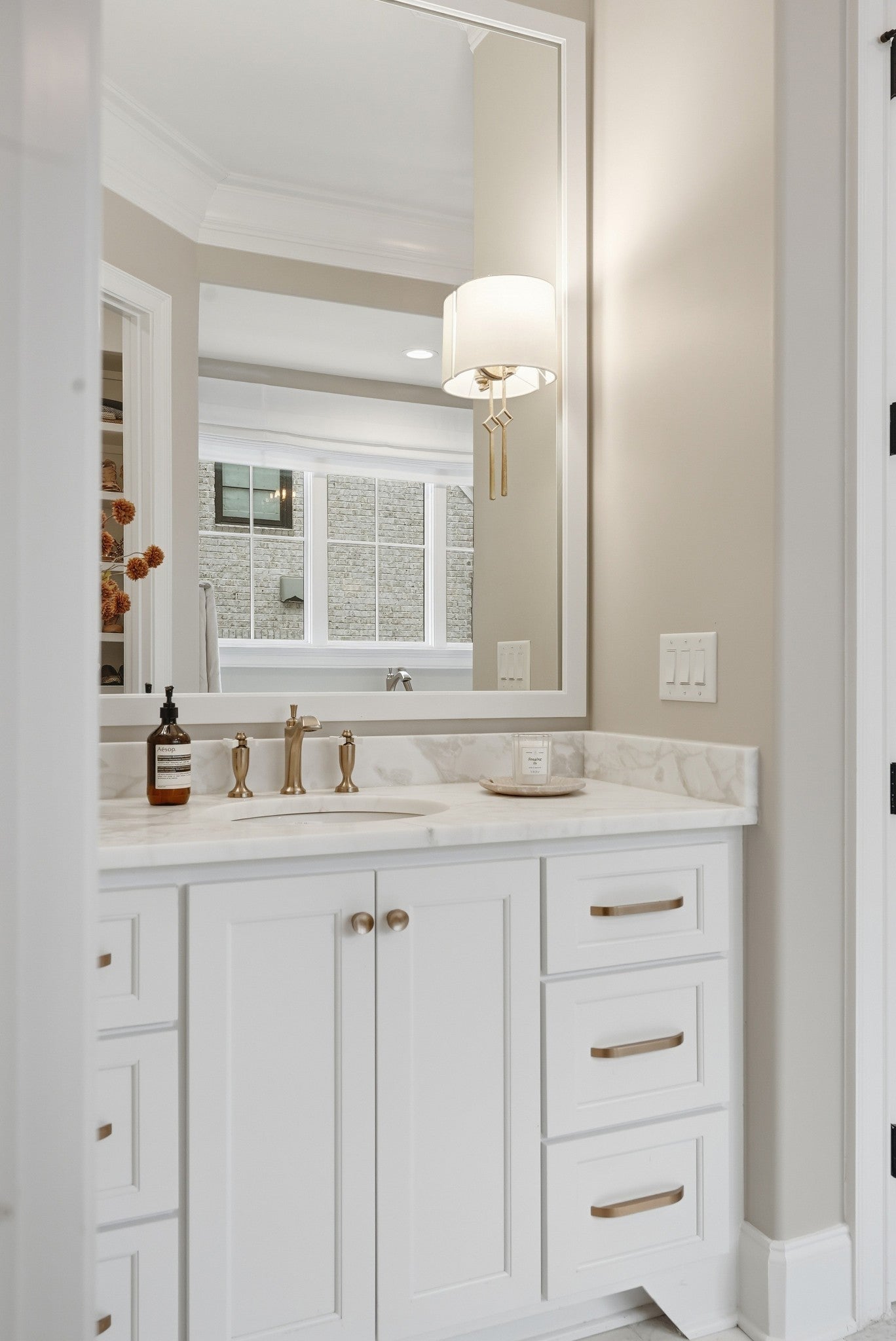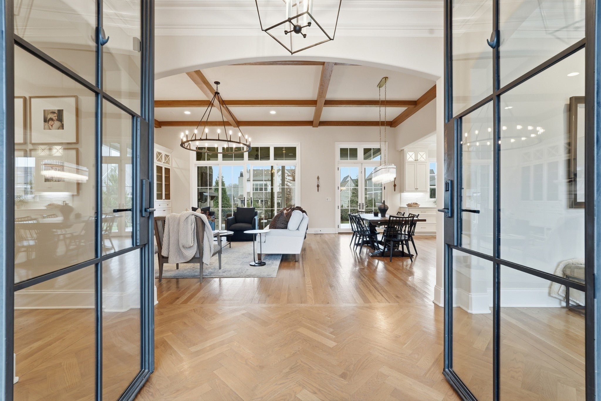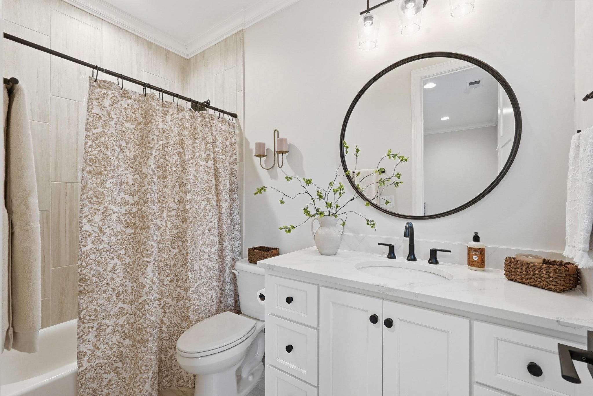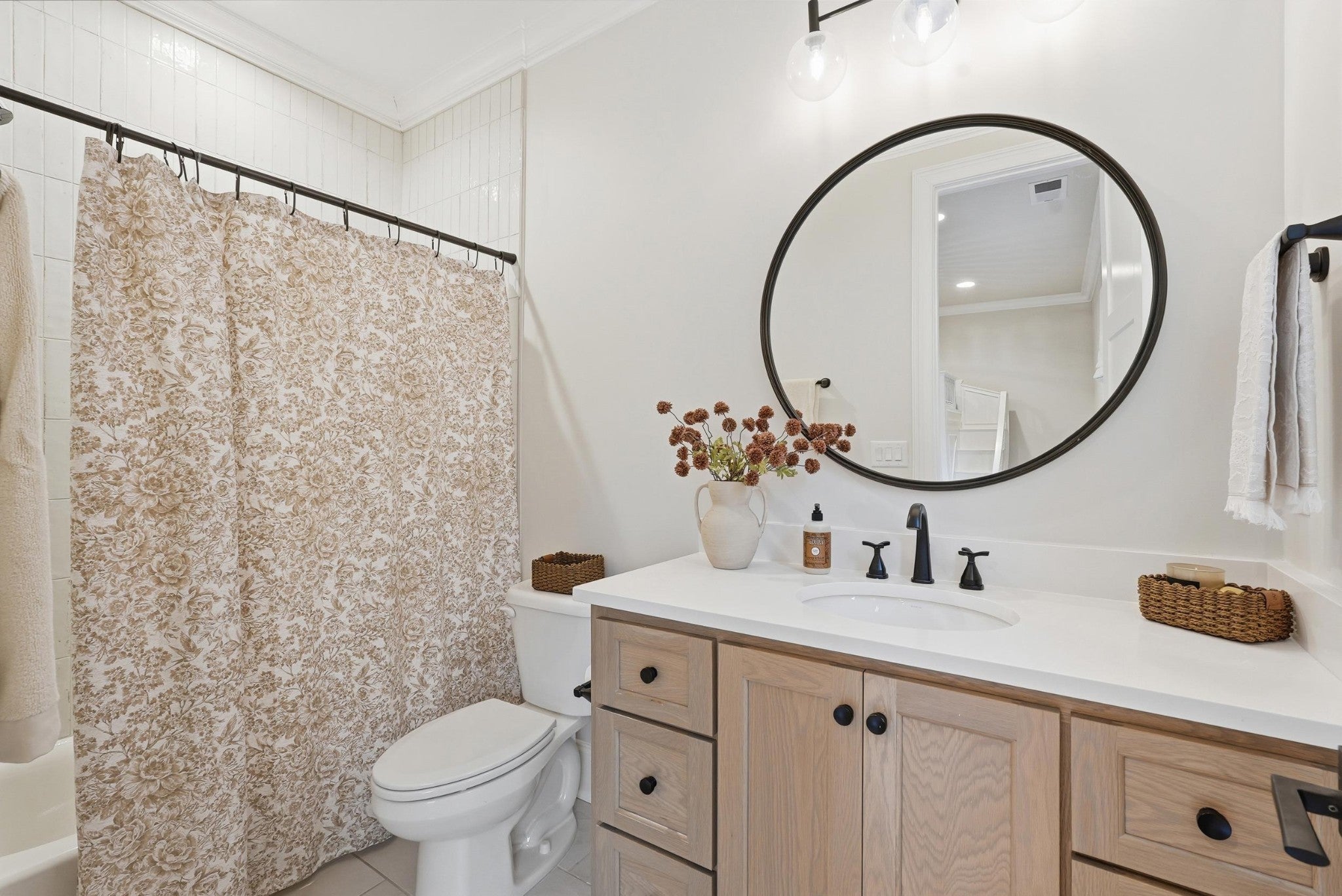 Set within The Grove, one of College Grove’s premier private gated club communities, this timeless brick abode was built in 2021 by Ford Classic Homes and blends refined design with exceptional livability. The home offers 4,945 square feet with 5 bedrooms and 5.5 baths, thoughtfully designed for both everyday living and entertaining. The main level features high ceilings, abundant natural light, and hardwood floors throughout. The living room is anchored by a wood-burning fireplace with custom built-ins and exposed beam ceilings, creating a warm and inviting gathering space that flows seamlessly into the dining area and kitchen. The kitchen is beautifully appointed with generous counter space, custom cabinetry, double ovens, a hidden walk-in pantry, and a dedicated coffee bar. The primary suite on the main level offers a peaceful retreat with vaulted ceilings, a spa-inspired bath with a soaking tub, separate vanities, and two walk-in closets. A private office and a guest suite on the main level provide flexibility for work-from-home living or hosting guests. The second level features three ensuite bedrooms and a spacious bonus room, offering comfortable accommodations and flexible living space, along with a study nook and generous unfinished storage. Outdoor living is highlighted by a covered back porch with a brick, wood-burning fireplace and wood-plank ceiling, overlooking the flat, fenced backyard, ideal for entertaining or quiet evenings at home. Residents enjoy the private club lifestyle at The Grove, featuring a Greg Norman Signature Golf Course, The Manor House dining, resort-style pools, tennis and pickleball courts, a full-service spa and fitness center, and equestrian amenities. You are also a short walking distance from the beloved Gathering Place at the Bridge Bar, Here, members can enjoy casual dining with sandwiches, pizzas and salads served on classic enamel dishes. And, no soda shop menu would be complete without ice cream floats!