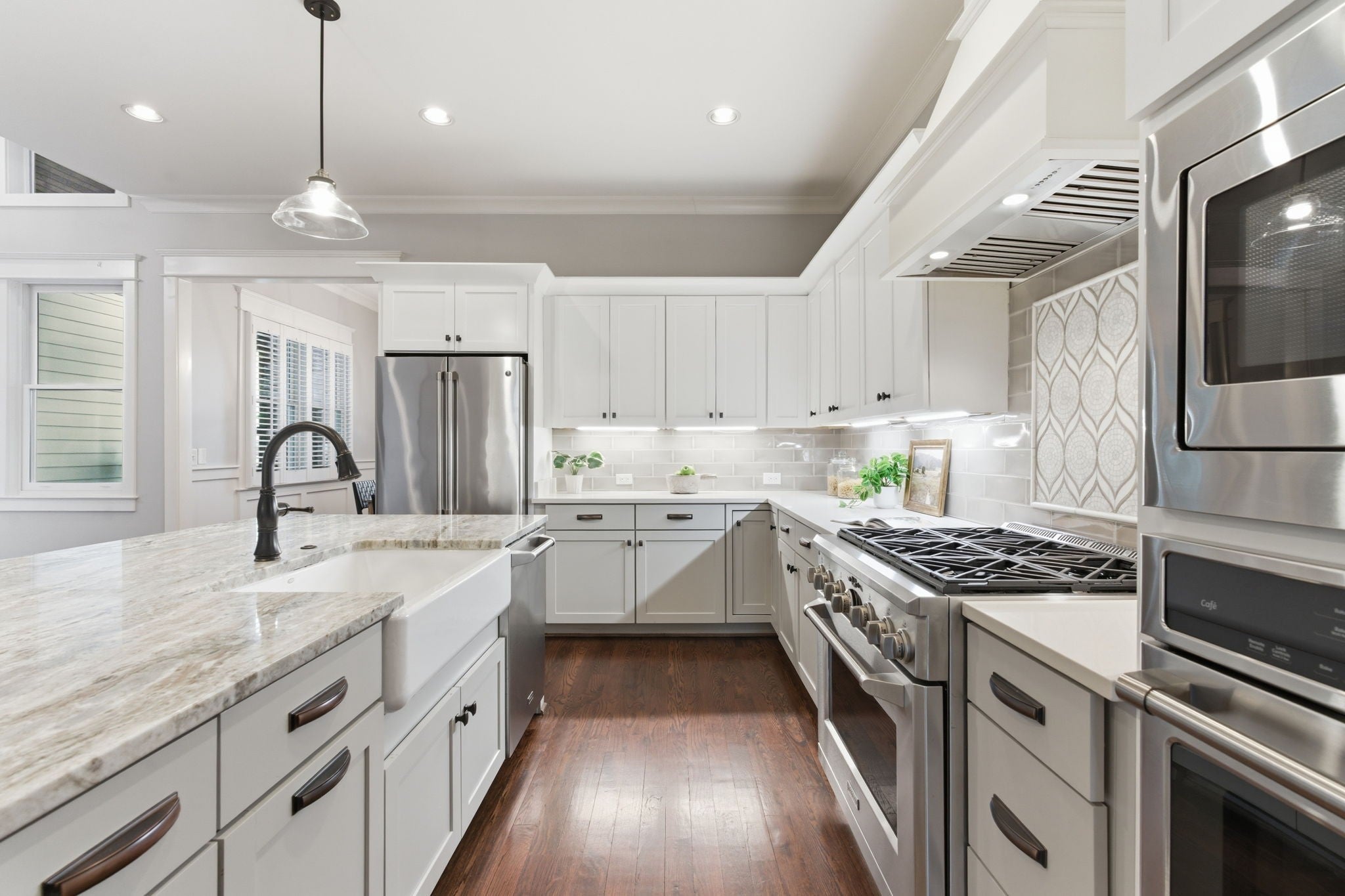 Welcome to Belmont-Hillsboro, one of Nashville's premier urban neighborhoods, where you can walk to Vanderbilt, Belmont and 12S from this gorgeous and spacious home with enough space to live, work, and play. The luxurious living room's vaulted ceiling extends to the screened in back deck and flood the open concept kitchen and living room with natural light. Cozy fireplaces in the living room and back deck. Primary bedroom suite and a full guest suite on the main floor. Thoughtfully designed main floor 5th bedroom offers a full suite enabling flex space for a second home office/playroom etc. Upstairs you'll find two large bedrooms with shared full bathroom and a media room perfect for entertaining with built in Jamo speakers and projection screen.
