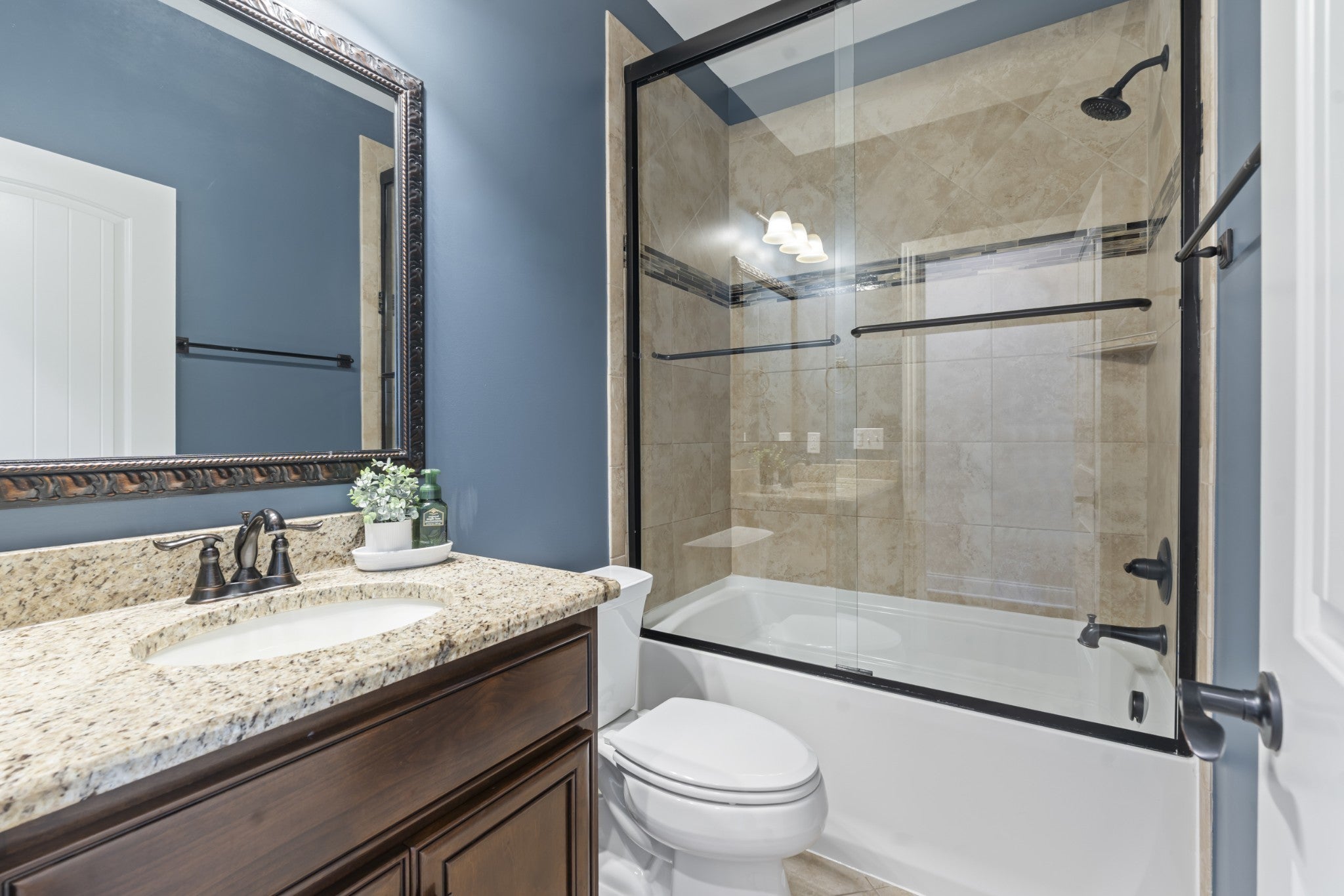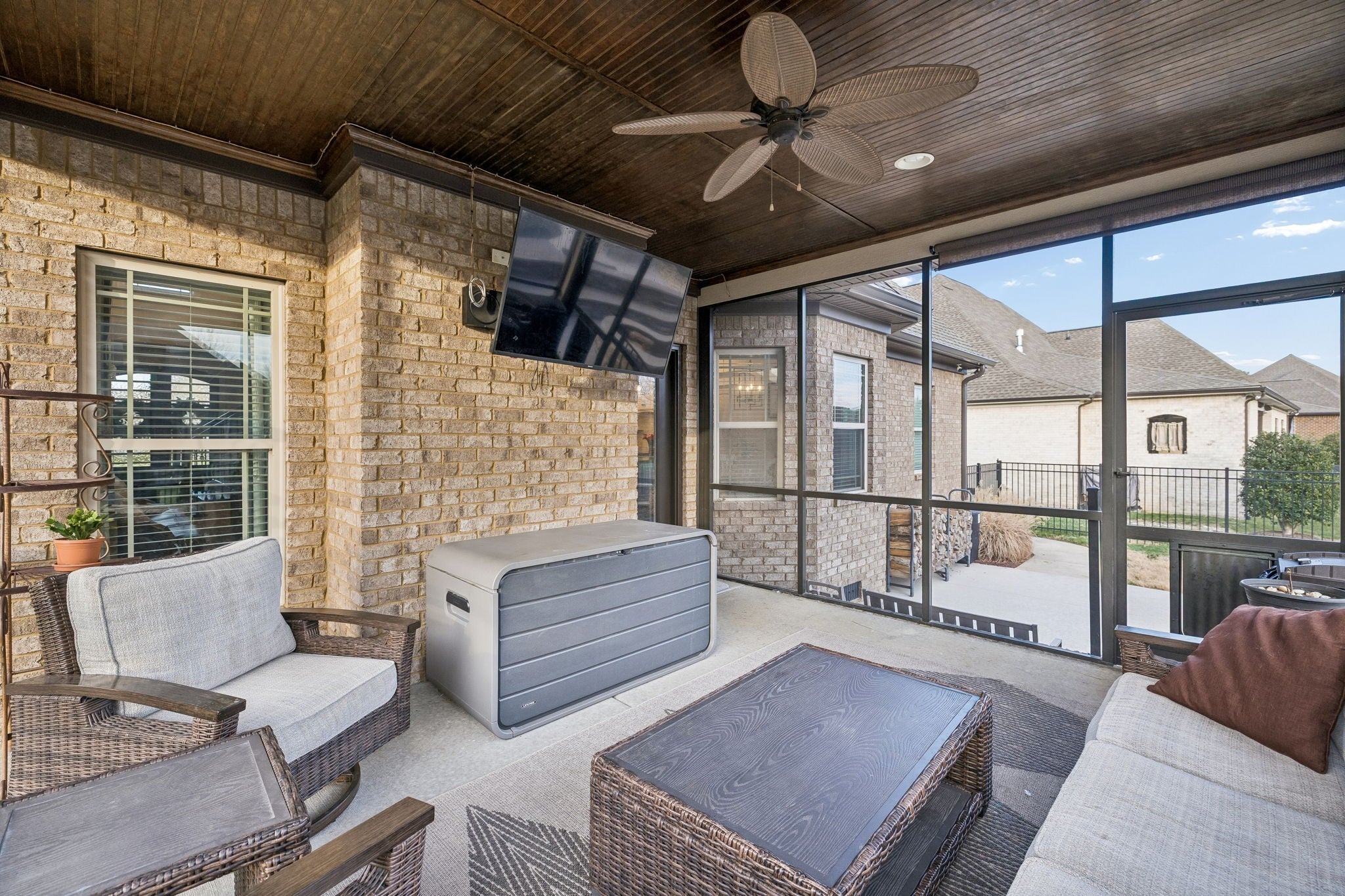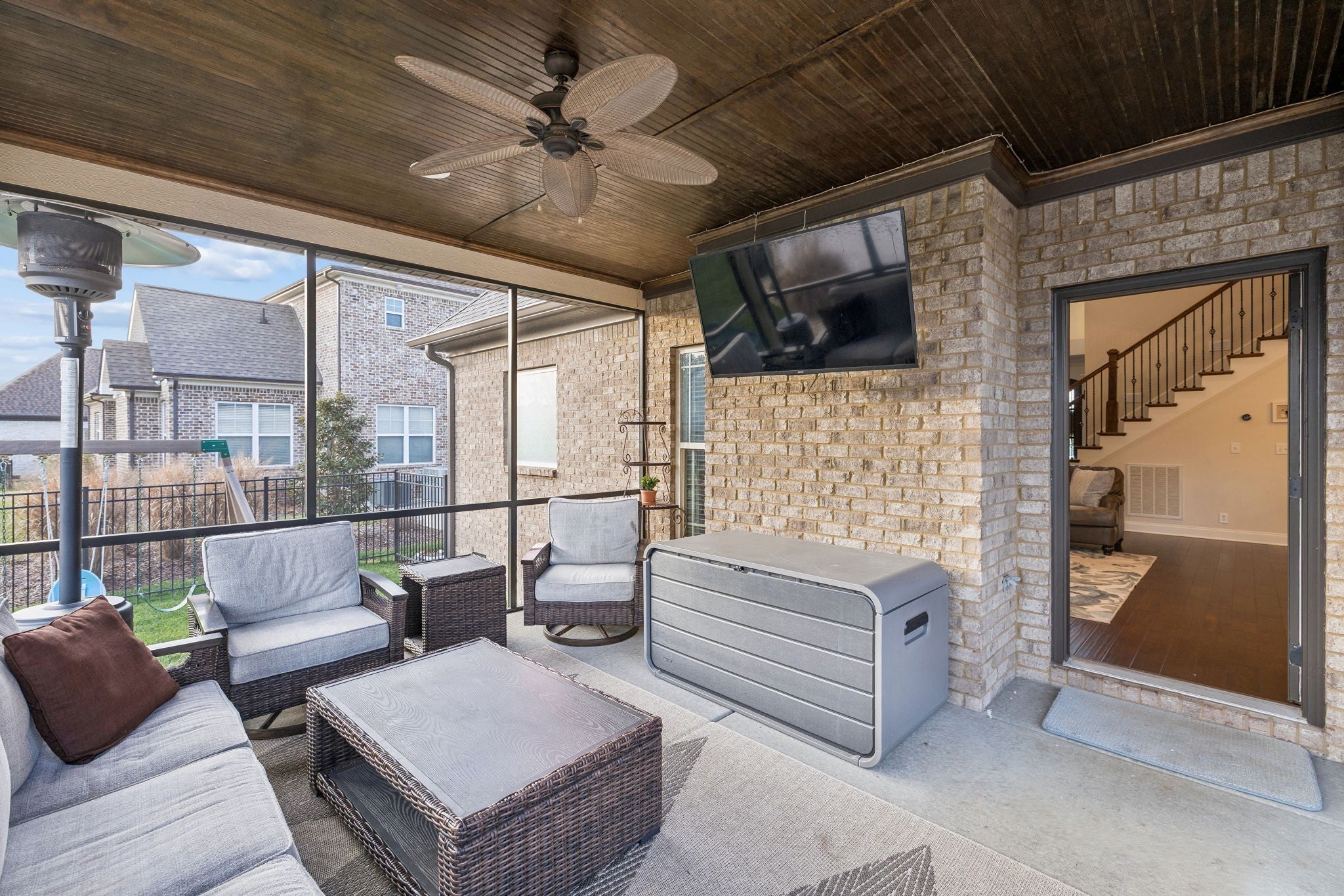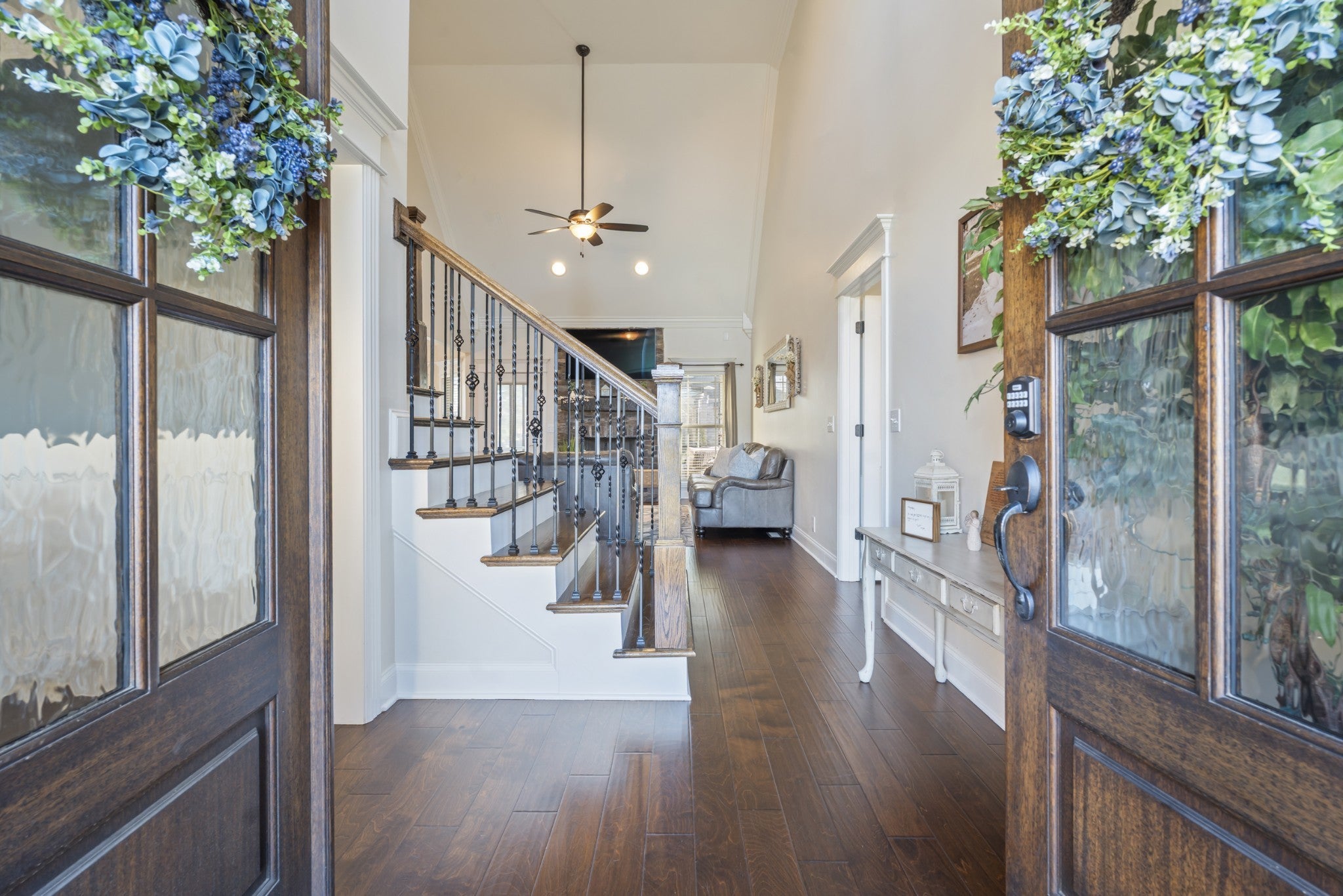 This beautifully updated home offers four bedrooms and three full bathrooms, thoughtfully designed for both elegant entertaining and everyday family living. The main floor features a spacious primary suite, an additional bedroom, and a second full bathroom, creating an ideal layout for guests, a home office, or multigenerational living. Upstairs, two bedrooms share a Jack and Jill bathroom and are complemented by a large recreation room and a versatile landing area that provides flexible living space. A formal dining room sets the stage for special gatherings, while the kitchen serves as the heart of the home with refreshed finishes, updated lighting, and updated appliances that flow seamlessly into the main living areas. Throughout the home, updated flooring, new lighting, surround sound wiring, and smart home features add comfort and convenience. The primary suite is anchored by a completely remodeled, spa-inspired bathroom that was taken down to the studs and redesigned with luxury in mind. High-end finishes, custom cabinetry, quartz countertops, and a stunning glass-enclosed shower create a retreat that feels both timeless and indulgent, offering a level of quality rarely found at this price point. Set on a large lot, the outdoor living spaces create a true private retreat. Enjoy a screened-in porch with TV mount, expansive patio areas, a built-in fire pit with stone seating, and a resort-style saltwater pool with smart controls, LED lighting, and generous space for entertaining. A wired hot tub area, new Sundek coating, upgraded irrigation, and professionally maintained landscaping complete this exceptional property, blending refined luxury with warm, family-friendly comfort. This luxury home in a gated community showcases exceptional curb appeal with a brand-new roof and professionally designed landscaping that creates a stunning first impression. Thoughtfully maintained and beautifully presented, every detail adds comfort, value, and timeless style.