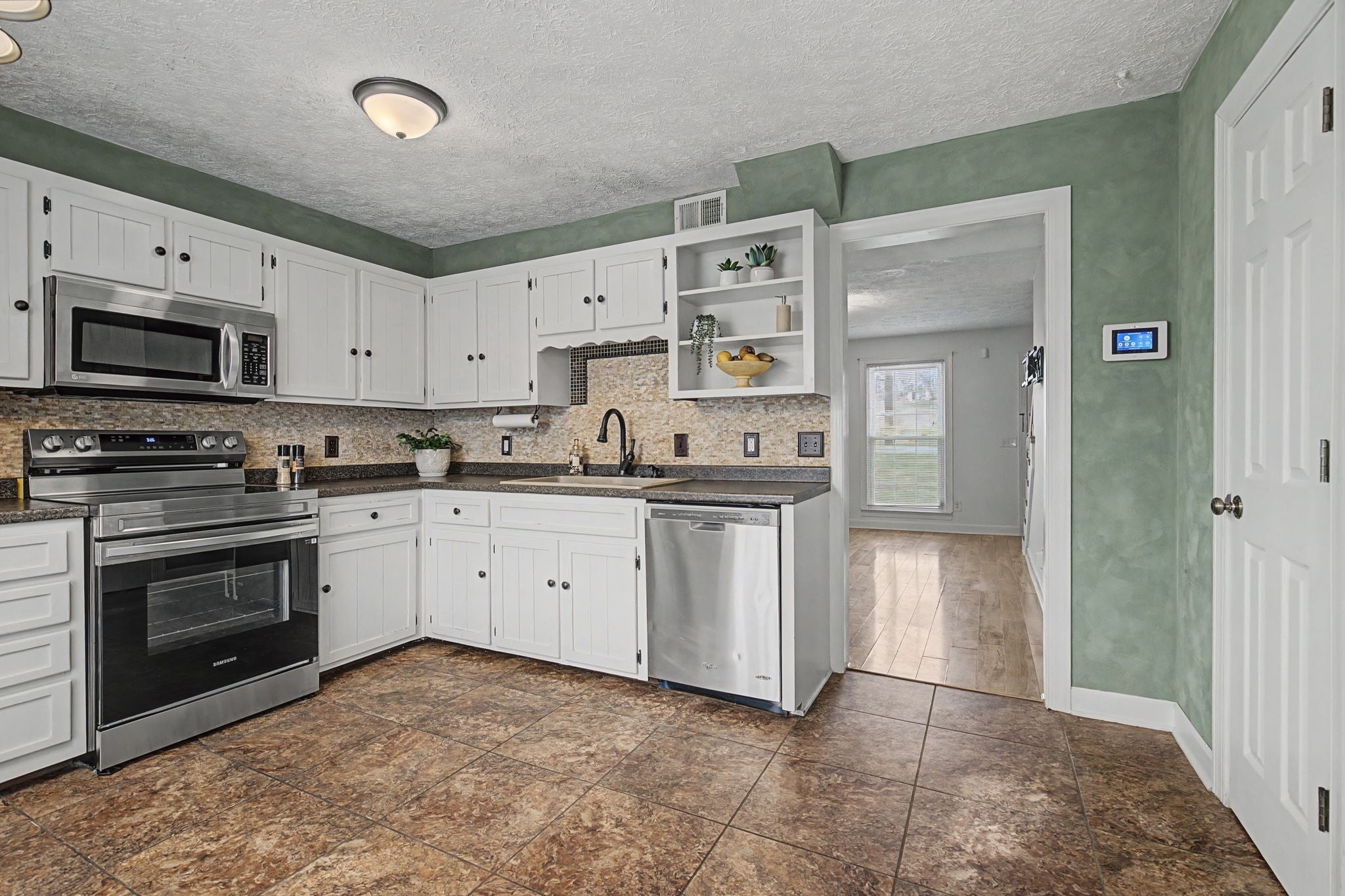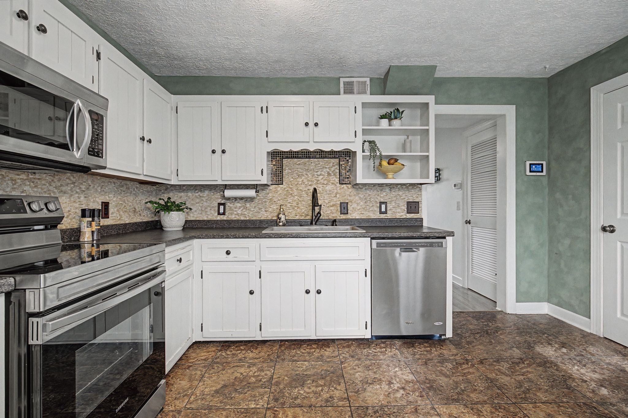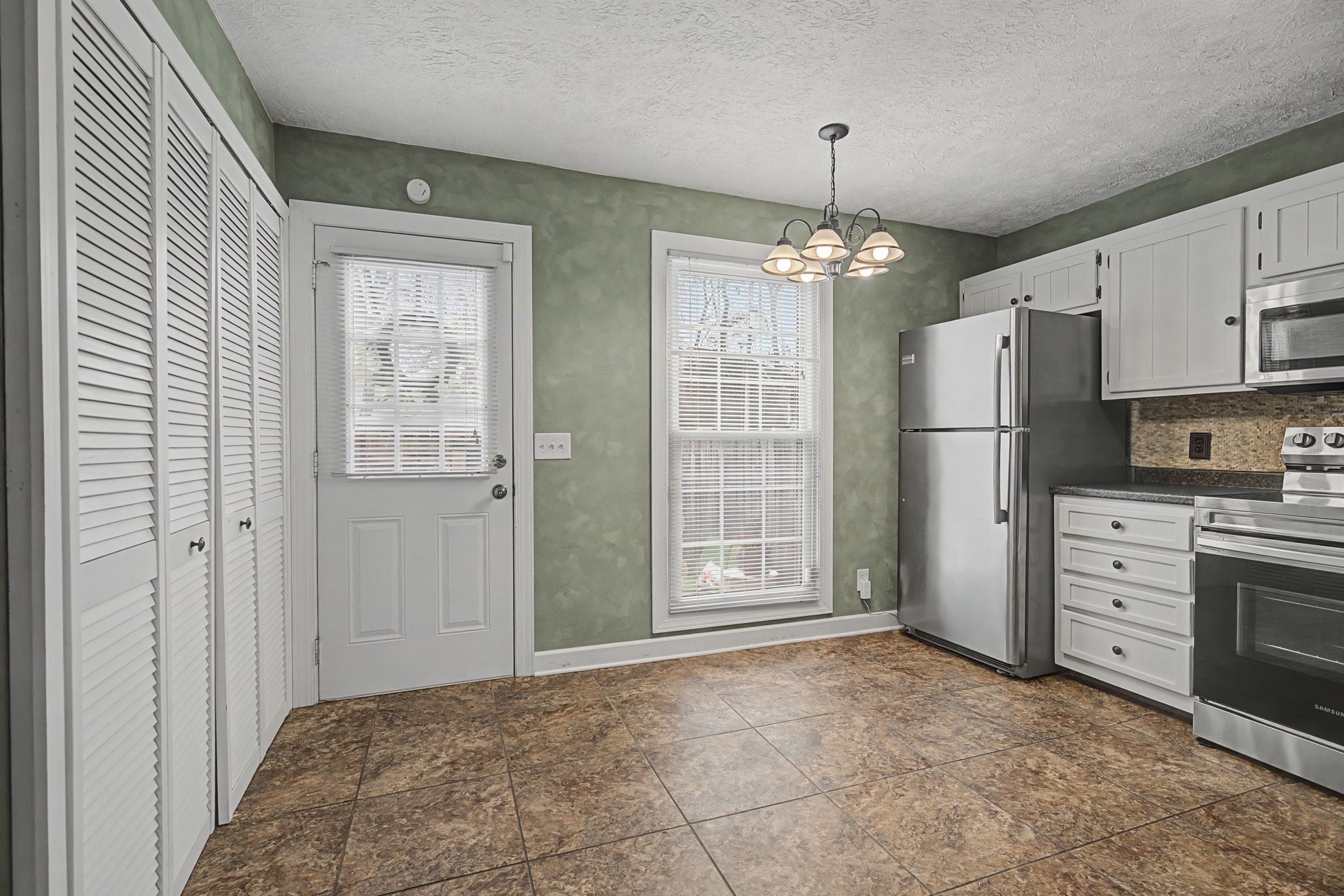 - Electric Oven, Electric Range, Dishwasher, Disposal, Microwave, Refrigerator, Stainless Steel Appliance(s)