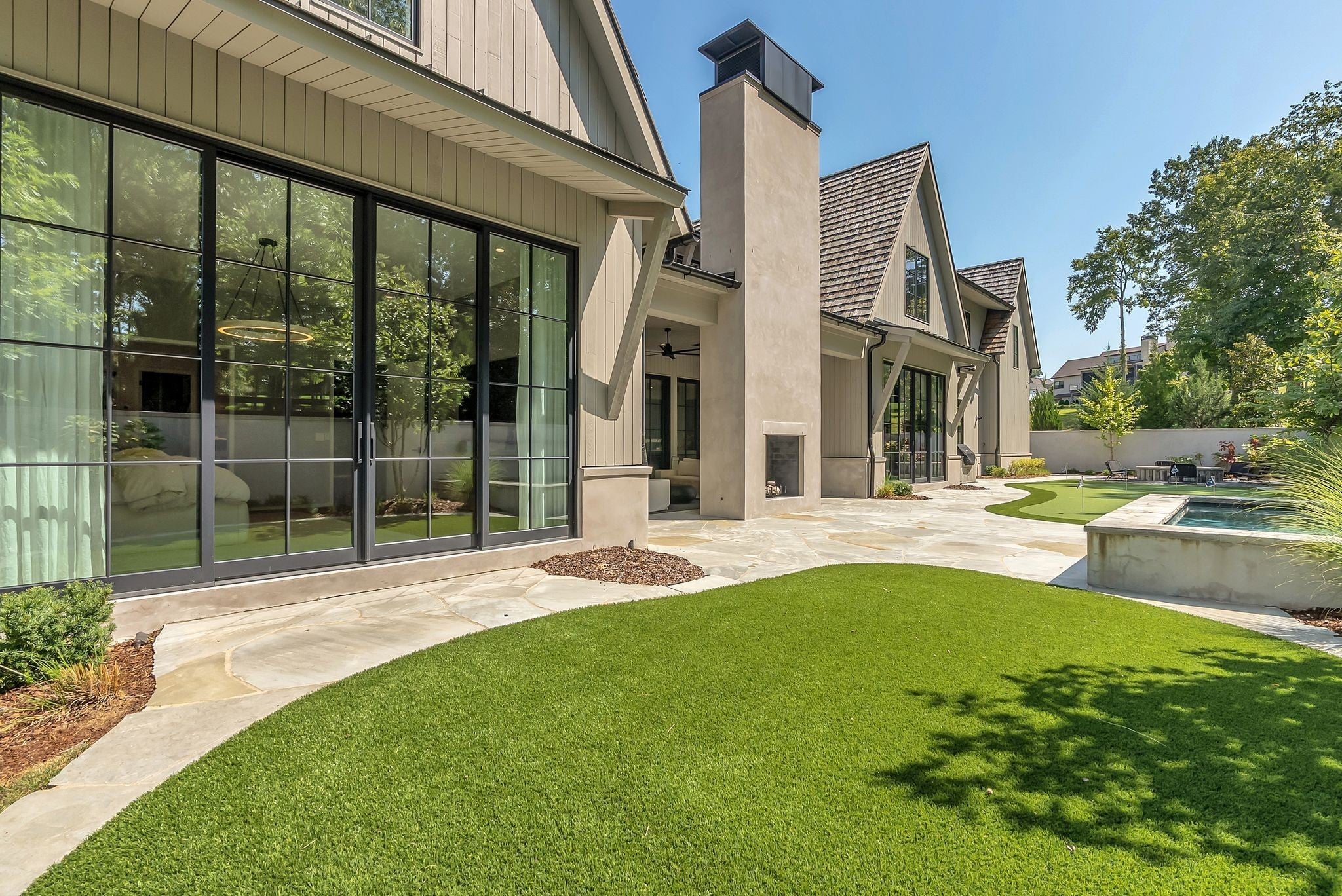 This custom home at Troubadour Golf and Field Club, built by Grove Park in 2023, features six bedrooms and six and a half bathrooms under 7,438-square-foot residence situated on 0.43 acres. Step into expansive luxury with a grand open-concept living, dining, and kitchen area, anchored by dual waterfall countertops and sleek designer finishes. The home offers two private wings for optimal comfort and separation, plus a state-of-the-art golf simulator for year-round play. Outside, enjoy a custom putting green, gather around the firepit, relax in the hot tub, or lounge on the covered back porch—all set within a beautifully landscaped backyard built for entertaining and unwinding. *Additional features include a whole-home reverse osmosis water system, storm shelter, and whole-home generator. Offering fantastic value for the neighborhood, discover a world where every detail is designed for indulgence. Our resort-style pool and spa invite you to unwind in an infinity-edge oasis surrounded by lush landscaping and chic cabanas, while elevated hot tubs and a serene spa sanctuary offer the ultimate in relaxation. Savor distinctive dining experiences across multiple venues, each delivering exceptional flavors and refined ambiance—whether you’re enjoying a casual bite or a gourmet evening. For those who love the game, our championship golf course and scenic short course provide pristine fairways and greens for every level of play. Stay energized in our state-of-the-art fitness center, complete with cutting-edge equipment and dedicated spaces for yoga and personal wellness programs. Elevate your competitive spirit at our racquet sports complex featuring world-class tennis and pickleball courts. Beyond the courts, immerse yourself in nature with curated outdoor adventures, from hiking and biking trails to tranquil fishing at our exclusive fish camp, every amenity is thoughtfully crafted to inspire relaxation, spark connection, and elevate everyday living.