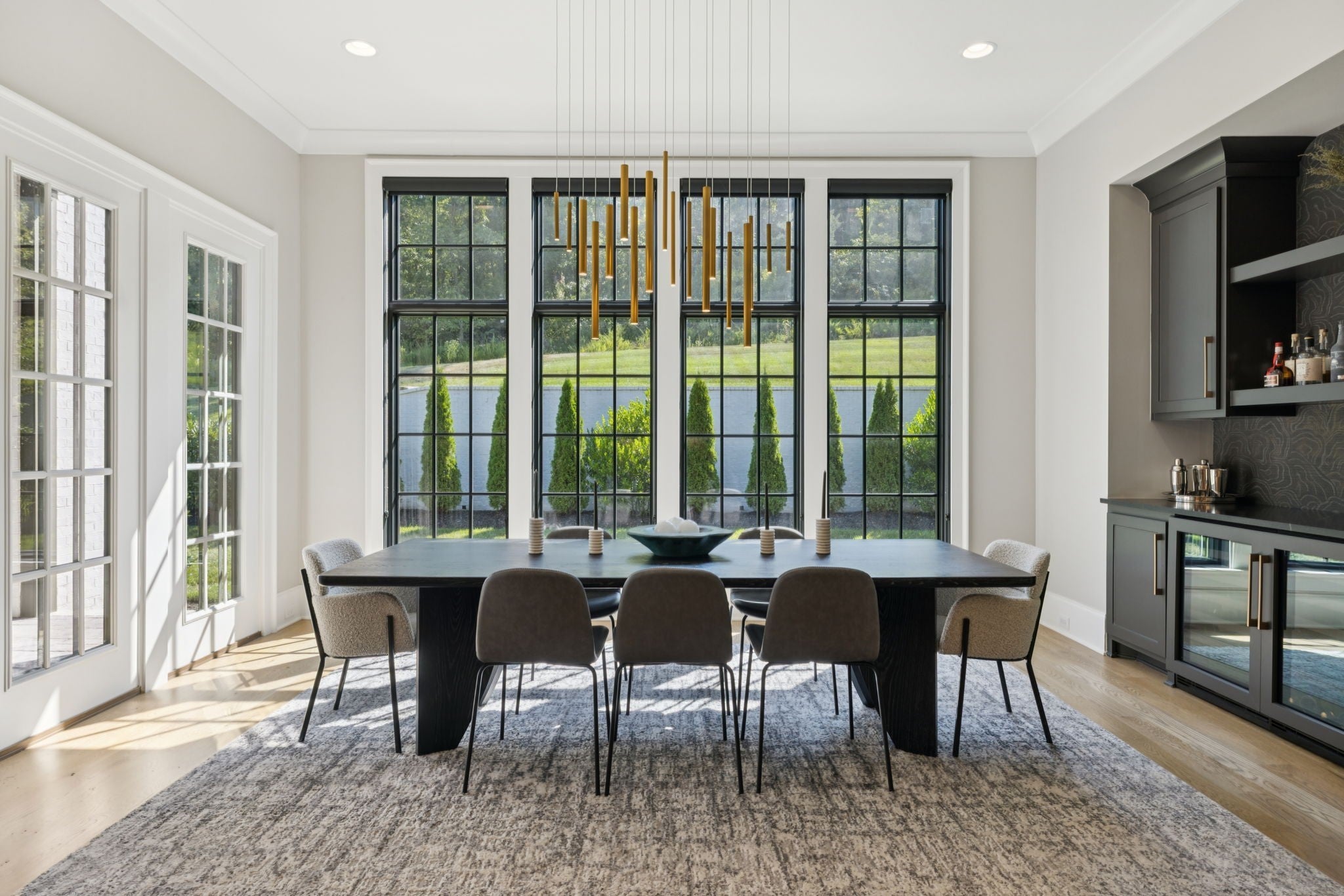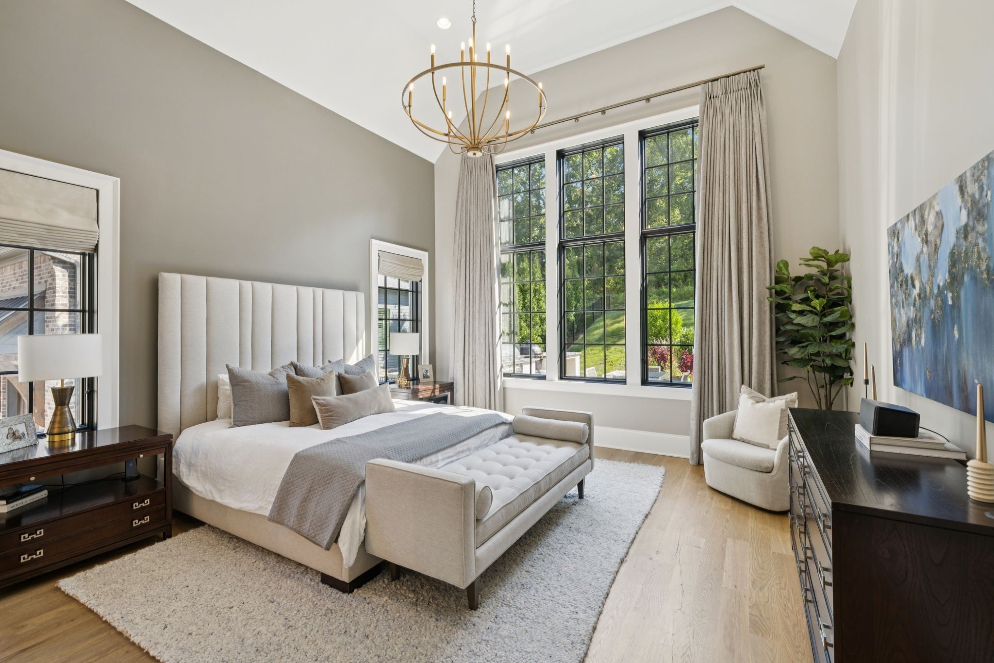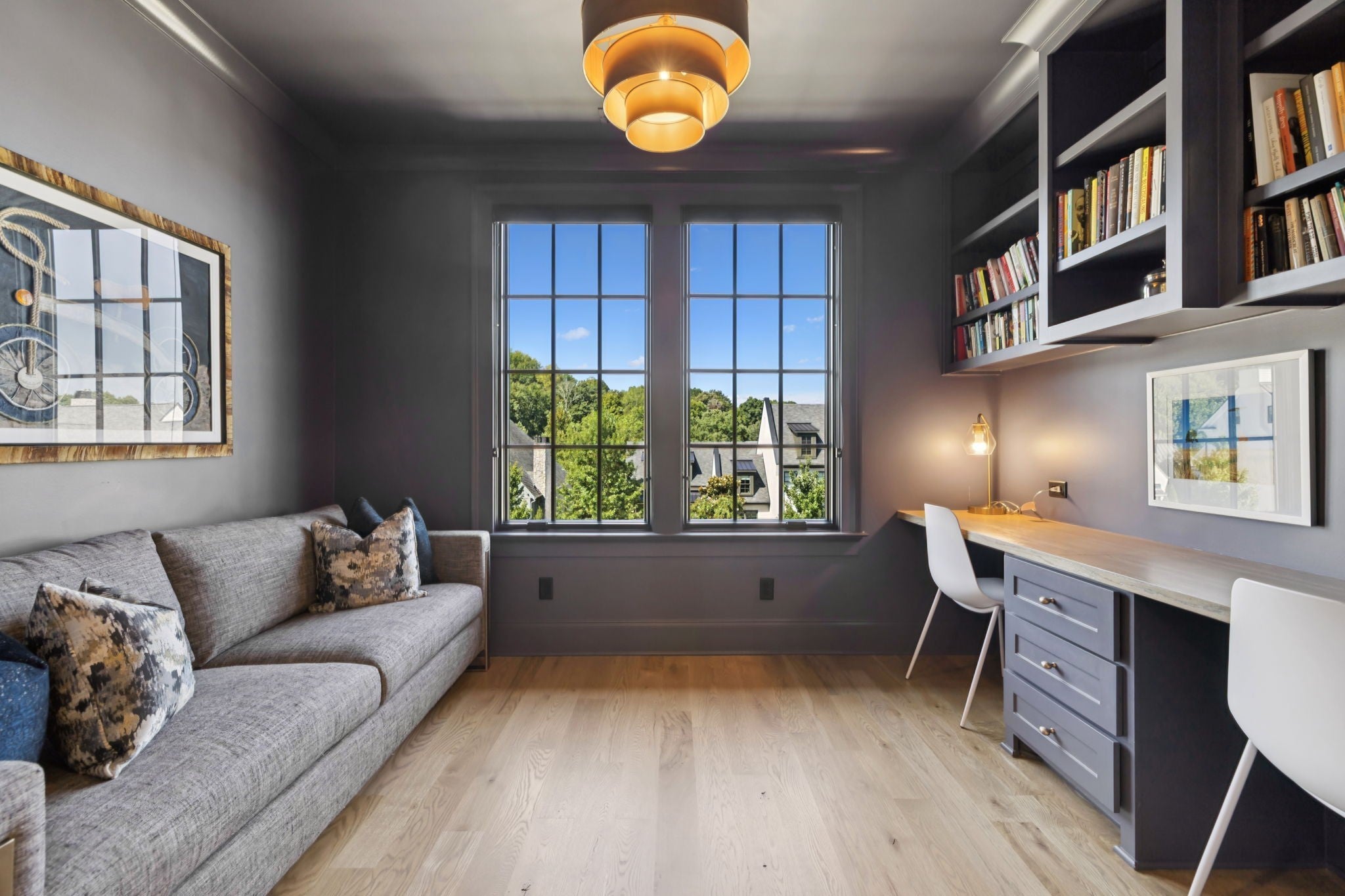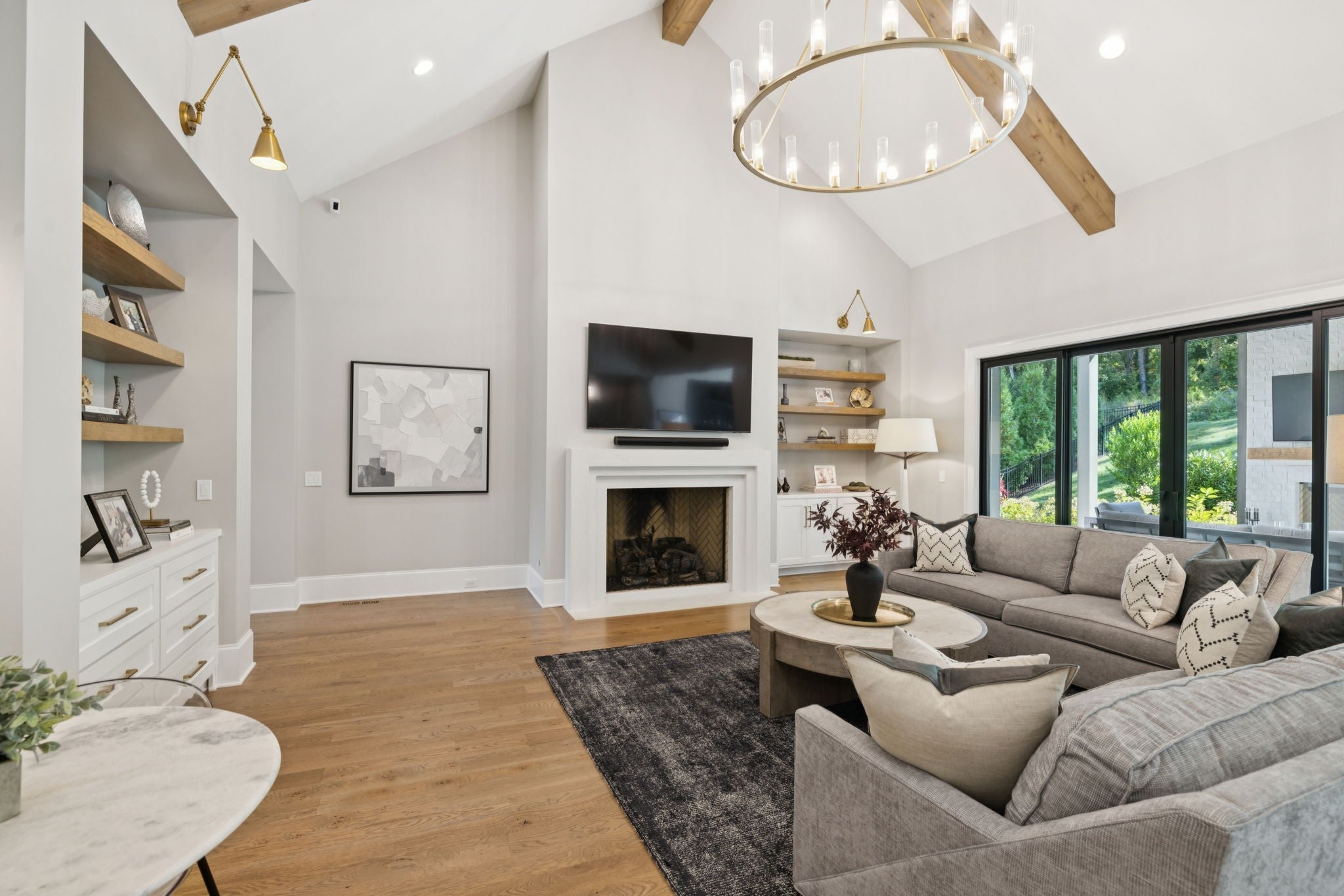 Set within the prestigious community The Grove, this stunning Modern Tudor by award-winning Stonegate Homes blends timeless architecture with elevated modern living. Thoughtfully designed for both comfort and sophistication, this private 4-bedroom residence showcases exceptional craftsmanship and high-end finishes throughout. Soaring ceilings anchor the dramatic great room, creating a light-filled space ideal for entertaining or everyday living. The chef’s kitchen is equally impressive, featuring vaulted ceilings, premium Wolf appliances, an oversized island, and a spacious walk-in pantry—perfect for both hosting and function. The serene primary suite is conveniently located on the main level, offering a luxurious retreat with spa-inspired finishes. A private den on the main floor provides flexible space for a home office or cozy lounge. Upstairs, enjoy a generous bonus room, with custom bunks designed for fun and function, and a stylish study lounge—ideal for work, play, or relaxation. Each secondary bedroom is thoughtfully appointed, maintaining the home’s sense of refined comfort. With privacy, architectural character, and luxury at every turn, this exceptional home offers an elevated lifestyle in one of the area’s most sought-after communities.