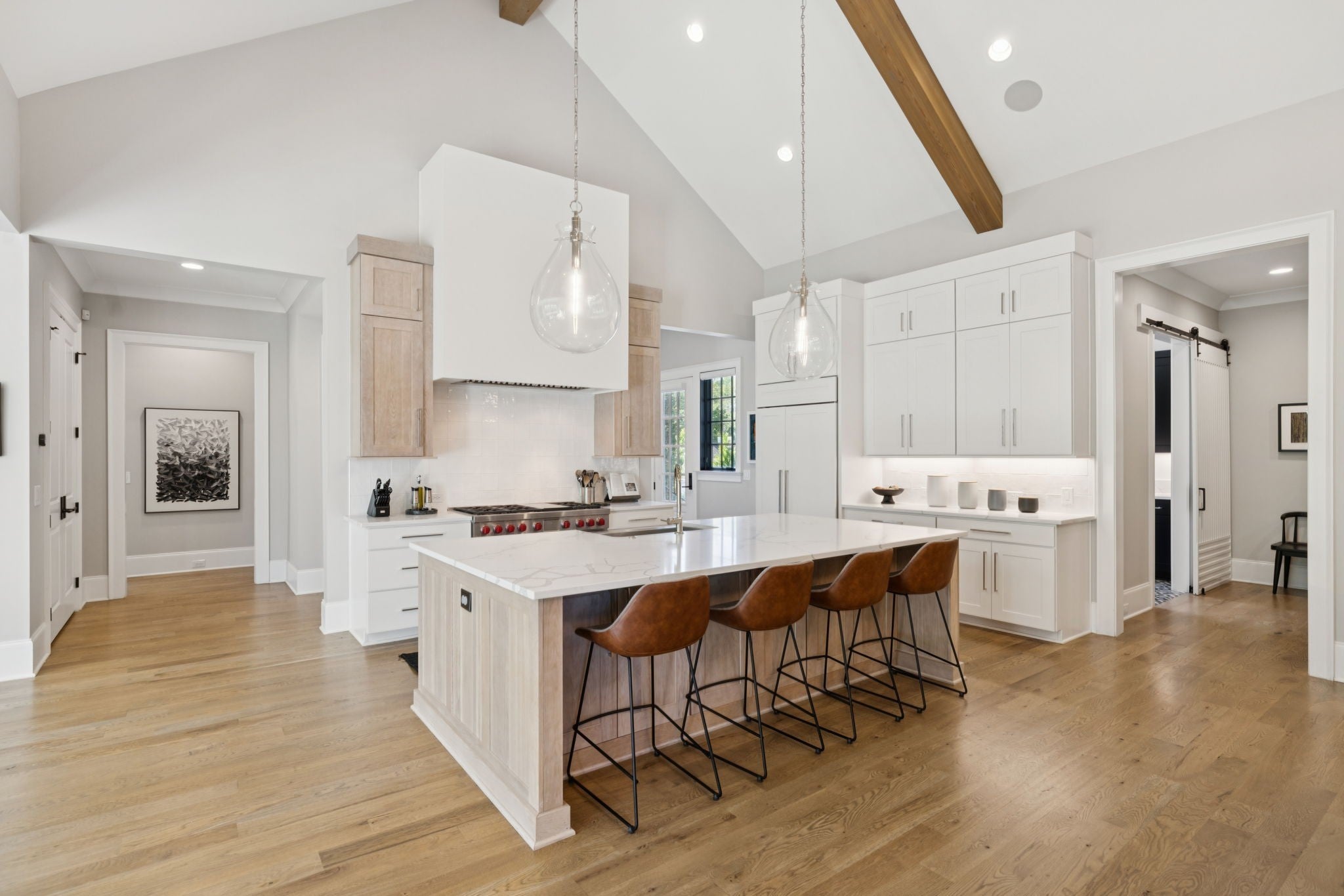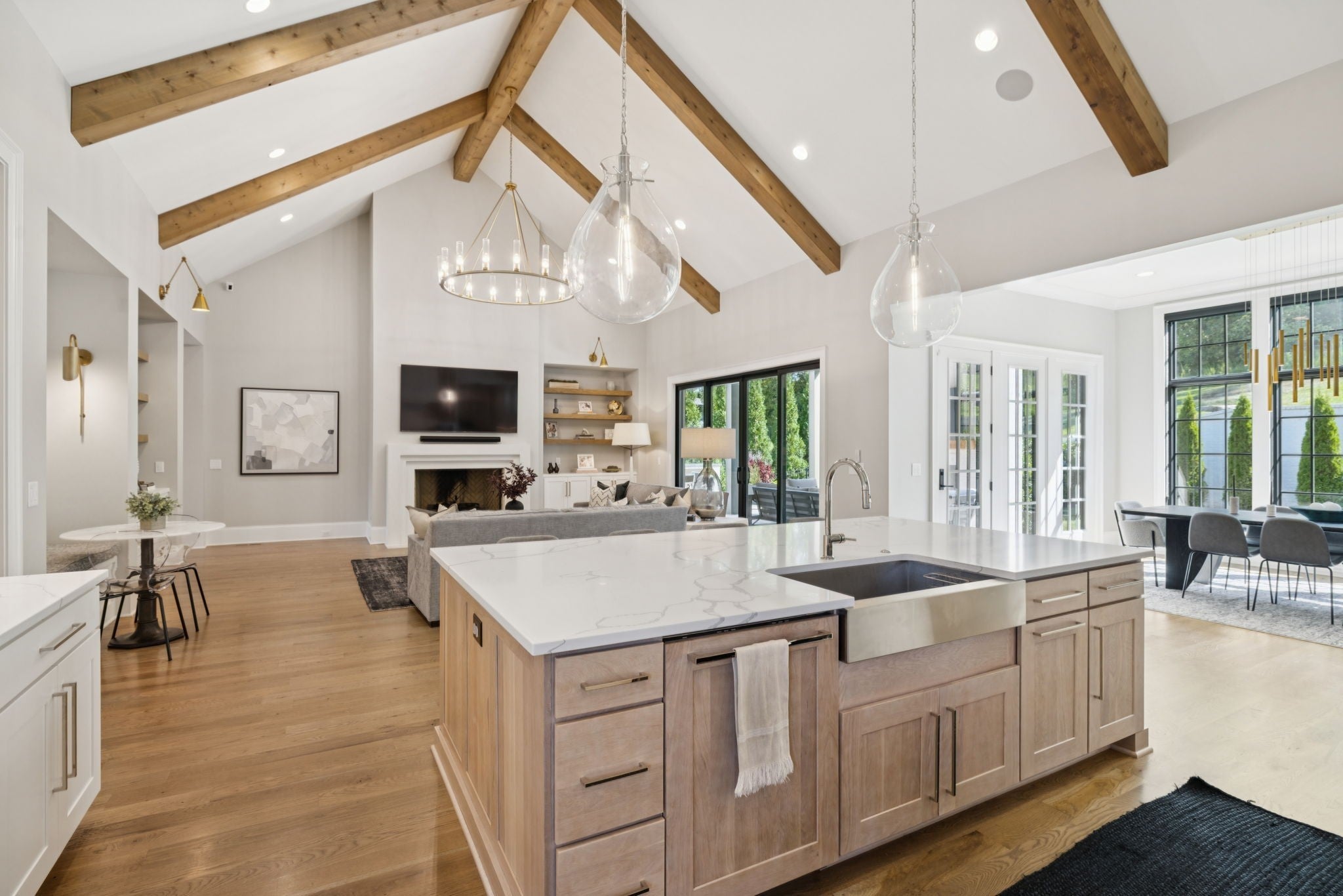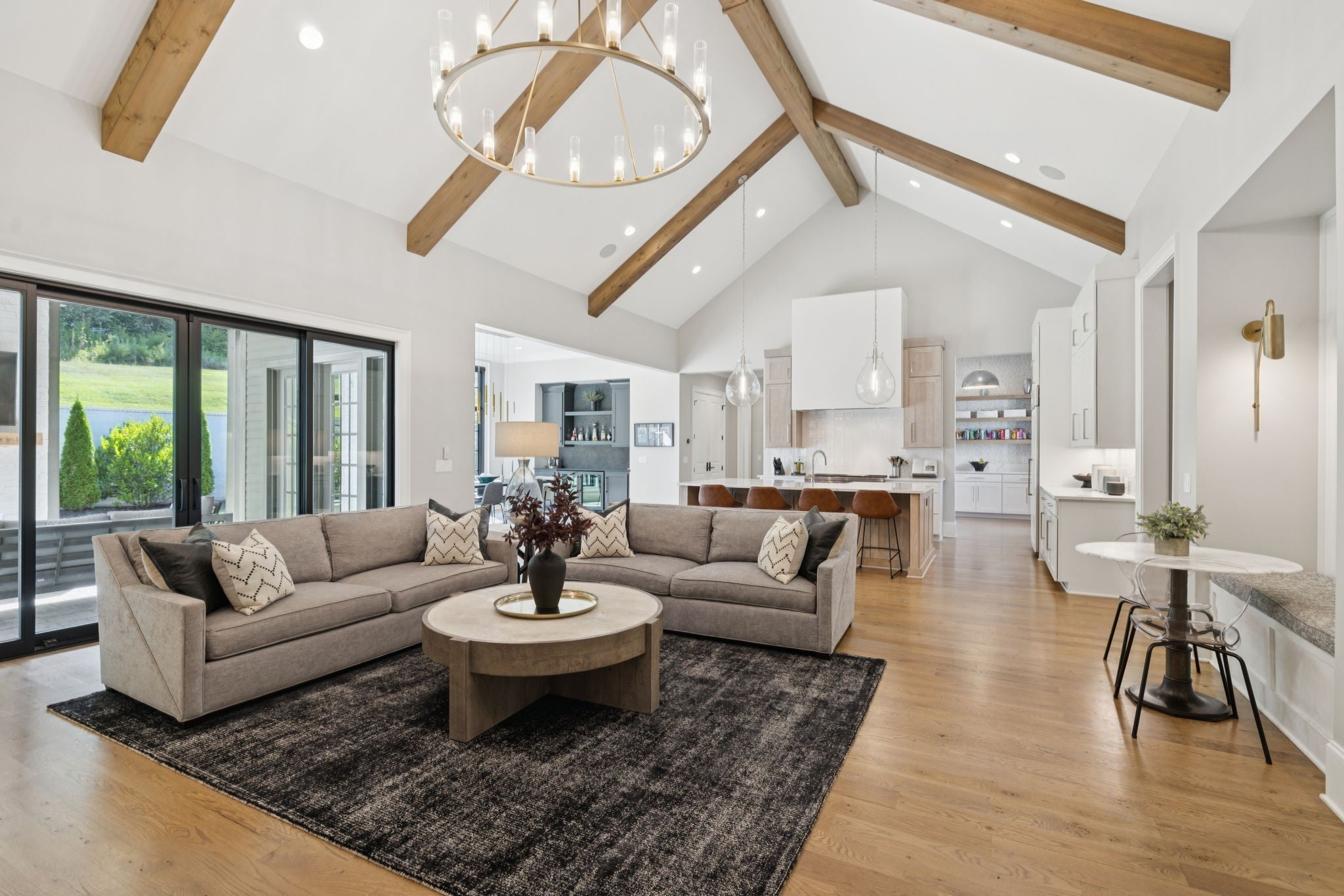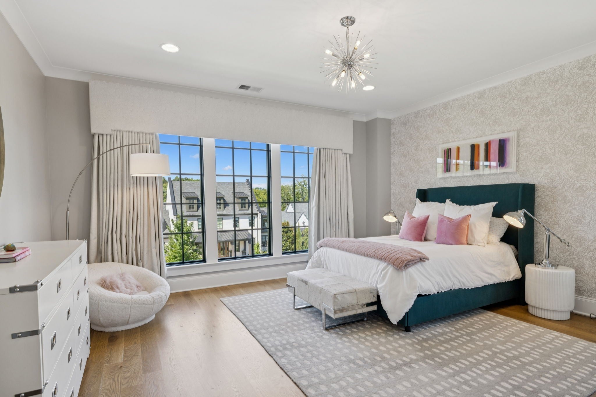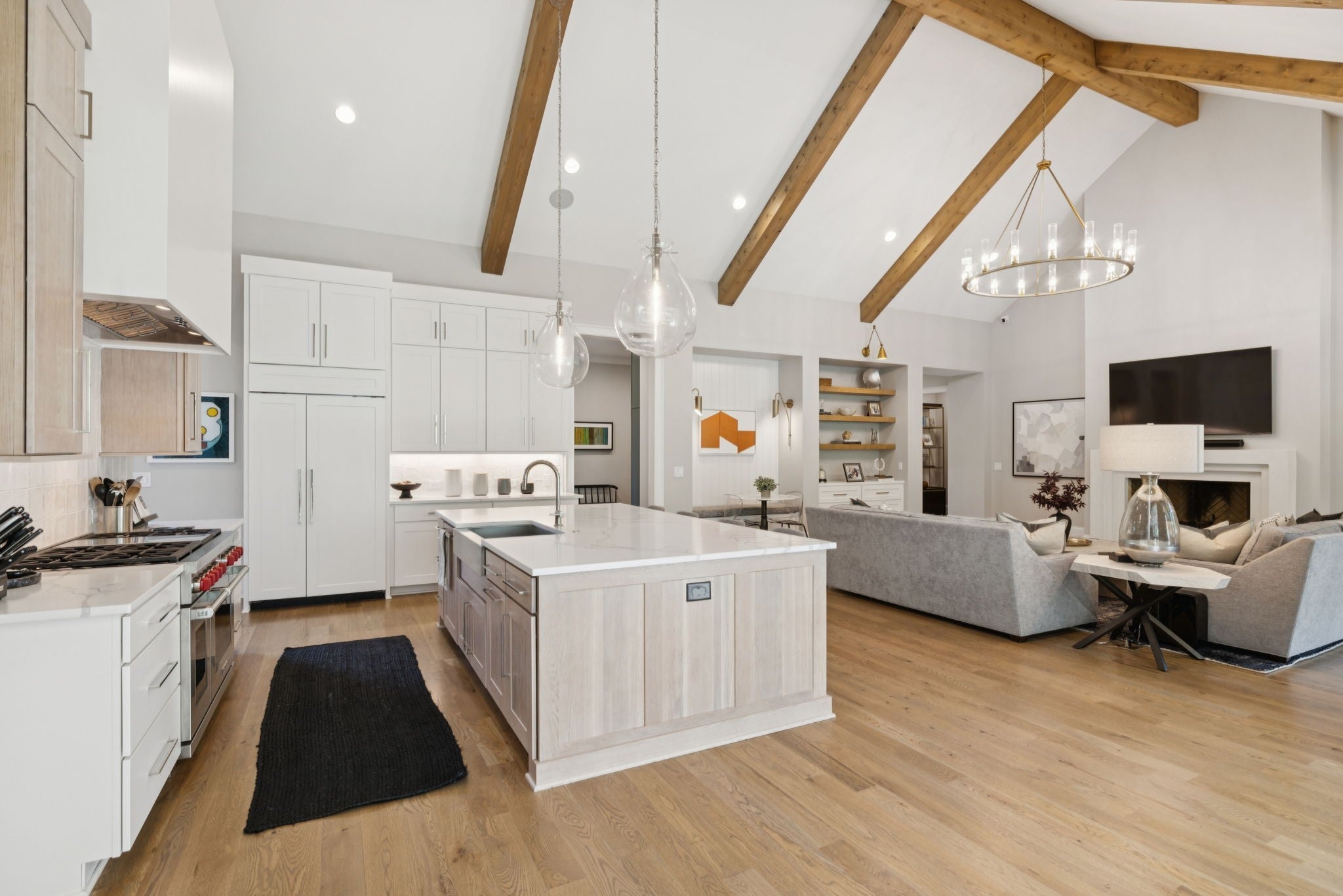 Set within the prestigious community The Grove, this stunning Modern Tudor by award-winning Stonegate Homes blends timeless architecture with elevated modern living. Thoughtfully designed for both comfort and sophistication, this private 4-bedroom residence showcases exceptional craftsmanship and high-end finishes throughout. Soaring ceilings anchor the dramatic great room, creating a light-filled space ideal for entertaining or everyday living. The chef’s kitchen is equally impressive, featuring vaulted ceilings, premium Wolf appliances, an oversized island, and a spacious walk-in pantry—perfect for both hosting and function. The serene primary suite is conveniently located on the main level, offering a luxurious retreat with spa-inspired finishes. A private den on the main floor provides flexible space for a home office or cozy lounge. Upstairs, enjoy a generous bonus room, with custom bunks designed for fun and function, and a stylish study lounge—ideal for work, play, or relaxation. Each secondary bedroom is thoughtfully appointed, maintaining the home’s sense of refined comfort. With privacy, architectural character, and luxury at every turn, this exceptional home offers an elevated lifestyle in one of the area’s most sought-after communities.