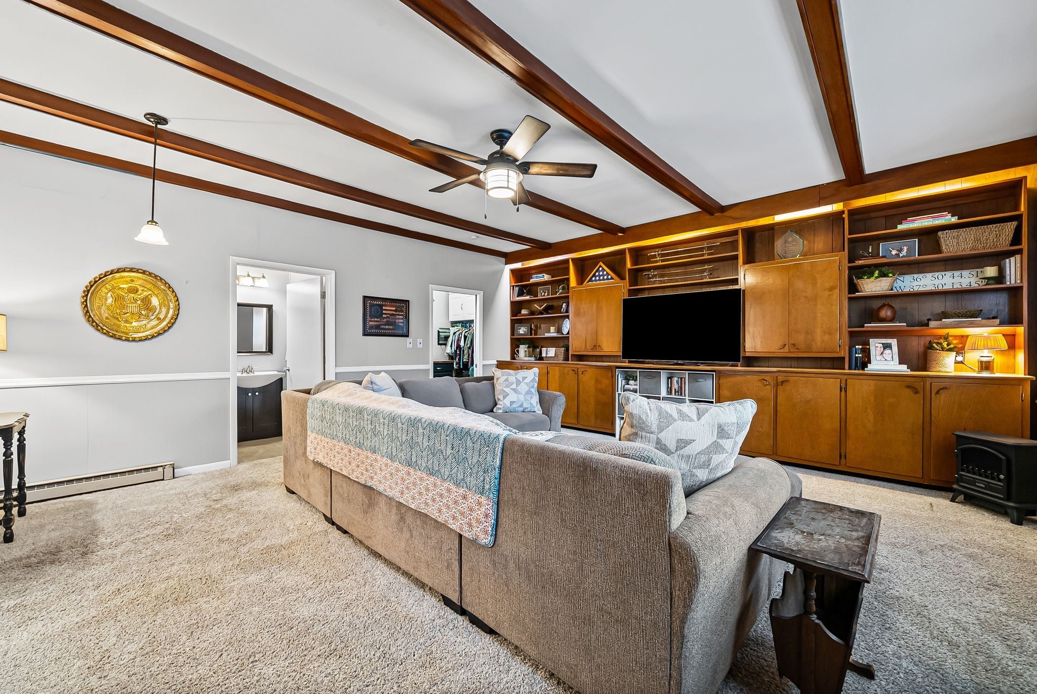 - Bookcases, Built-in Features, Ceiling Fan(s), Extra Closets, Pantry