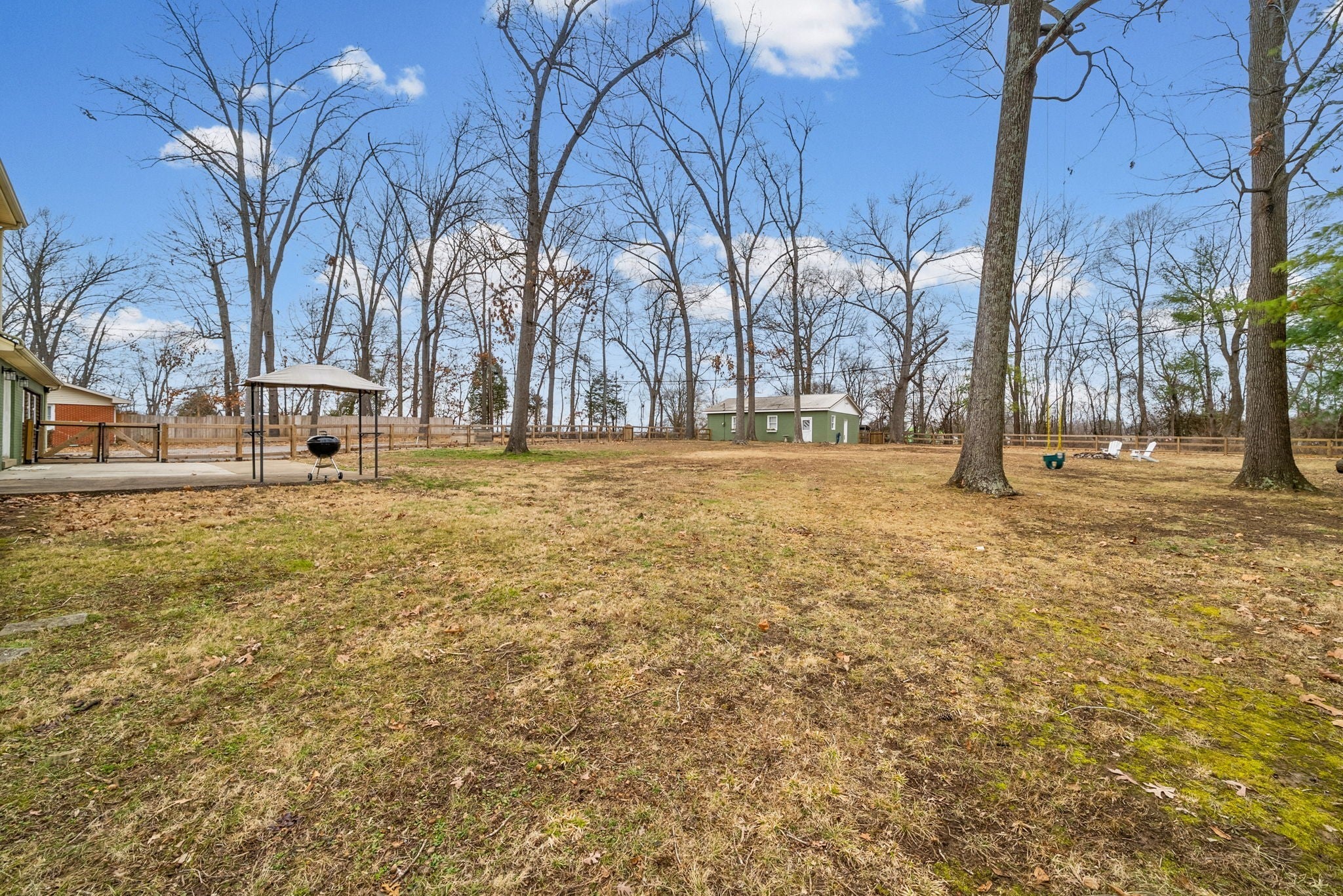 Situated on a spacious 1.326-acre lot, this 4-bedroom, 2.5-bath home offers comfort, updates, and direct access to the new Rotary Park right from the backyard. Recent improvements include a new roof, updated ductwork, fresh interior paint, and new carpet, along with luxury vinyl plank flooring. The remodeled primary bathroom adds a modern touch. The kitchen features custom cabinetry, granite countertops, and a double gas oven—perfect for cooking and entertaining—and opens to a cozy breakfast area with a real fireplace. Washer and dryer remain. The fenced-in yard provides privacy and outdoor enjoyment, and a large 2-car detached garage offers ample parking and storage.