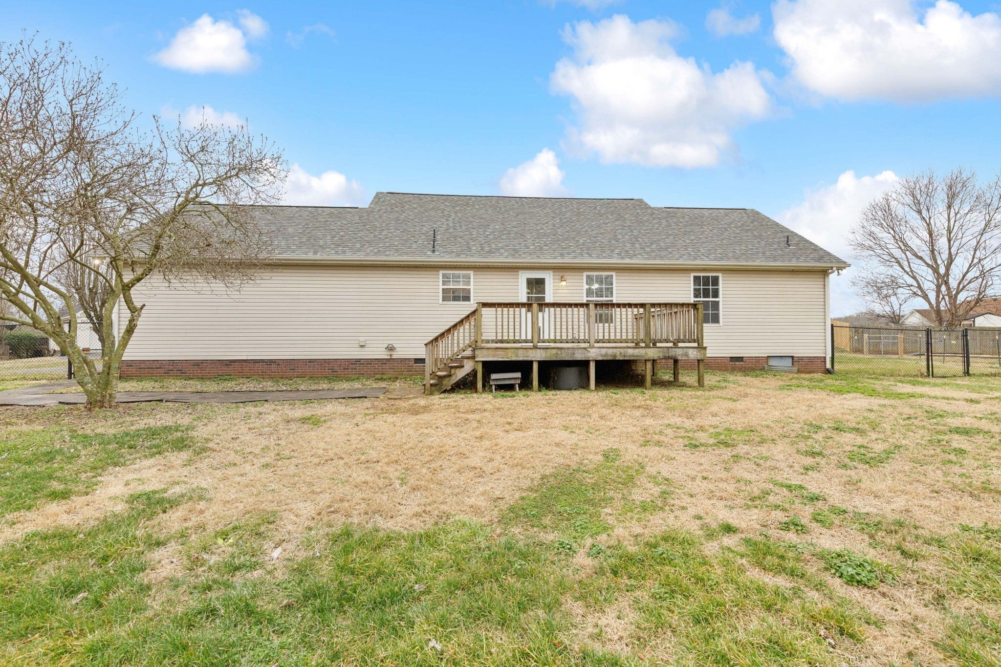 Adorable house? Check! Super cute neighborhood? Check! No HOA or city taxes? Check! All the convenience of living in the middle of Murfreesboro but with privacy and room to grow? Check! This great home in the Blackman community features three bedrooms, two bathrooms, and a HUGE 1.2 ACRES of fenced yard! Both the house and yard are blank slates for you to make into your dream. Fresh neutral paint inside and the tall vaulted ceilings in the living room create a spacious but warm feel. The updated kitchen features sleek white cabinets, granite countertops, tile backsplash, a massive single basin sink, and stainless steel appliances. Fridge is new as of 2025 and stays with the house! The master suite also has been recently updated, with a new walk-in shower added in 2025. The two walk-in closets and double vanity make sure there's plenty of storage and personal space to get ready. Down the hall are two more bedrooms and a hall bathroom, perfect for kids or guests. A deck off the back overlooks one of the property's best features: THIS YARD. It's fully-fenced and ready for animals or children to run wild! Imagine adding a pool, a playground, an outdoor kitchen, a firepit for friends to circle around, or a mini farm set-up! Storage shed stays as well! Flooring throughout and the 30-year architectural shingle roof are new as of 2025. HVAC is new as of 2023. With so many updates and deferred maintenance items marked off the list, this charming home is ready for you to move in and relax!