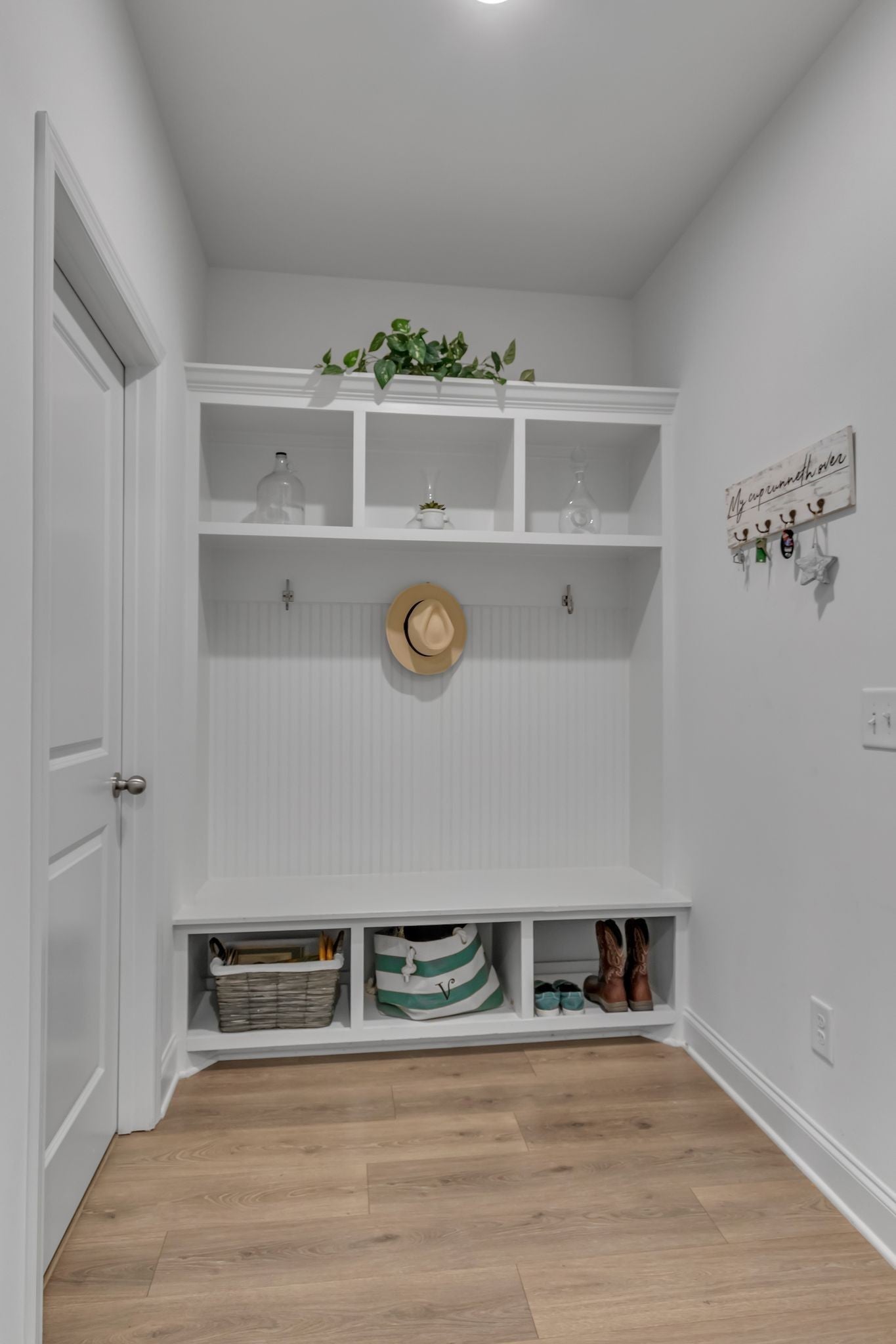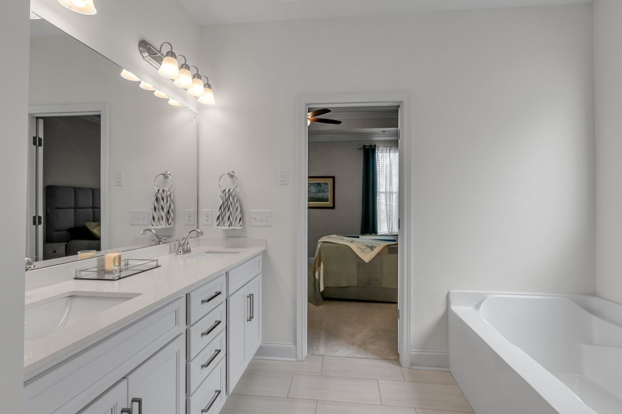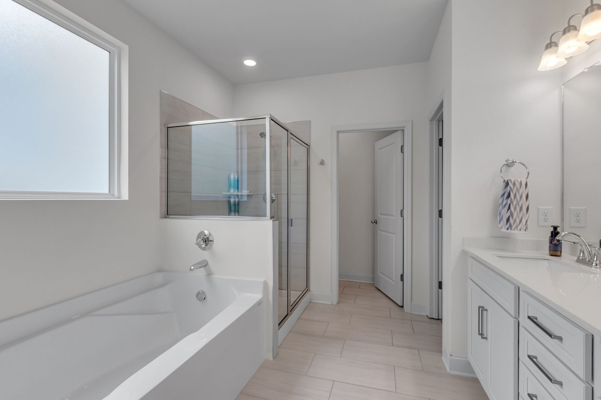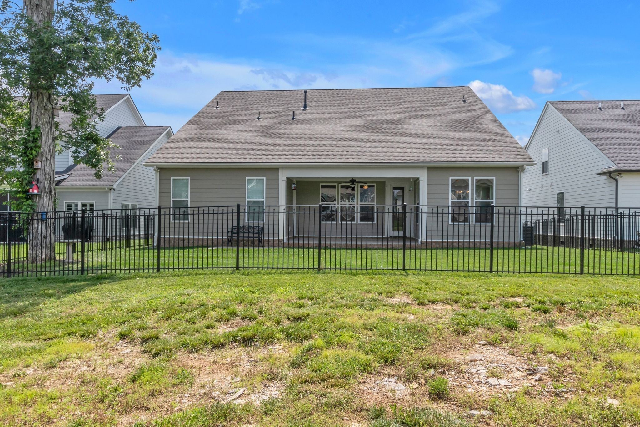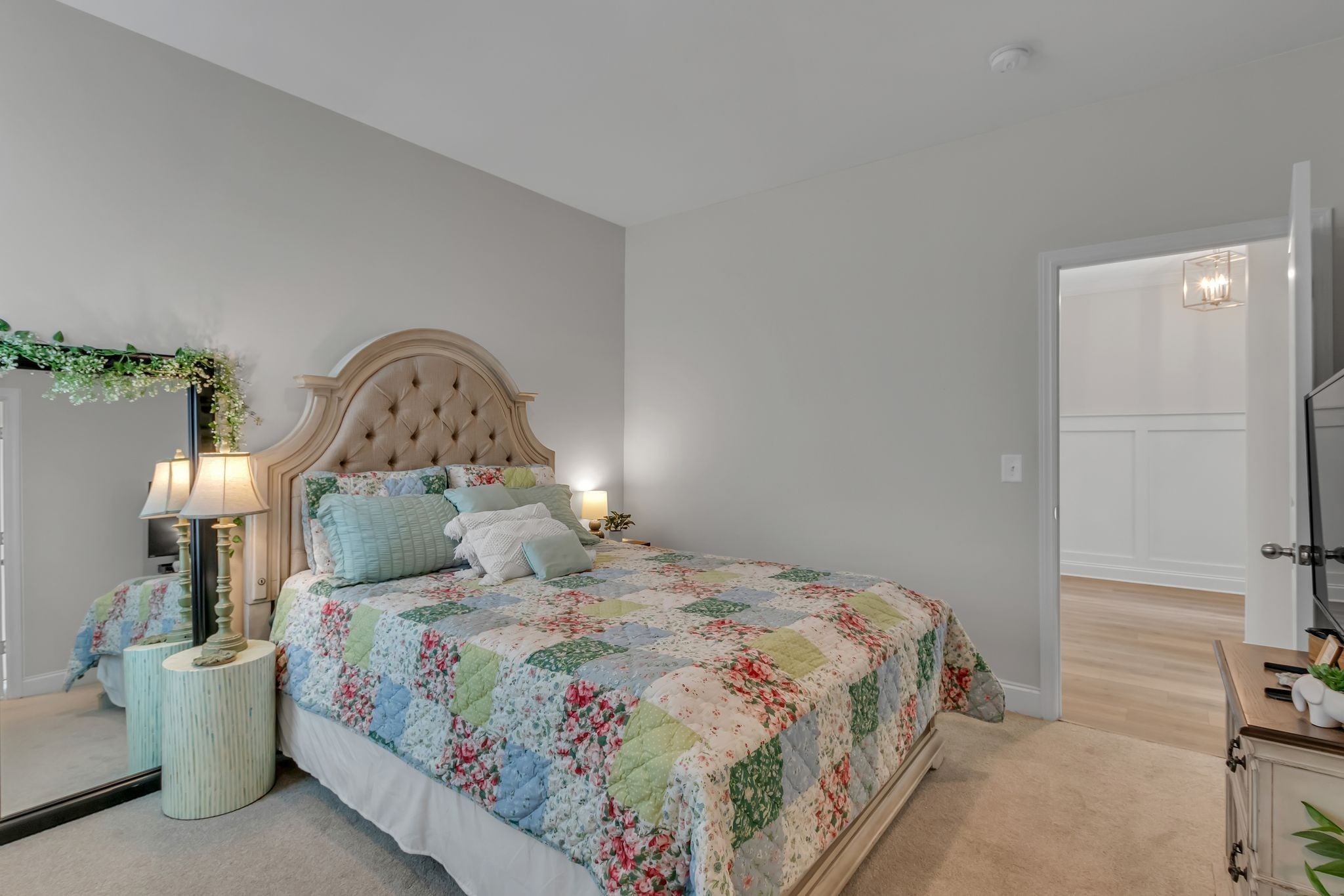 Spacious four bedroom, three and a half bath home designed for mostly one-level living with a private upstairs suite, ideal for guests, a home office, or multigenerational use. Just three years old and priced below appraisal, this home features a functional layout, ample storage, and versatile living spaces on one of South Haven's most family-friendly streets. Engineered hardwood flooring runs throughout the main level and stairs. The open concept living, kitchen, and dining areas create a seamless flow for daily routines and entertaining. The kitchen features quartz countertops, stainless steel appliances, a large island, and an oversized walk-in pantry. The primary suite easily accommodates a king bed along with nightstands and additional bedroom furniture. The en-suite includes double vanities, an extra large soaking tub, separate shower, and walk-in closet. Upstairs offers a spacious bonus room with walkout attic storage on both sides plus a private bedroom and full bath, providing separation for guests or flexible use. The three car tandem garage adds rare storage and parking capacity. The iron fenced backyard backs up to neighborhood greenspace, offering openness while maintaining a sense of separation. South Haven amenities include walking trails, a pool with cabana, playground, food truck nights, and community events that foster a true neighborhood feel. Zoned for Poplar Hill Elementary and future Poplar Hill Middle School in 2026. The layout, storage, and scale of this home live larger than any photos convey. Schedule your showing and experience this home in person!