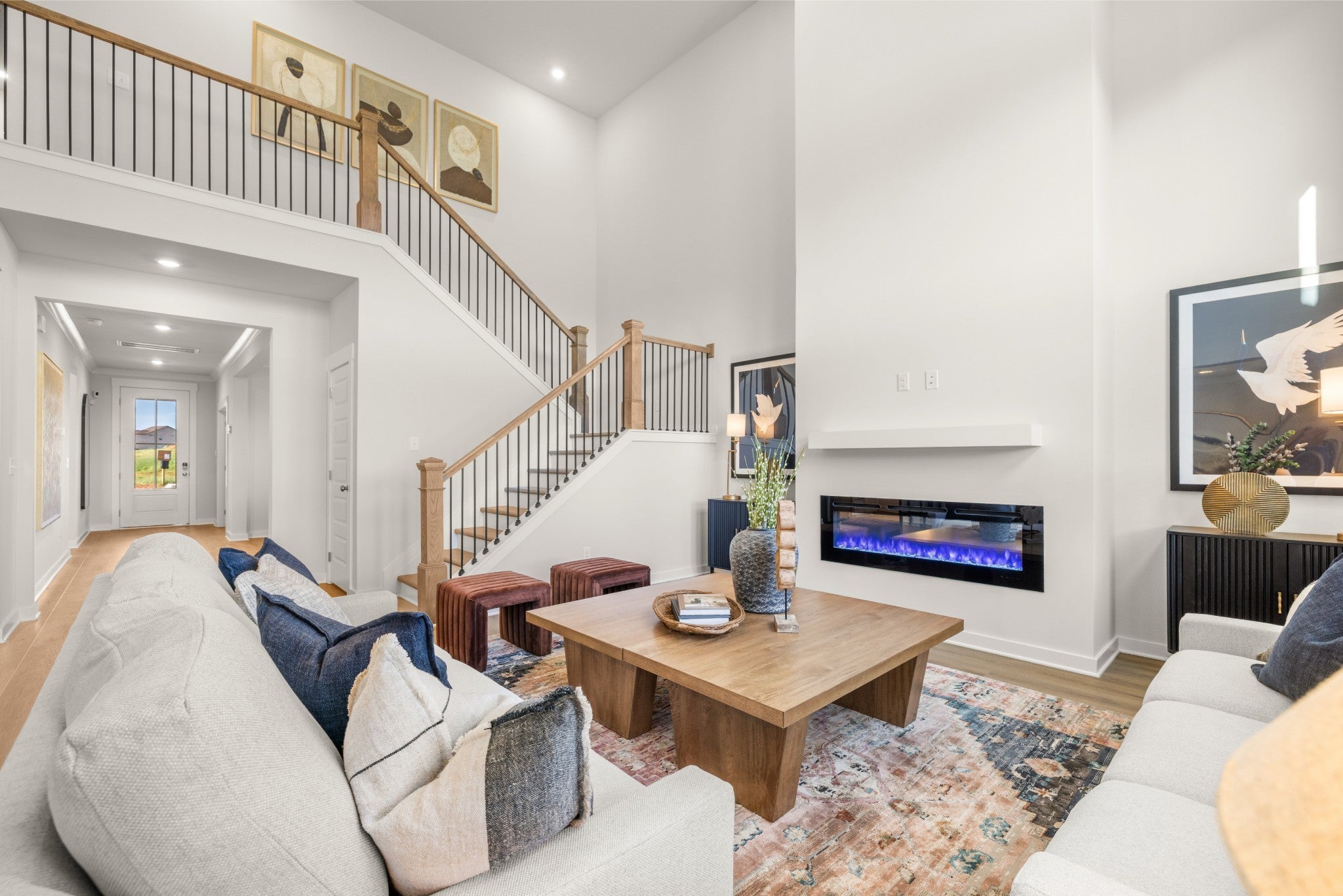 The first floor of this two-story home shares an open layout between the kitchen, nook and family room for easy entertaining and access to the patio for outdoor lounging. A more formal dining room is at the front of the home for dinner parties and a study to work from home. Two bedrooms are on the first floor, including a luxe owner's suite and a secondary bedroom, ideal for overnight guests. Upstairs are three secondary bedrooms, a versatile game room and a media room for added living space. *Images from a furnished model of this home. Actual configuration and features may vary.