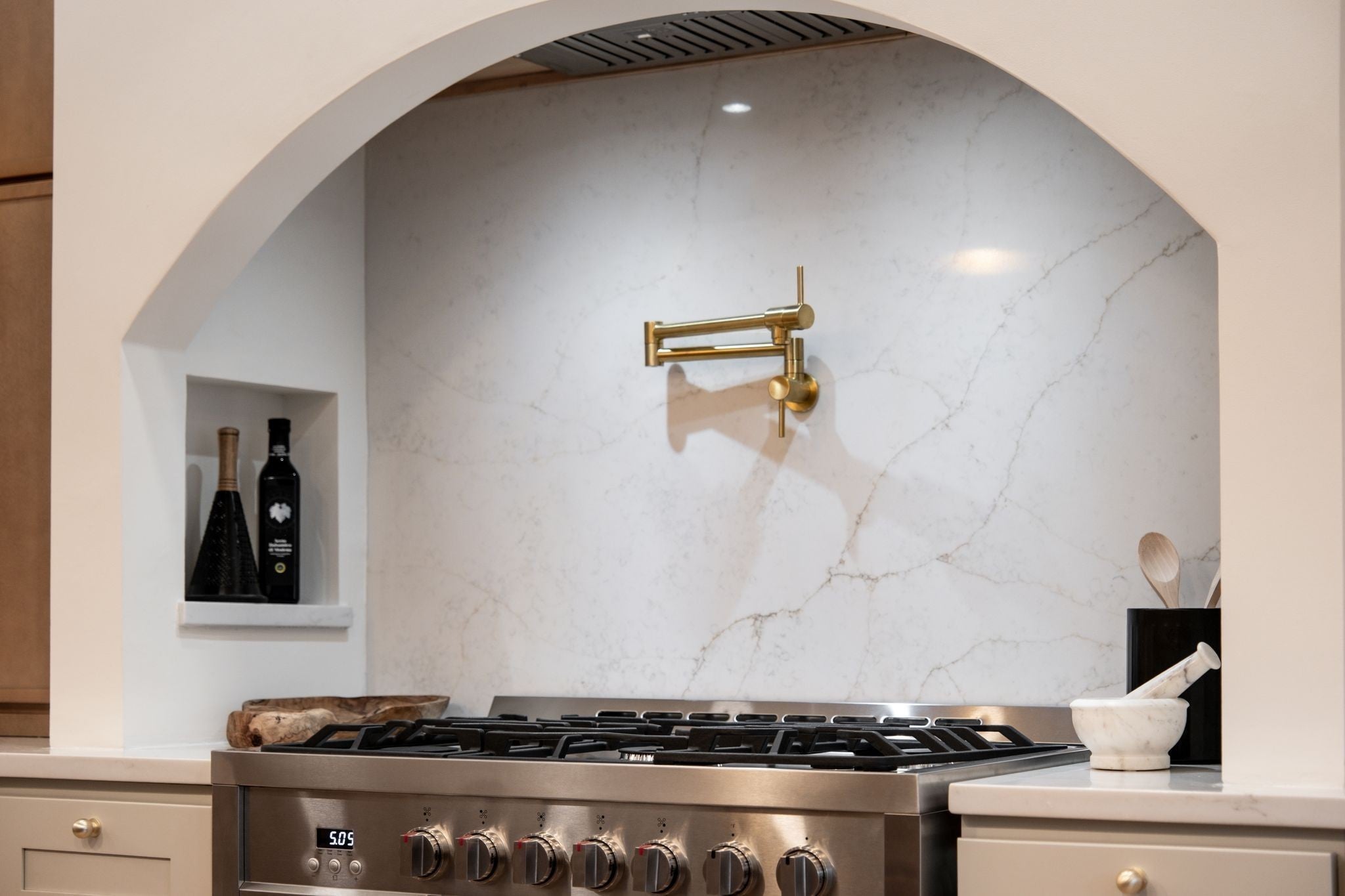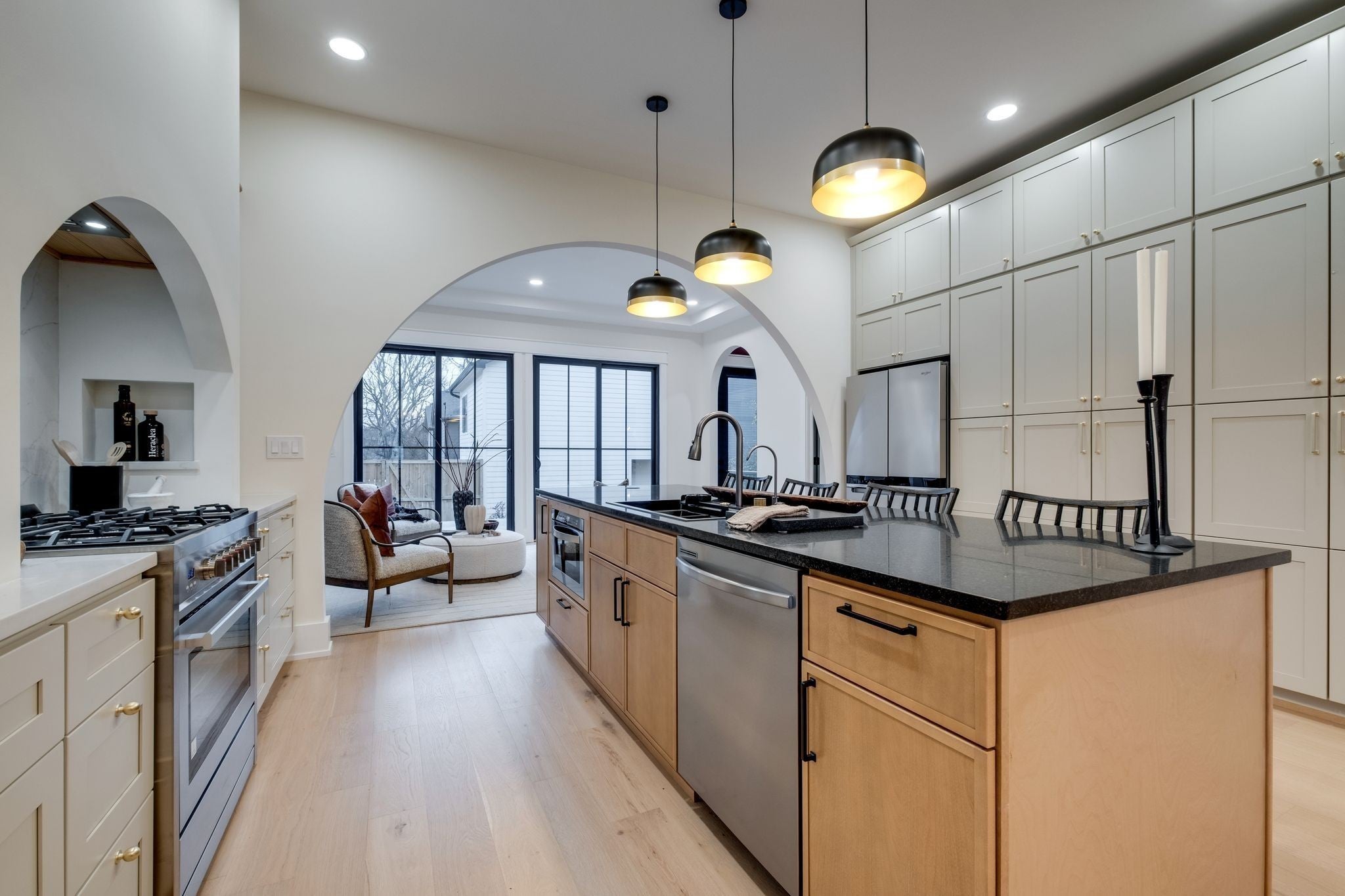 - Built-In Electric Oven, Gas Range, Dishwasher, Disposal, Microwave, Refrigerator, Stainless Steel Appliance(s), Smart Appliance(s)