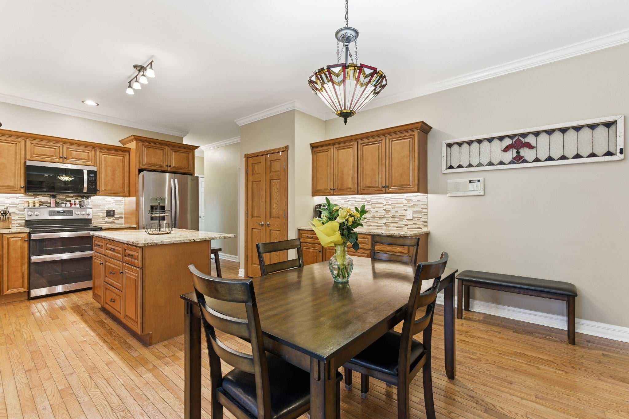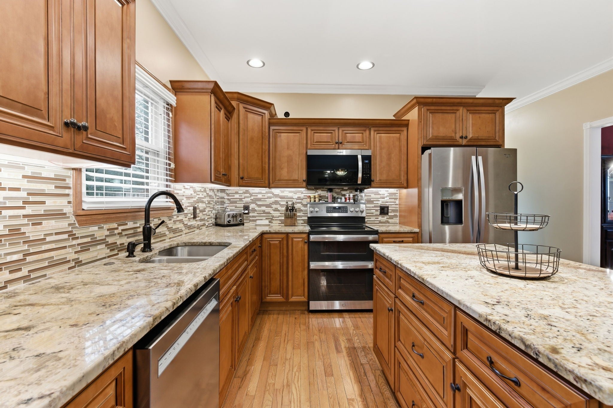 - Double Oven, Electric Oven, Electric Range, Dishwasher, Disposal, Microwave, Refrigerator