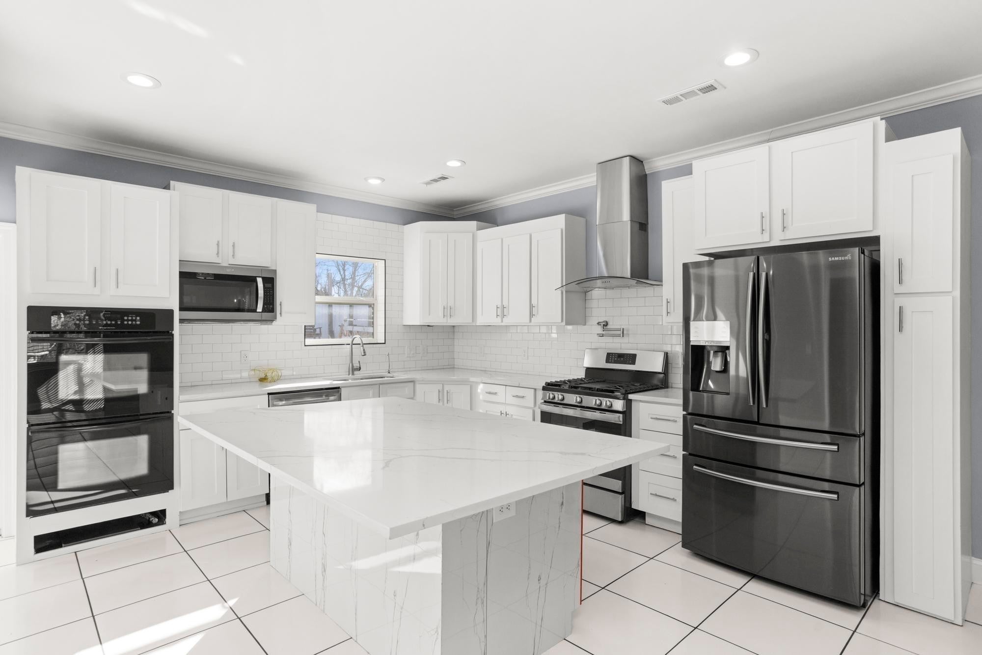 - Double Oven, Electric Oven, Dishwasher, Disposal, Microwave, Refrigerator, Stainless Steel Appliance(s)