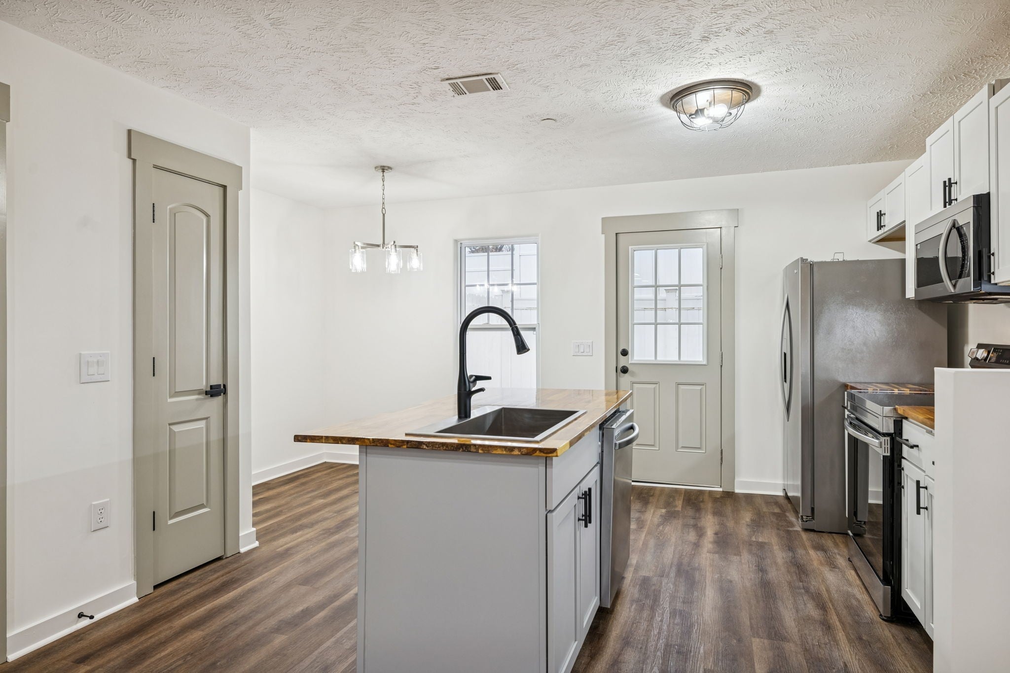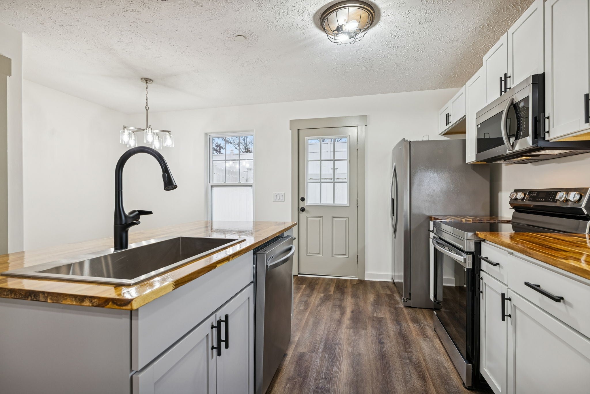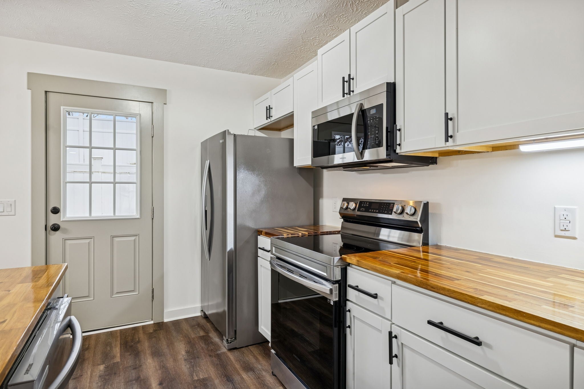 - Electric Range, Dishwasher, Refrigerator, Stainless Steel Appliance(s)