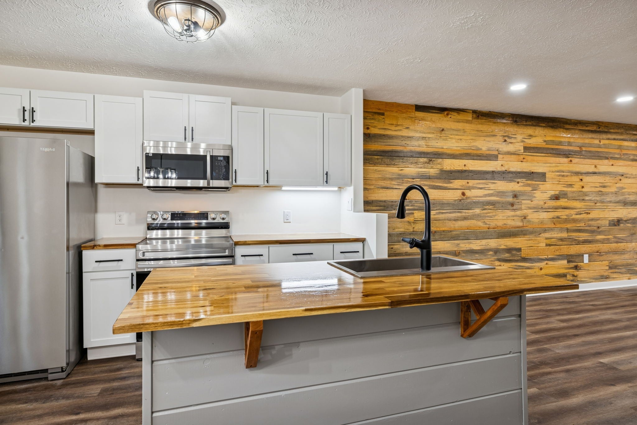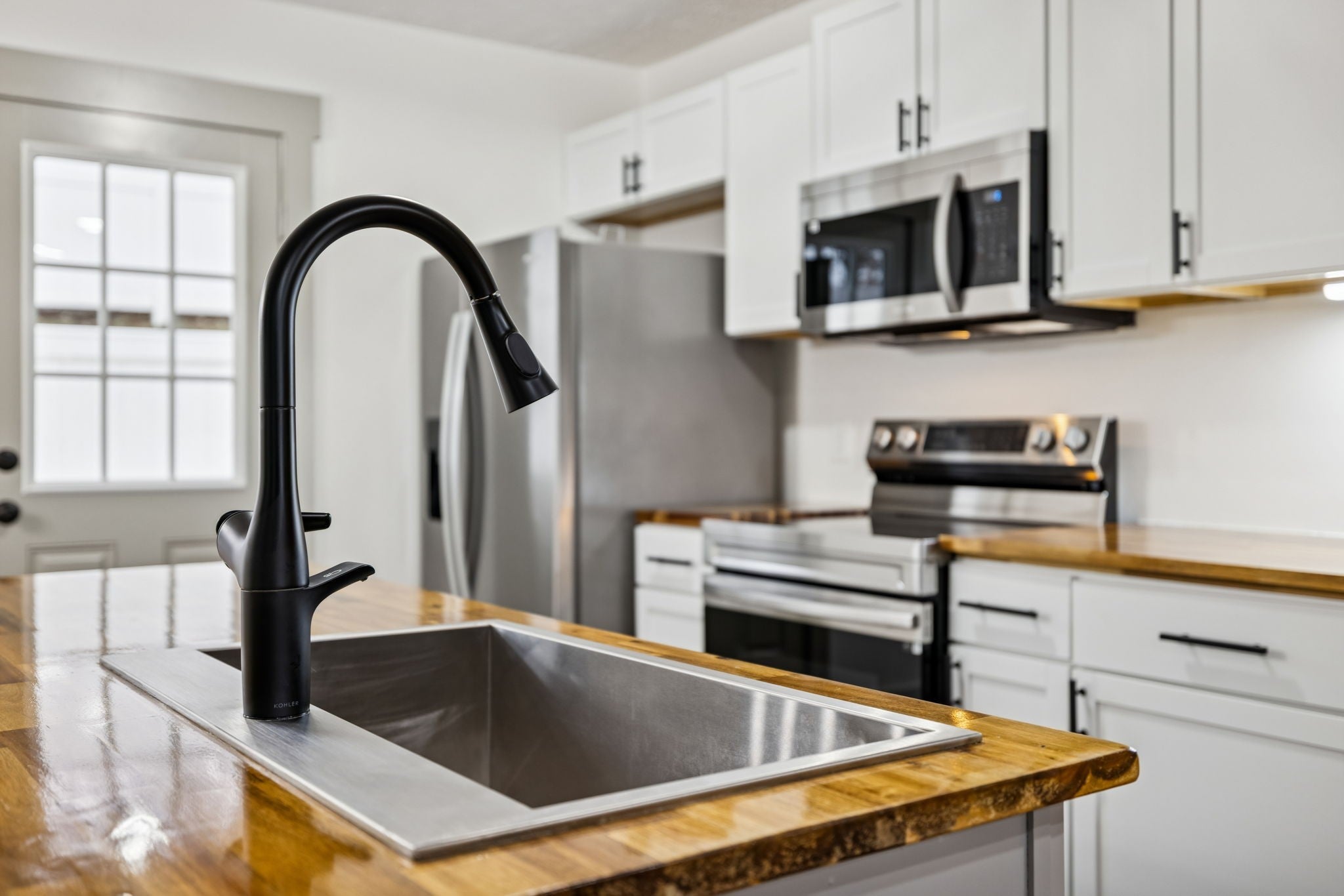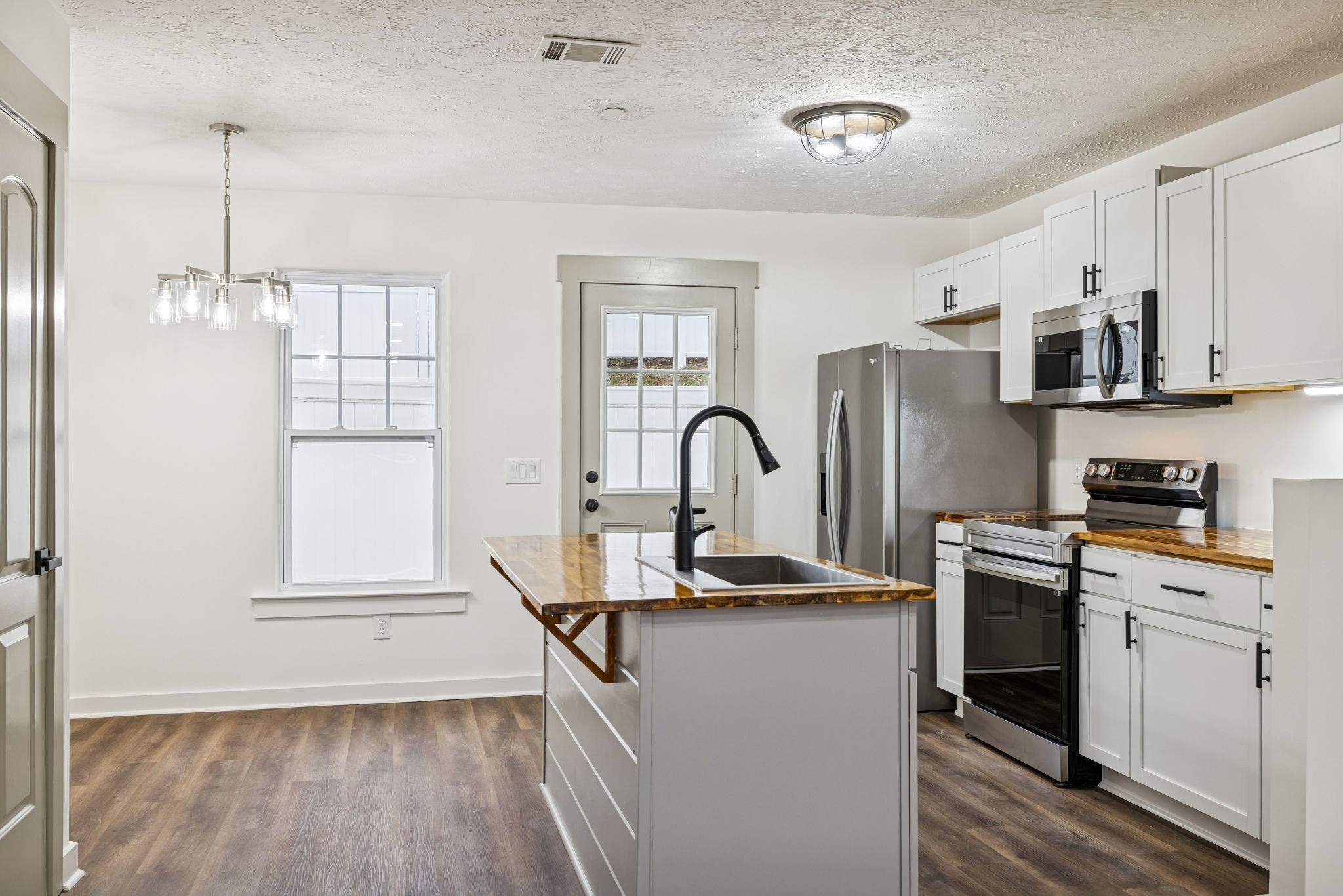 - Electric Range, Dishwasher, Refrigerator, Stainless Steel Appliance(s)